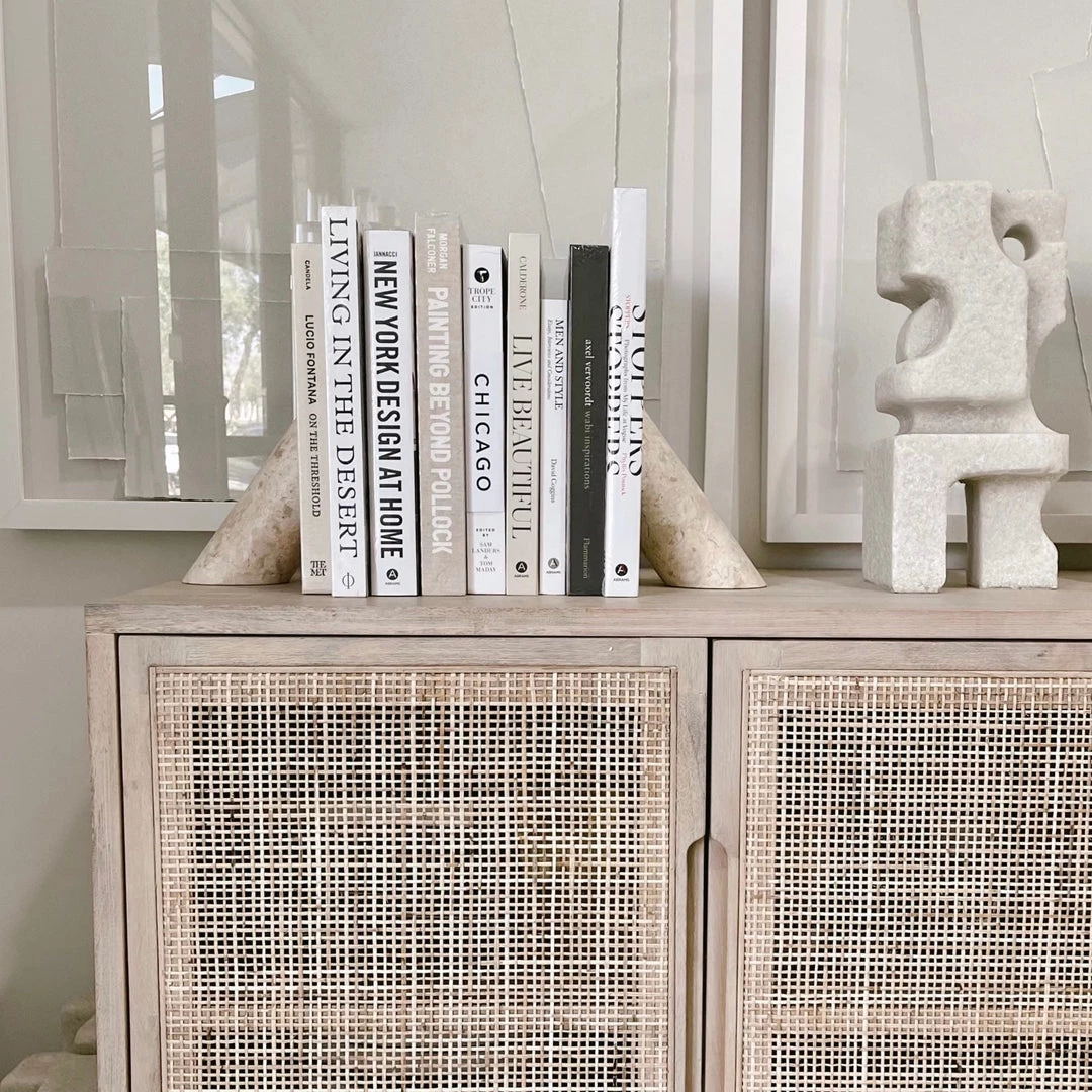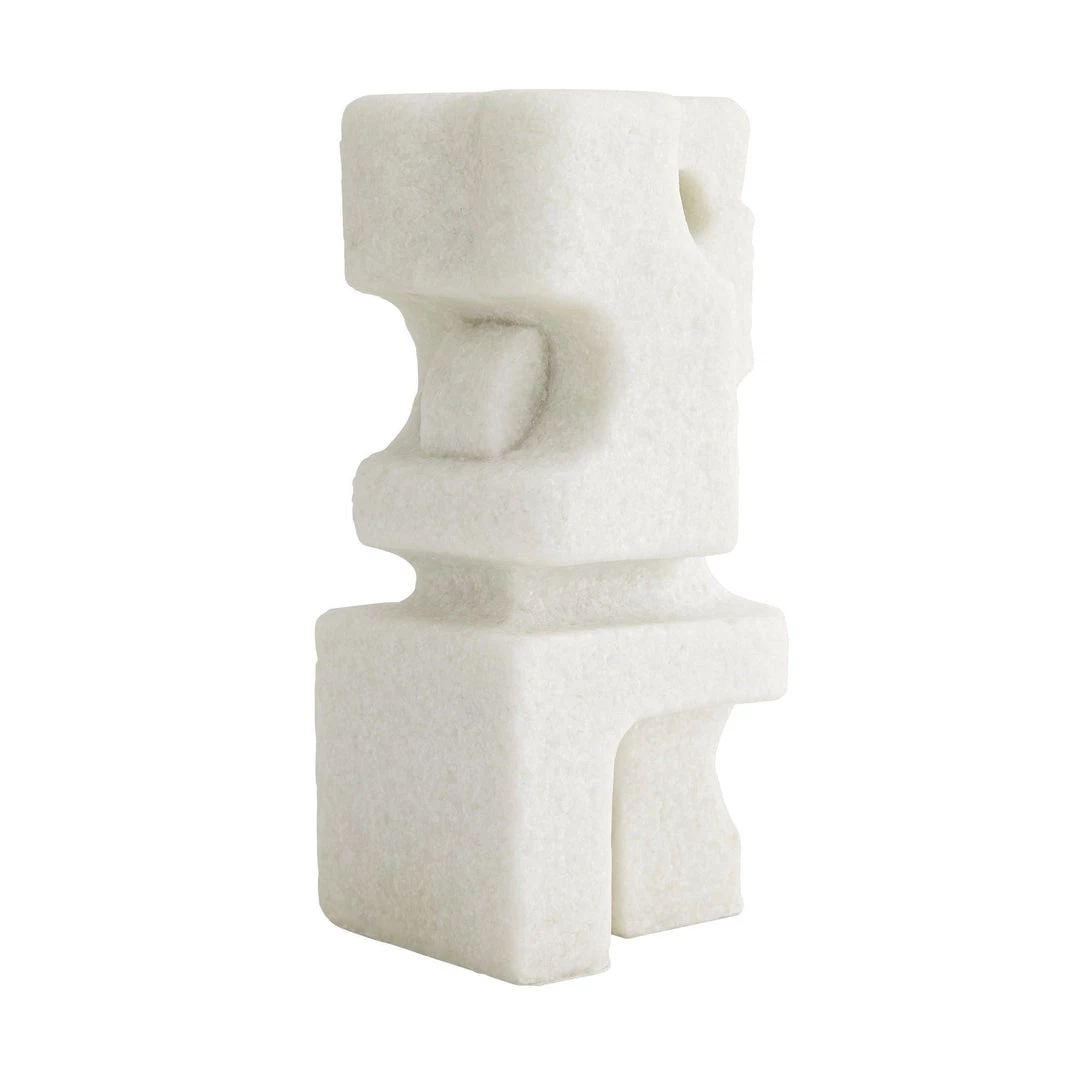 Avant-garde is realized in this sculptural structure inspired by the angles of cubist forms. A certain softness and texture are expressed throughout the white rice stone construction that enhances the orientation of the geometric relationships prevalent in this piece. Display on a bookshelf or desktop for artistic inspiration.