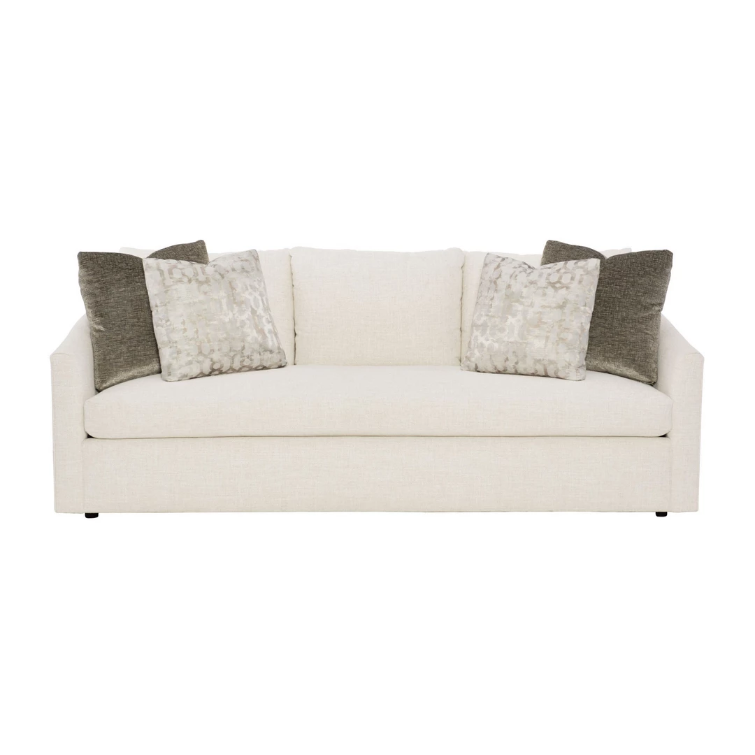 Three fiber back pillows – knife edge weltless, two blendown throw pillows – knife edge weltless (23″ x 23″), two blendown throw pillows – knife edge weltless (21″ x 21″), sinuous spring construction and spring down cushion.