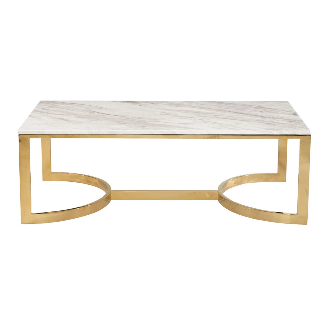 Jazz white marble top, tubular steel base in polished Brass finish, adjustable glides and