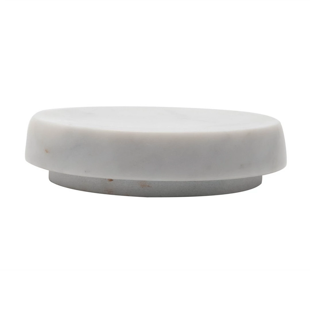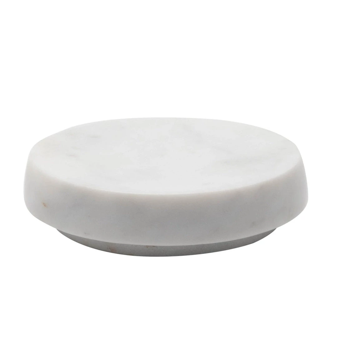 Add sophisticated, functional style to your bathroom decor The round soap dish features a polished marble construction, adding easy style to your space. Place your bar of soap on the dish when not in use to keep soap residue contained and your countertops clean.