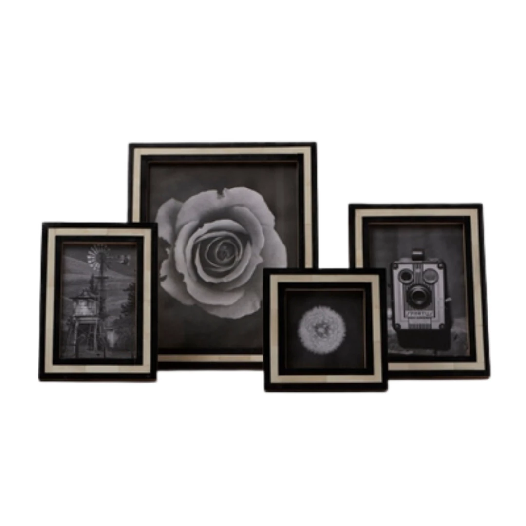 Black and white linear and handmade artisan frame.
