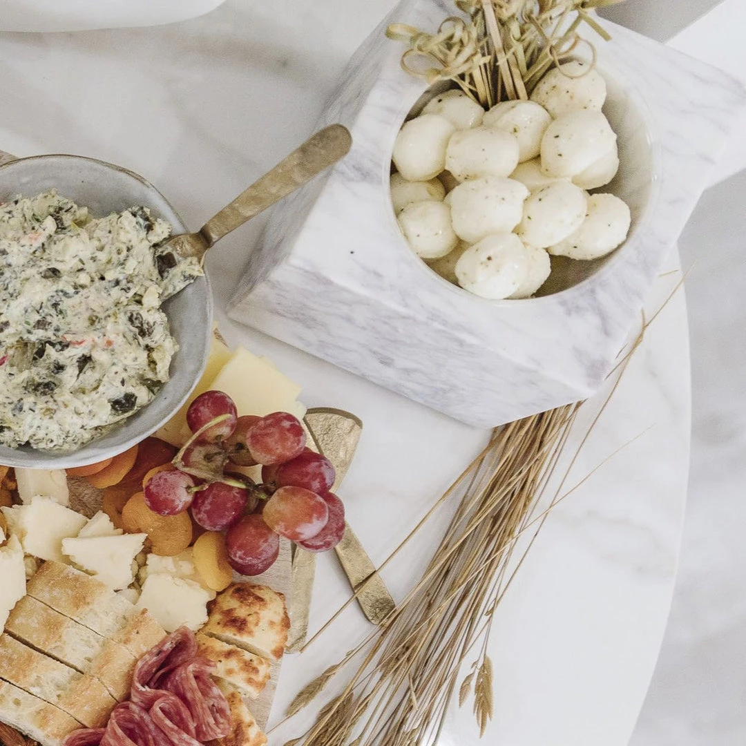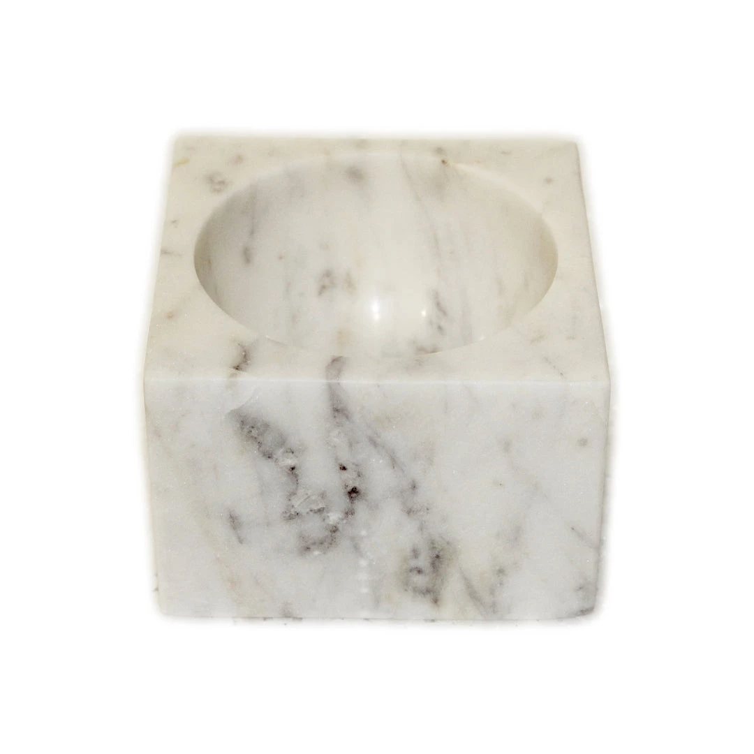 White square marble concave bowl.