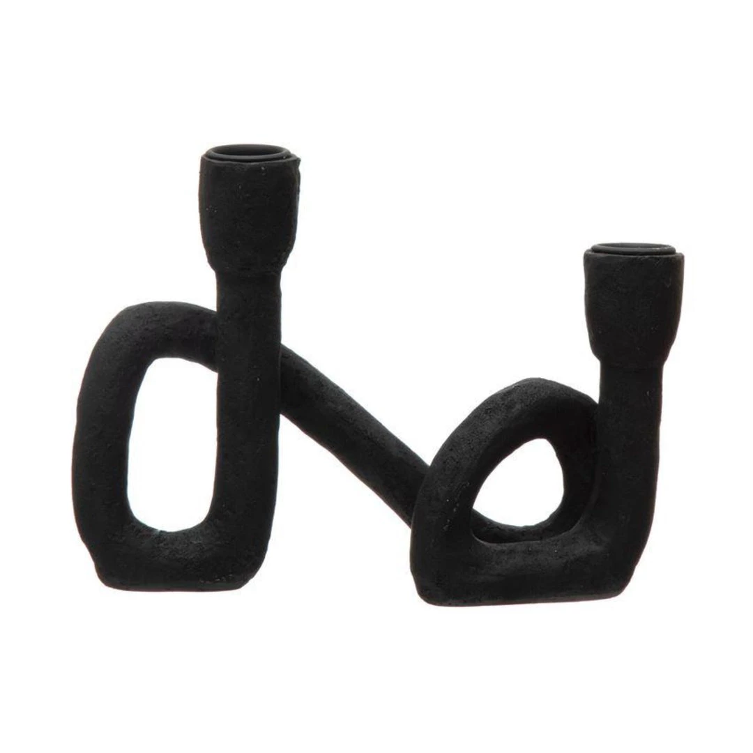 The Reese Taper Holder is a candle holder that is made out of resin and in a black finish.