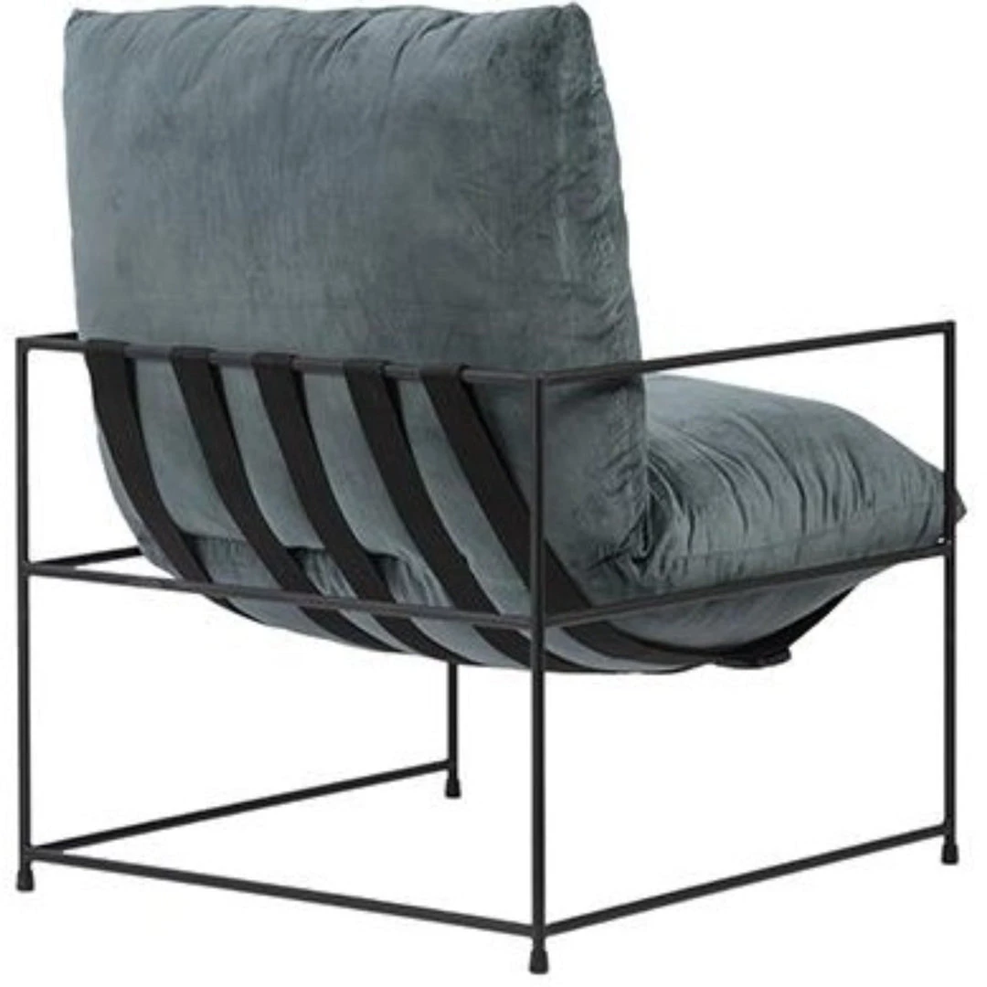 Black steel frame, 100% polyester petrol green.Â