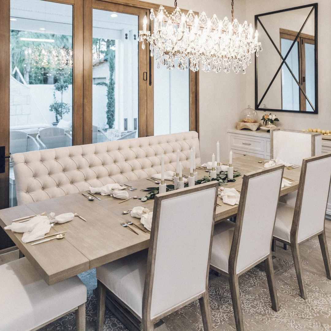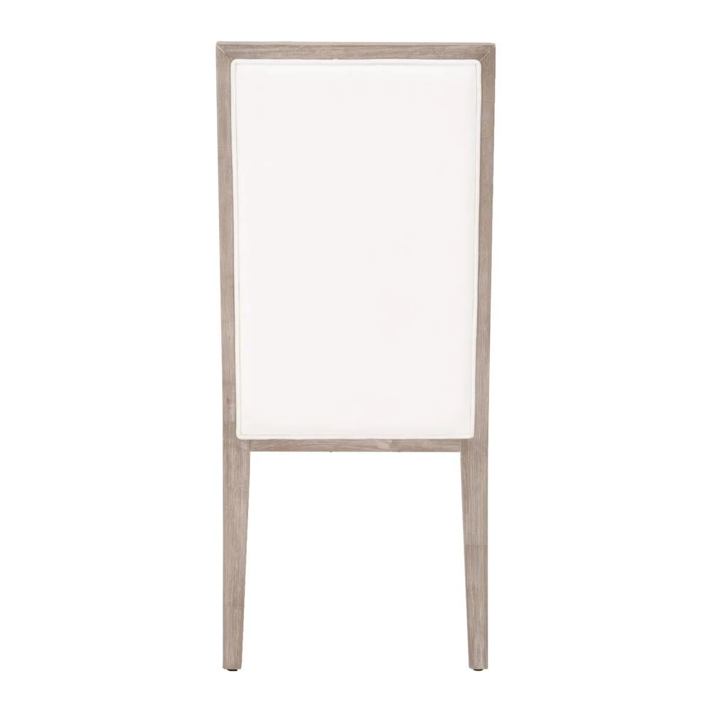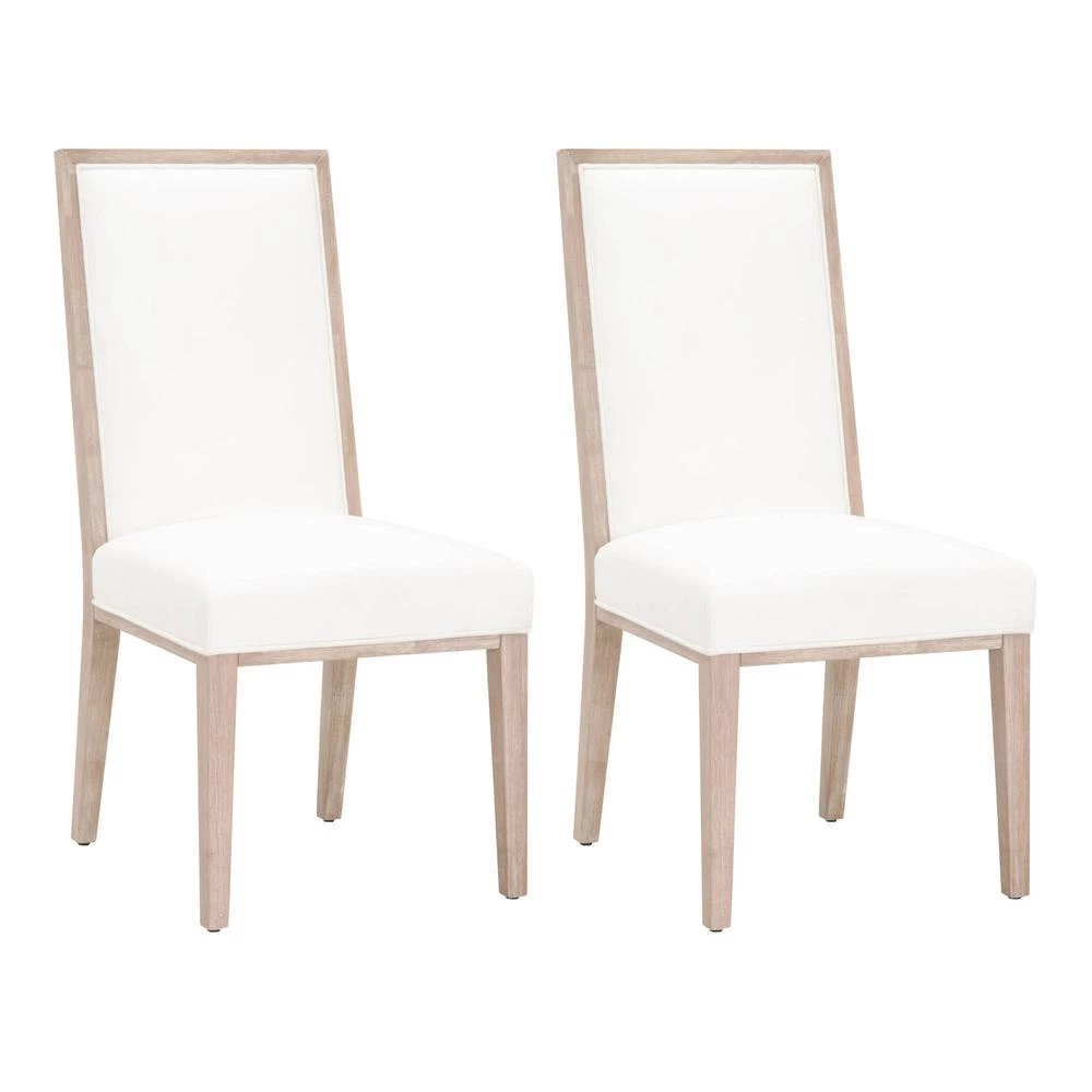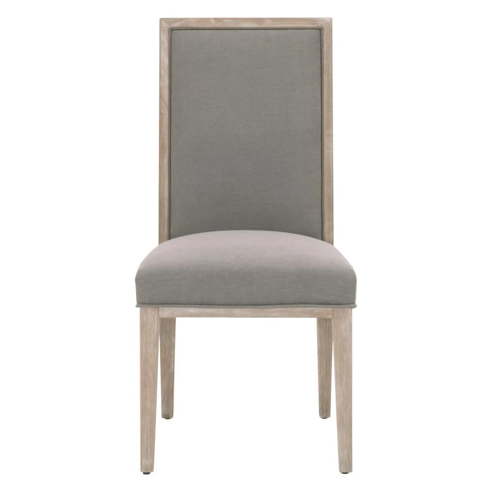 These classic dining chairs are suited for many different styles of dining rooms. Their clean, simple lines and neutral tones make these chairs a perfect fit for transitional, farmhouse and coastal looks. The seat and back of the chair are upholstered with high performance fabric that make cleaning and maintenance a bit easier. The chair backs are made of solid wood and an exposed wood frame with a natural gray finish, which nicely complements the white fabric. These dining chairs will be the perfect finishing touch to your dining room or dining table set.