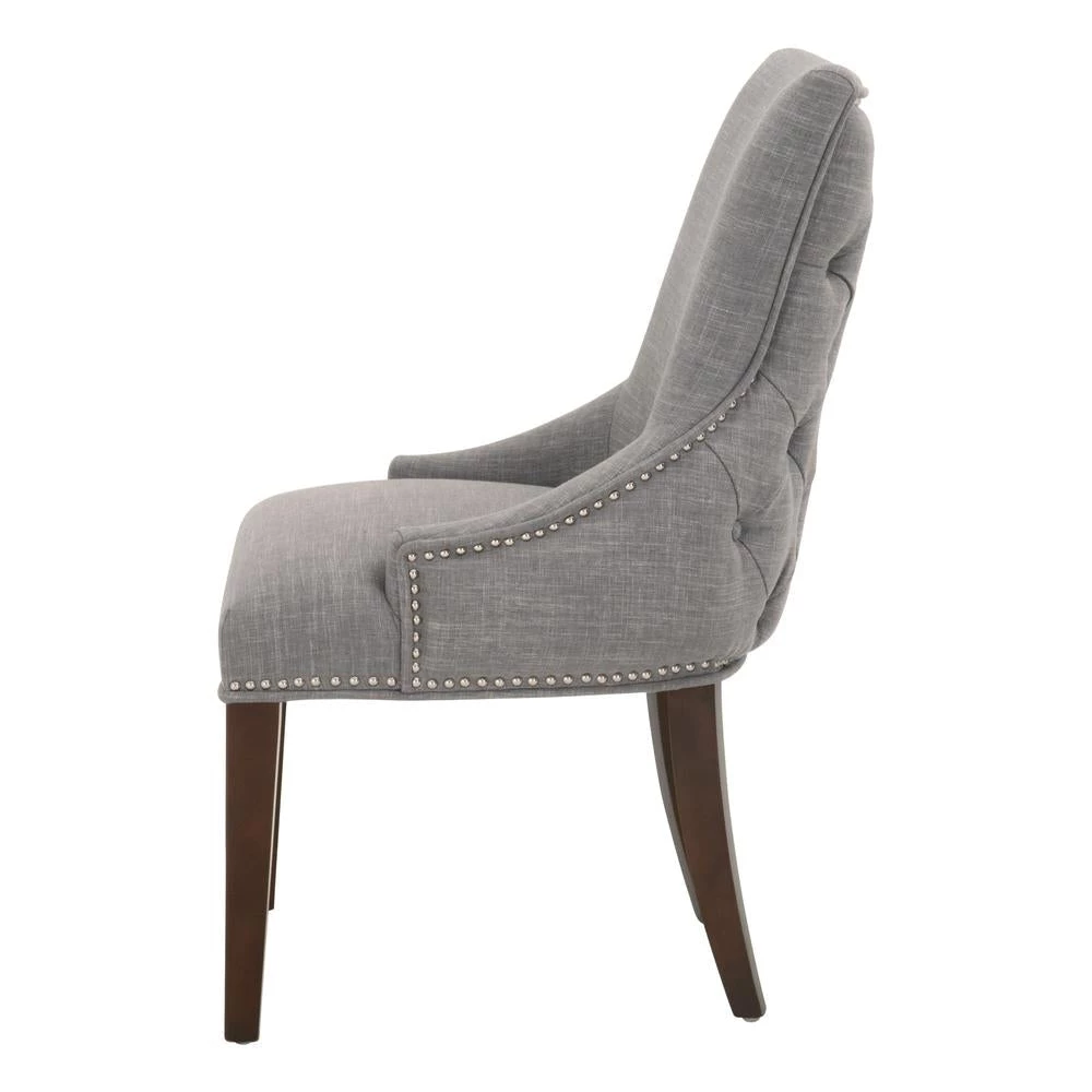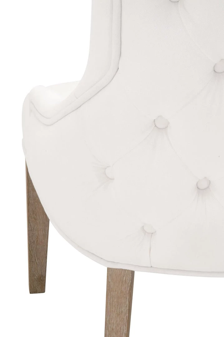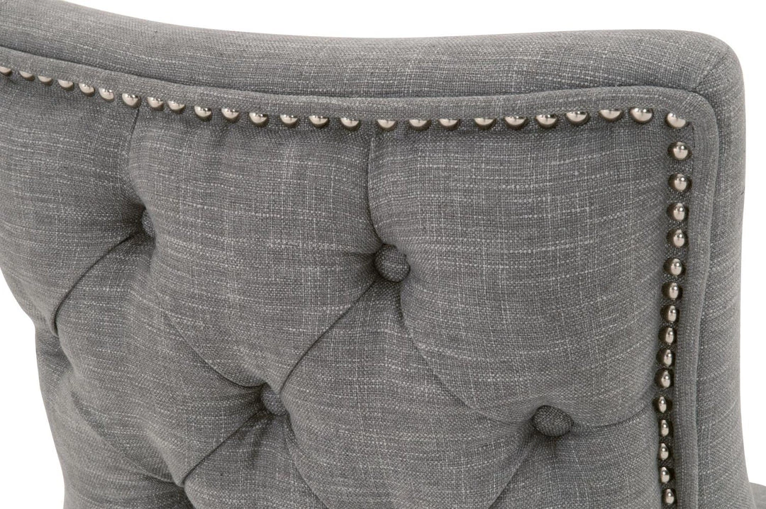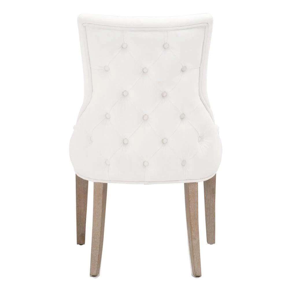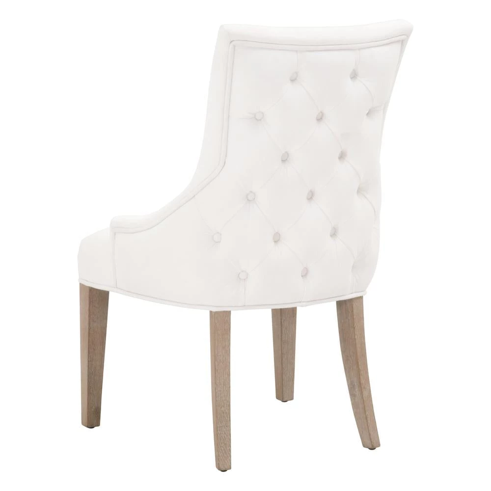 This elegant dining chair will provide comfort and style, and is perfect for a kitchen, dining room or breakfast nook. The chair is constructed with solid oak legs in a gorgeous natural gray color with LiveSmart Peyton-Pearl fabric upholstery. The seat back features a button tufted design that gives this chair a classic look. This gorgeous dining chair will work well with any traditional or transitional style dining table.