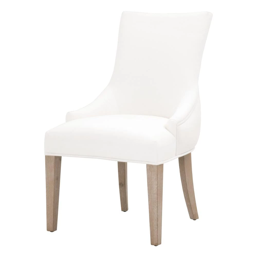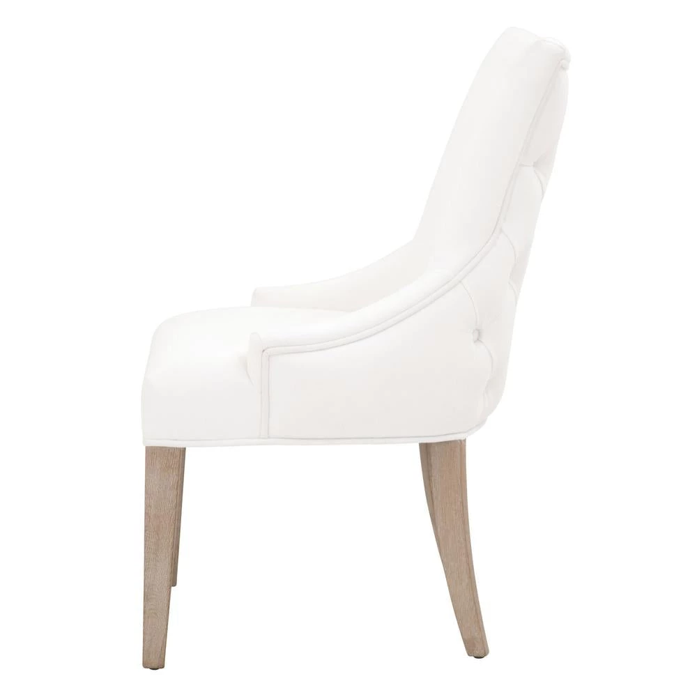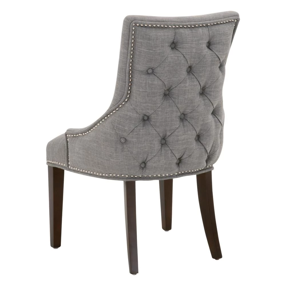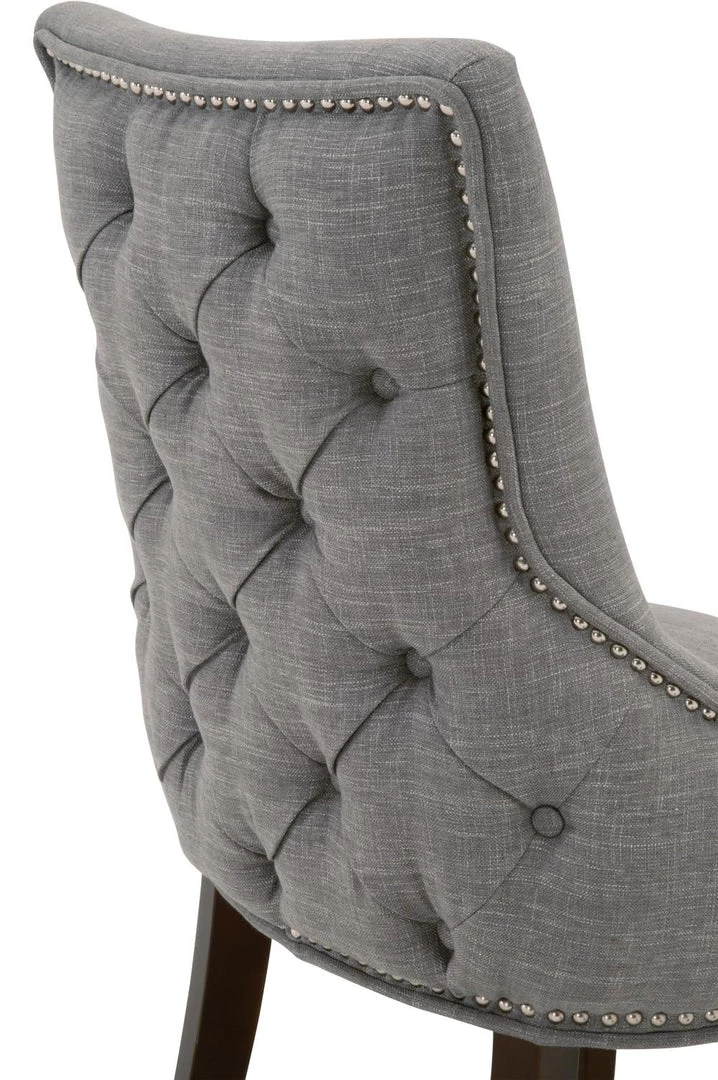 This elegant dining chair will provide comfort and style, and is perfect for a kitchen, dining room or breakfast nook. The chair is constructed with solid oak legs in a gorgeous natural gray color with LiveSmart Peyton-Pearl fabric upholstery. The seat back features a button tufted design that gives this chair a classic look. This gorgeous dining chair will work well with any traditional or transitional style dining table.
