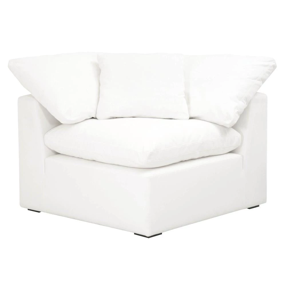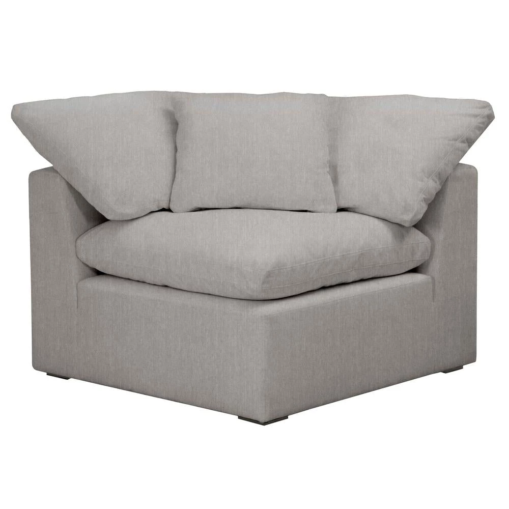 Add transitional style to your living room, family room, or den with this modular corner chair in LiveSmart Peyton-Pearl fabric. With the seat cushion made of half down and half polyester, this chair is extremely comfortable to curl up and read a book or watch television on. It features reversible seat and back cushions, as well as ties to prevent the cushions from moving. Constructed with 3.8″ coil sinuous springs and stain resistant fabric, this chair is meant for durability and dependability. Includes 1 square throw pillow made of 100% down. Pairs nicely with sectional sofas and works great as additional seating.