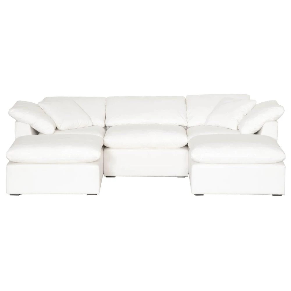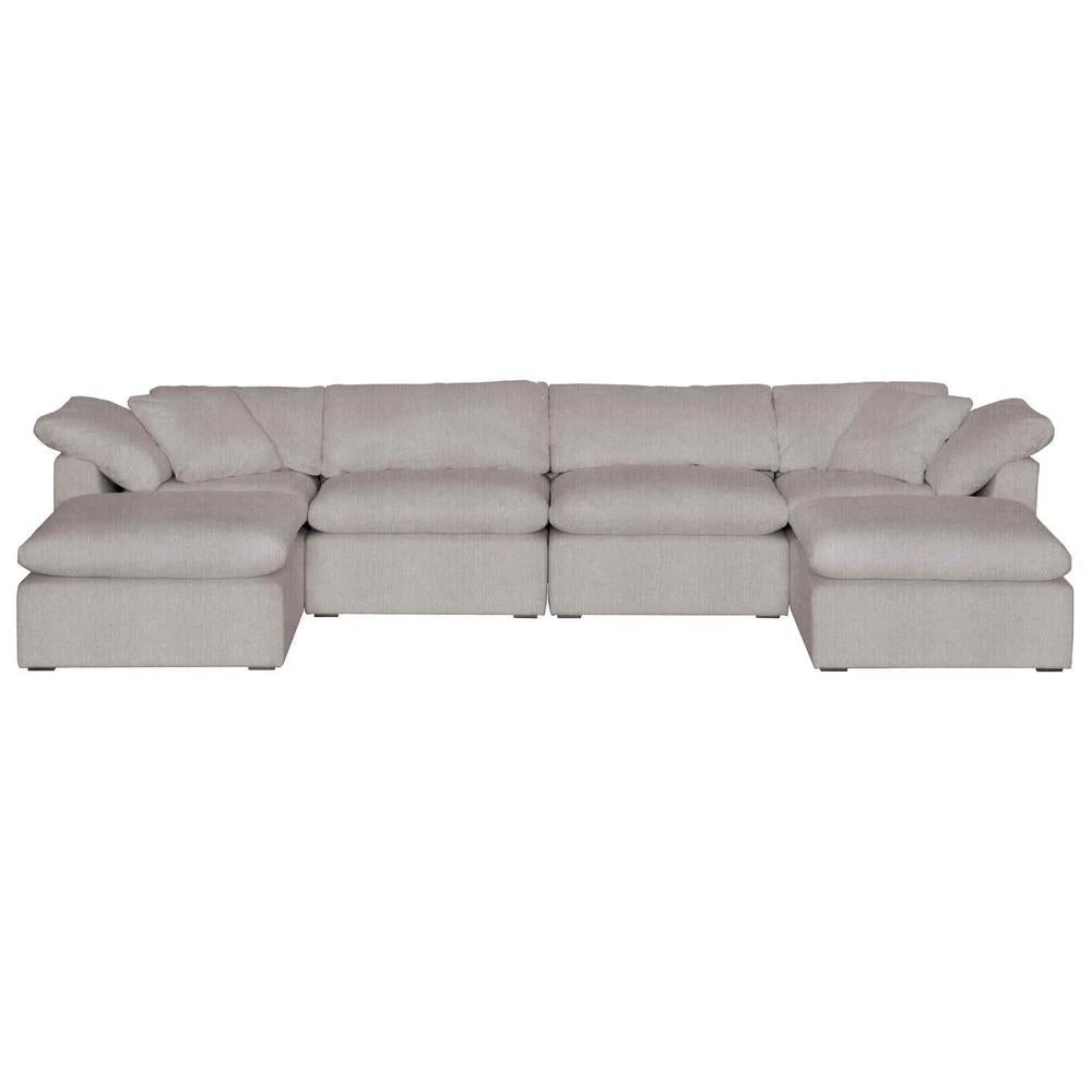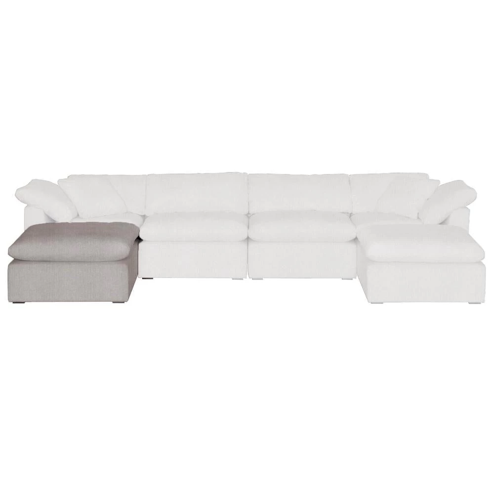 Add transitional style to your living room, family room, or den with this modular ottoman made with Livesmart Peyton-Pearl fabric. With the seat cushion made of half down and half polyester, this ottoman is extremely comfortable to rest your feet or sit on. It features a reversible seat cushion and stain resistant fabric. Constructed with 4″ coil sinuous springs, this ottoman is meant for durability and dependability. Pairs nicely with sofas and works great as additional seating.