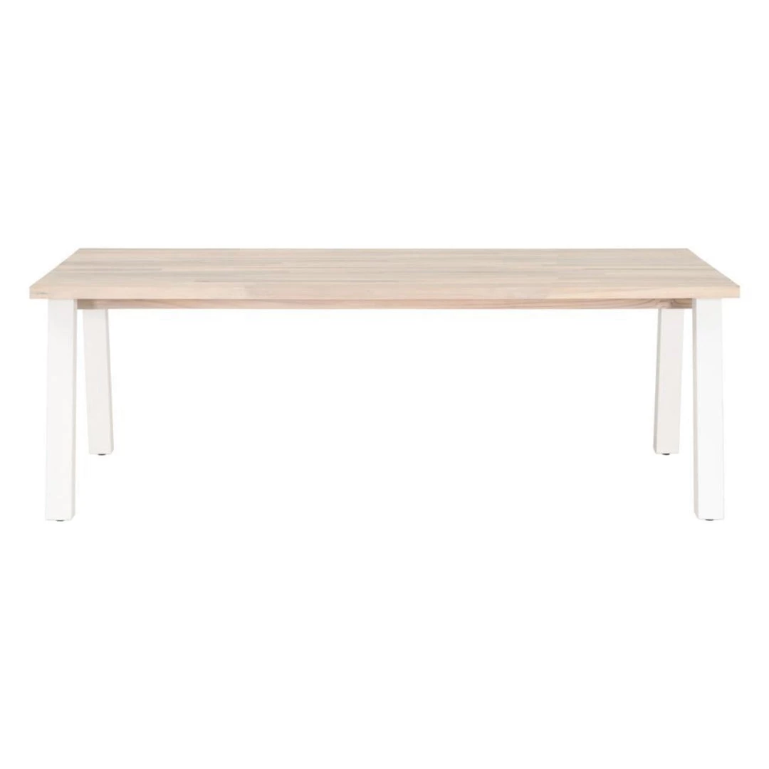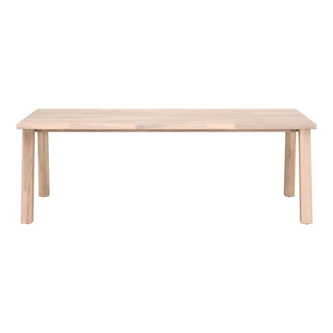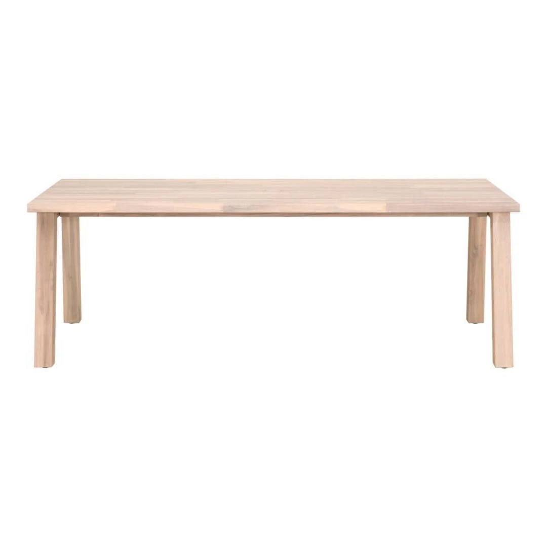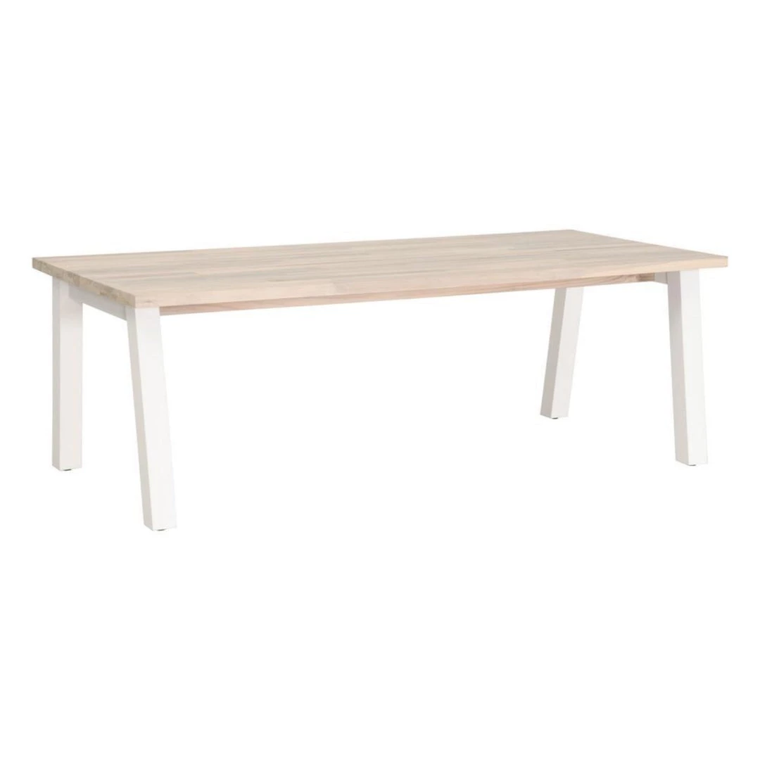 Transitional style dining table base made with solid teak and features an angled leg design that is suitable for either indoor or outdoor use.
