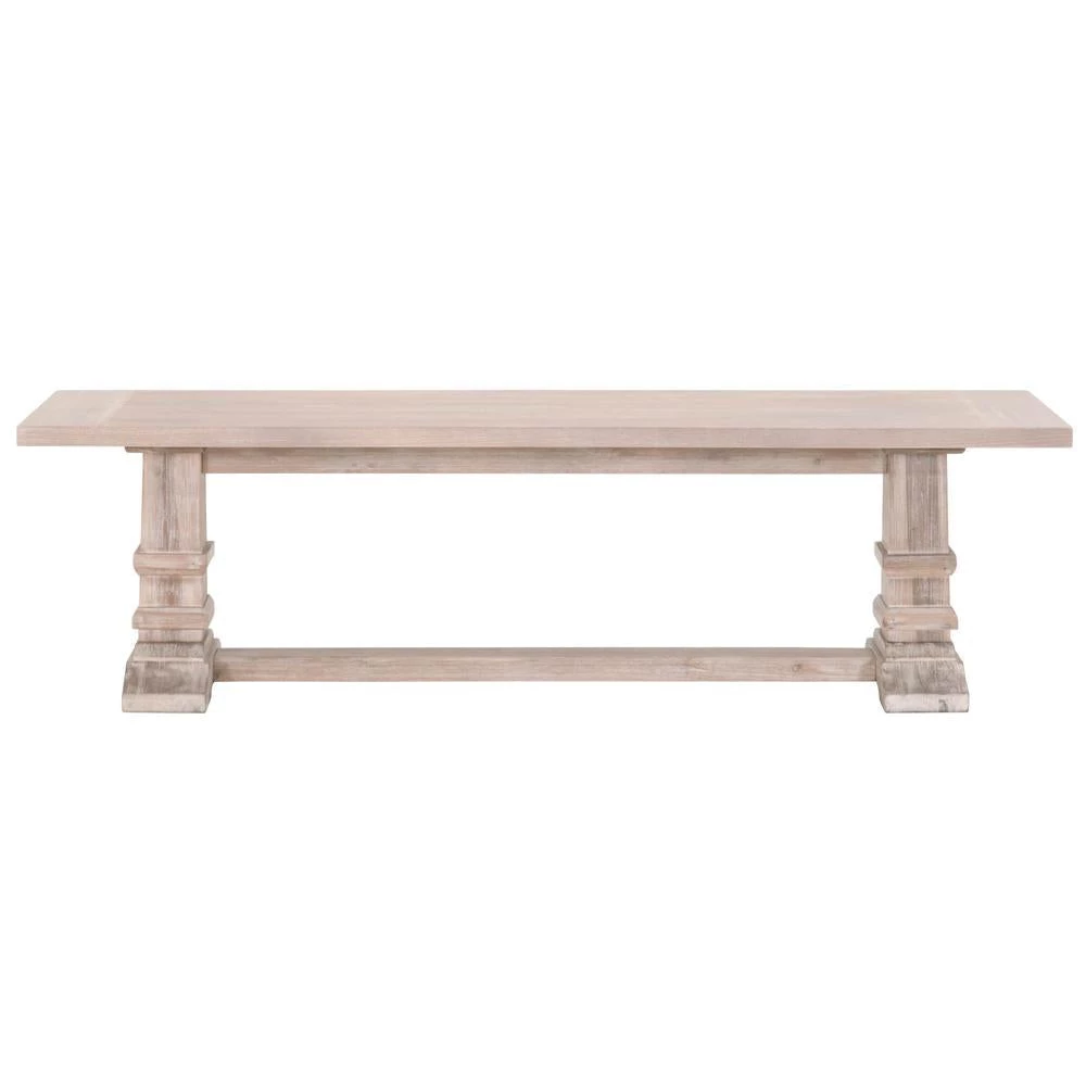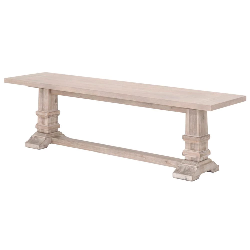 Furnish your dining or living space with this transitional style dining bench. Made of solid acacia wood and acacia veneer, the bench has as a natural gray finish with natural grooves and saw marks, which give it a slightly distressed look. The base also features a support beam for extra stability and durability. Versatile for many rooms, this bench can be used for seating at the dinner table, a bench for an entry way and additional seating in a living room. Pairs well with traditional, transitional, and farmhouse style dinner tables.