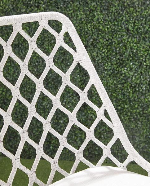 Set the tone of a casual beachy atmosphere with this rope dining chair. This dining chair is carefully crafted with an intricately woven rope designed in a lattice-like pattern. It is constructed with solid gray teak legs that are suitable for outdoor or indoor use. Its removeable seat cushion is made of an olefin fabric that is weather resistant and can sustain through light weather conditions (the cushion should be stored away in extreme weather conditions and heavy rain). Furnish your dining room or outdoor dining set with this coastal-inspired dining chairs.