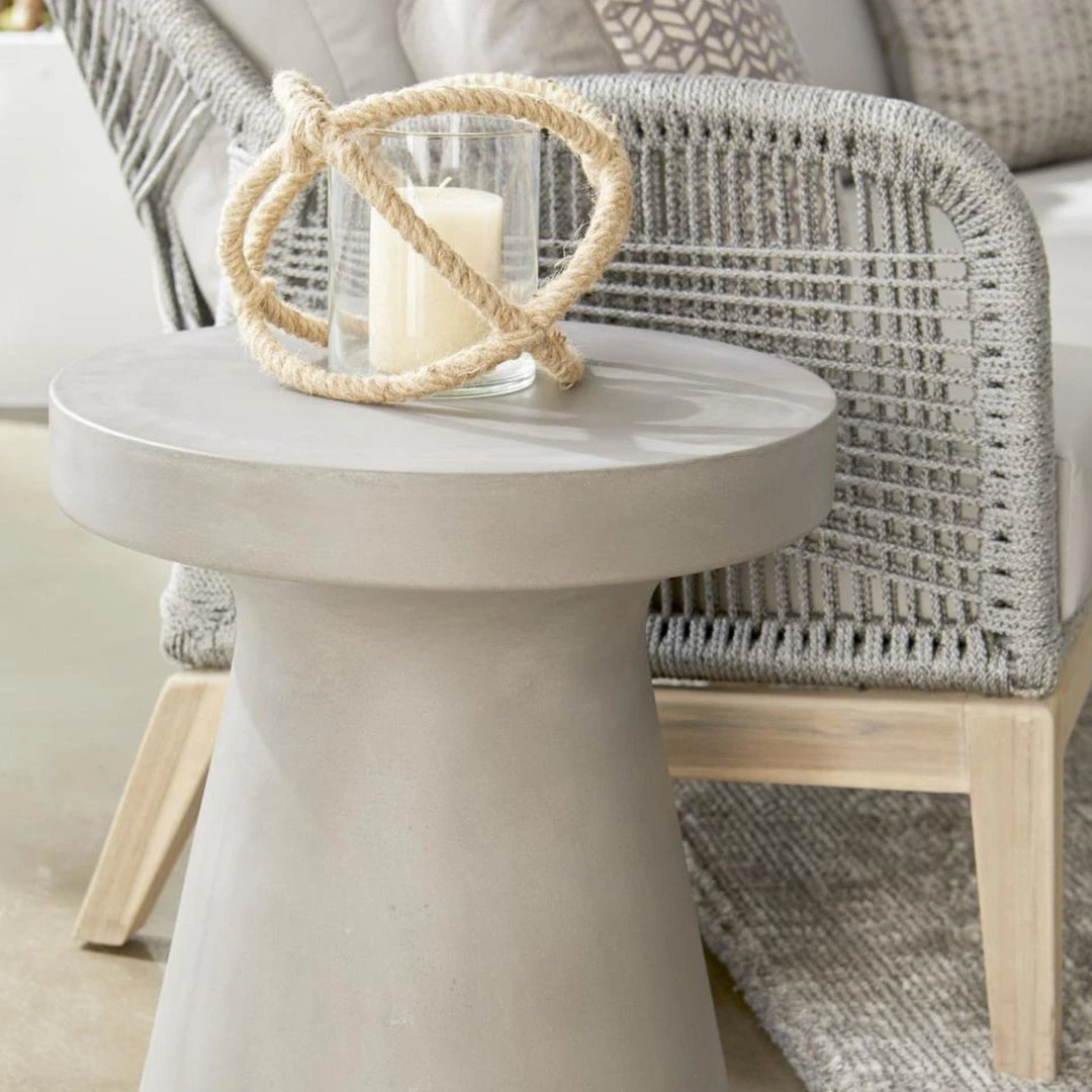 This sleek concrete accent table is suitable for indoor and outdoor use. Constructed with nano-sealed concrete, the table is meant to prevent most surface stains and be durable for outdoor use (not recommended for extreme weather conditions and excessive rain or moisture). It is designed with a unique shape that resembles a tack. It’s gorgeous ivory coloring contributes to making this table a proper fit with many interior and outdoor styles.