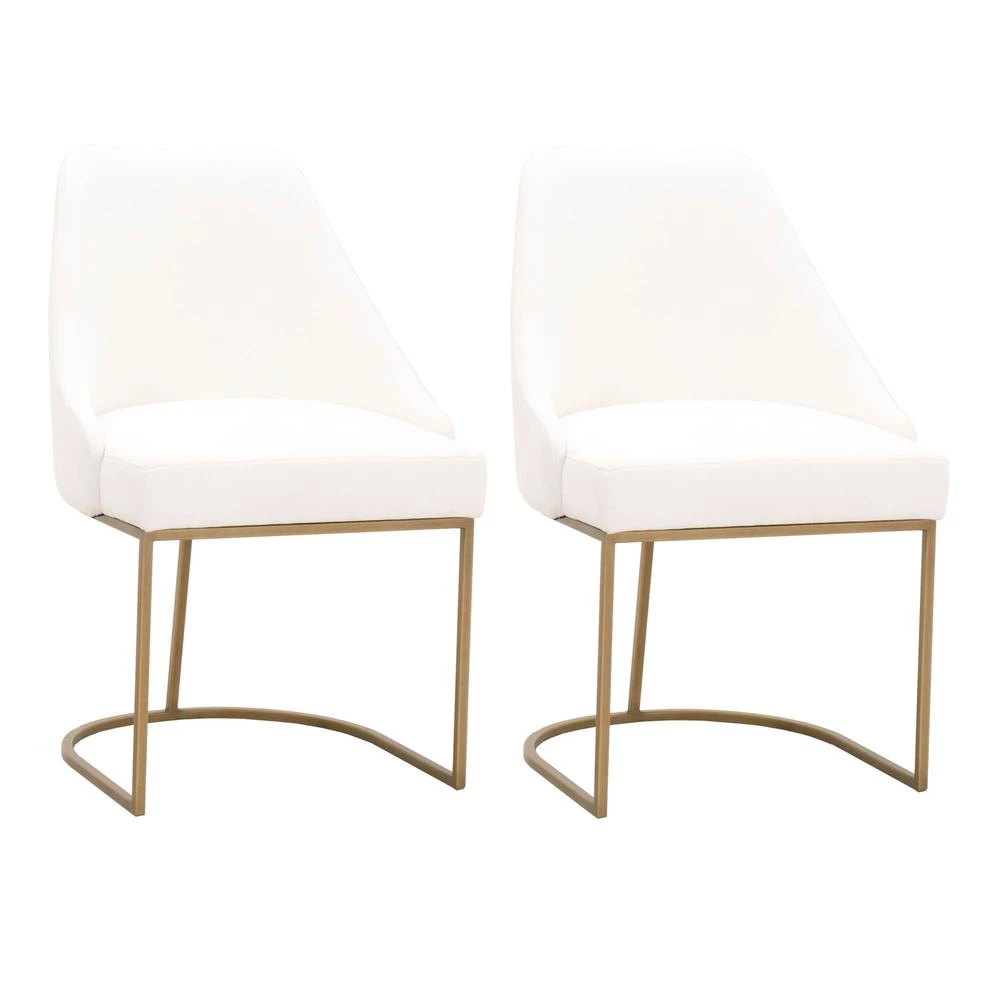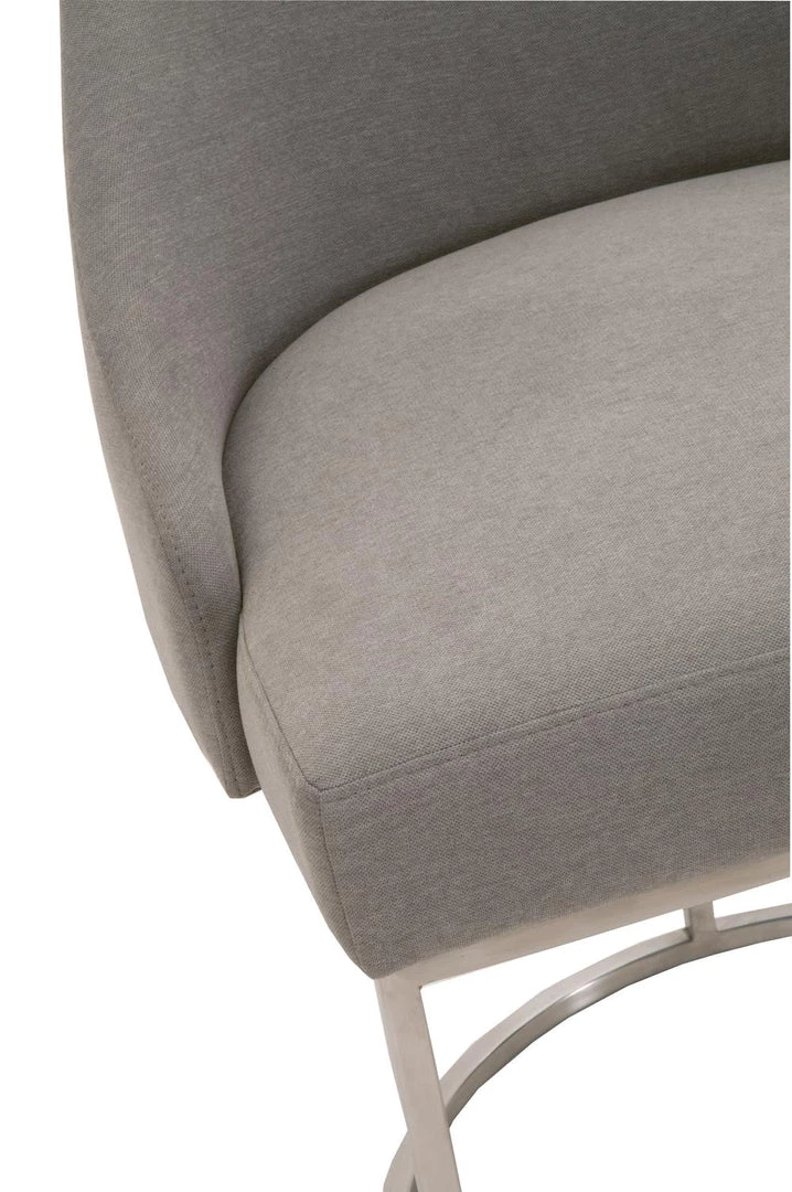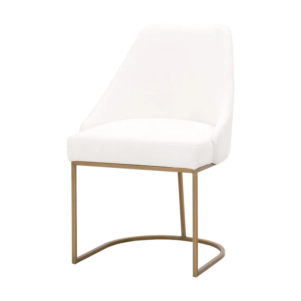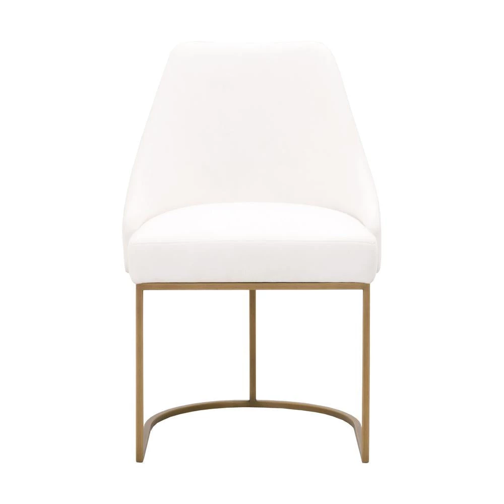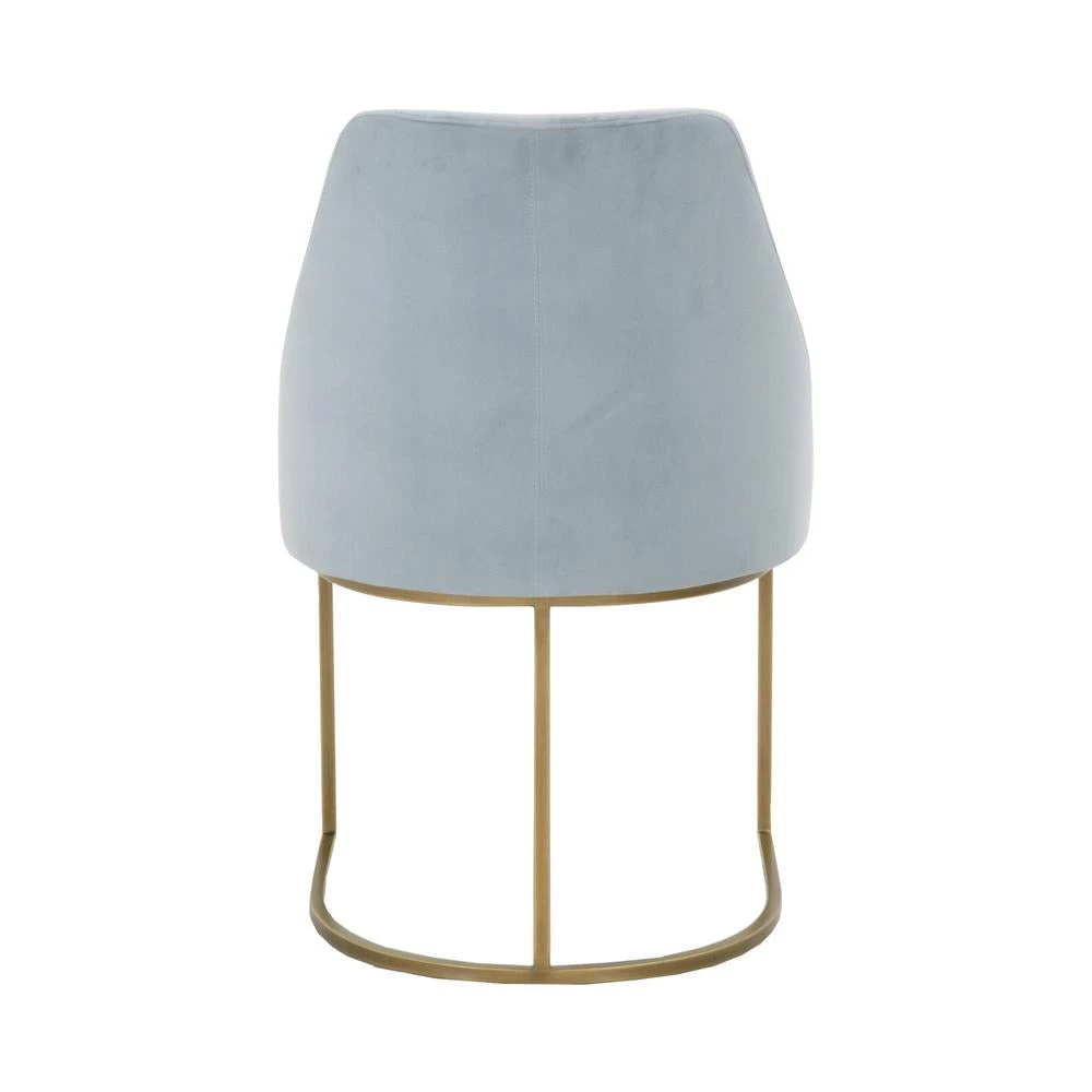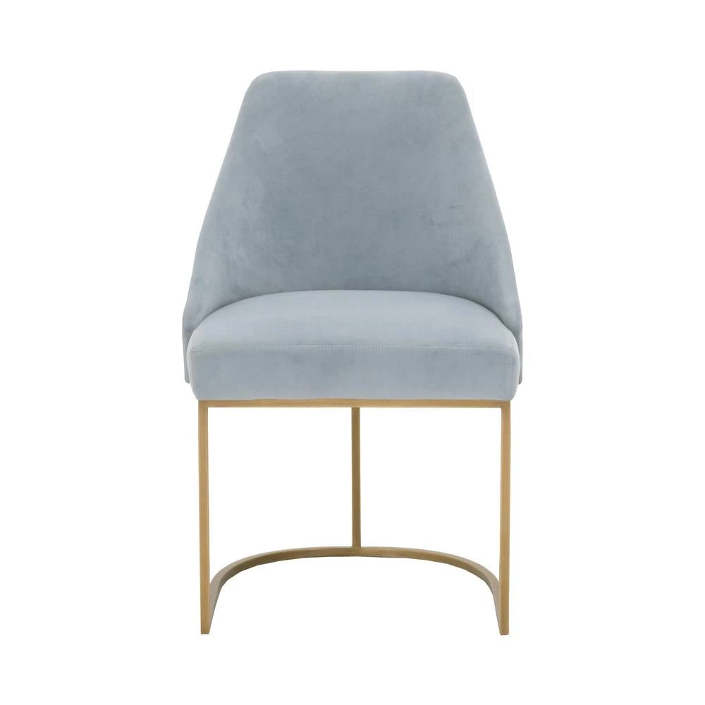 This gorgeous dining chair pairs sophistication with modern elegance. The coastal velvet seat perfectly compliments the brushed gold decorative base. With a wide curved back and stain resistant fabric, this side chair is a comfortable and practical way to add transitional style to your dining room.