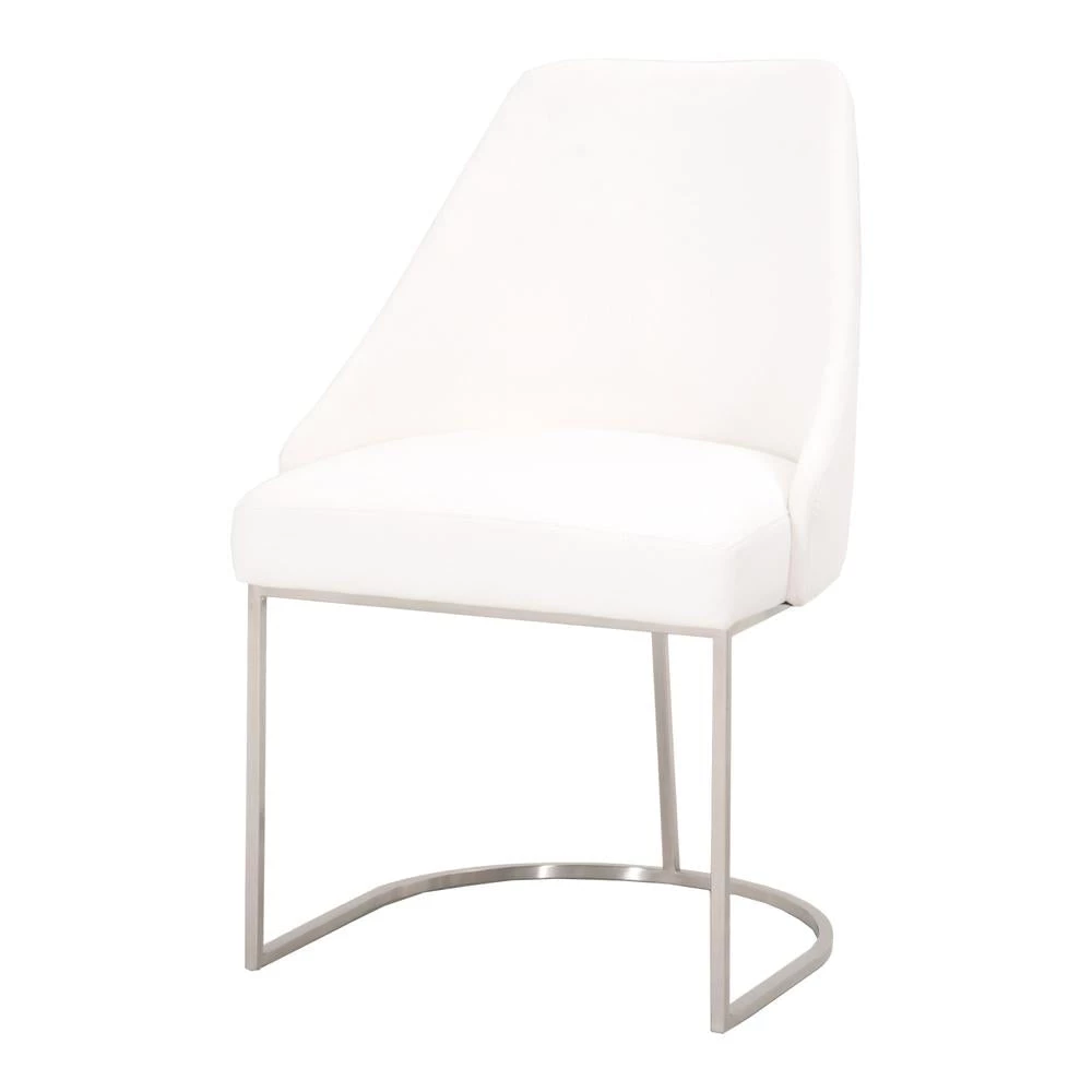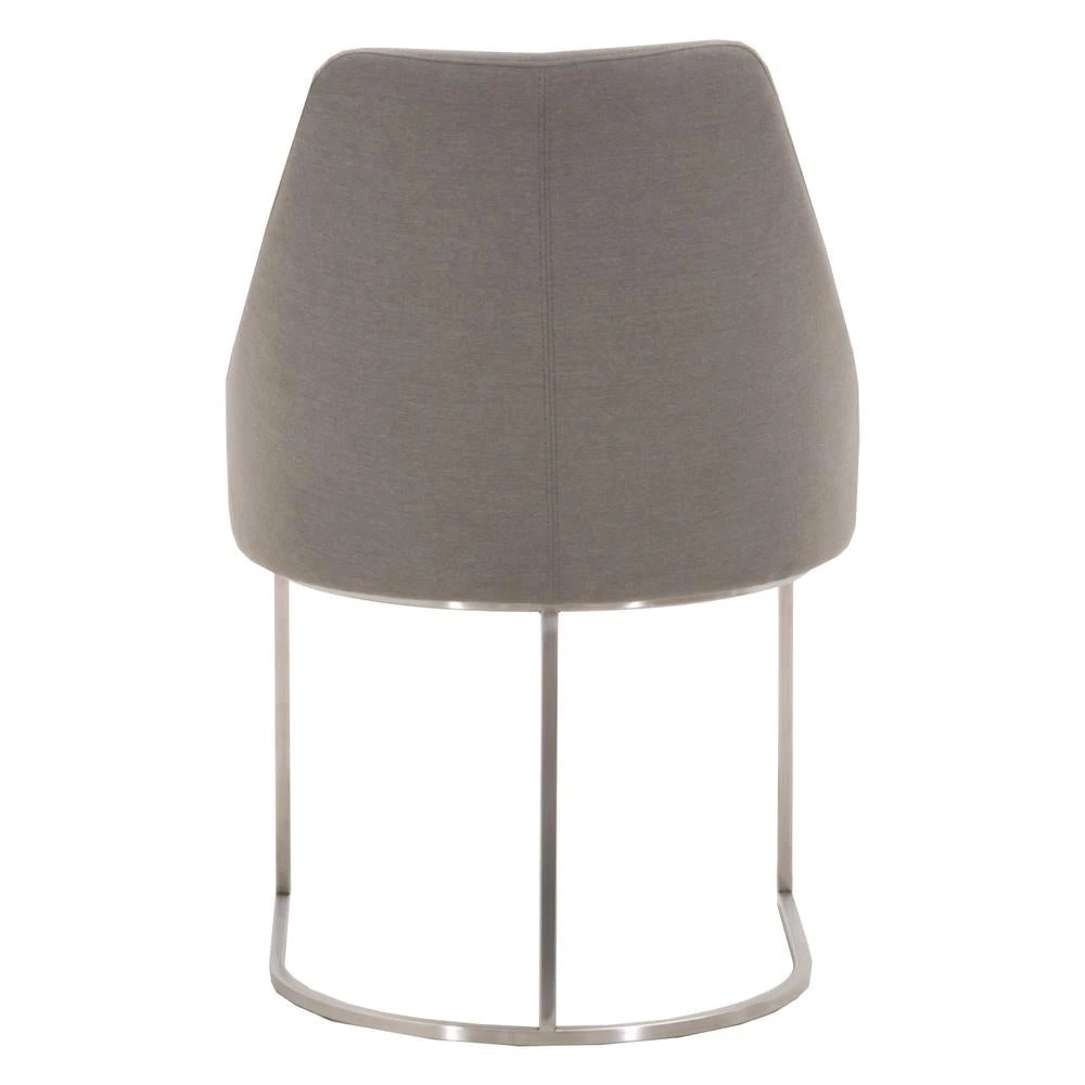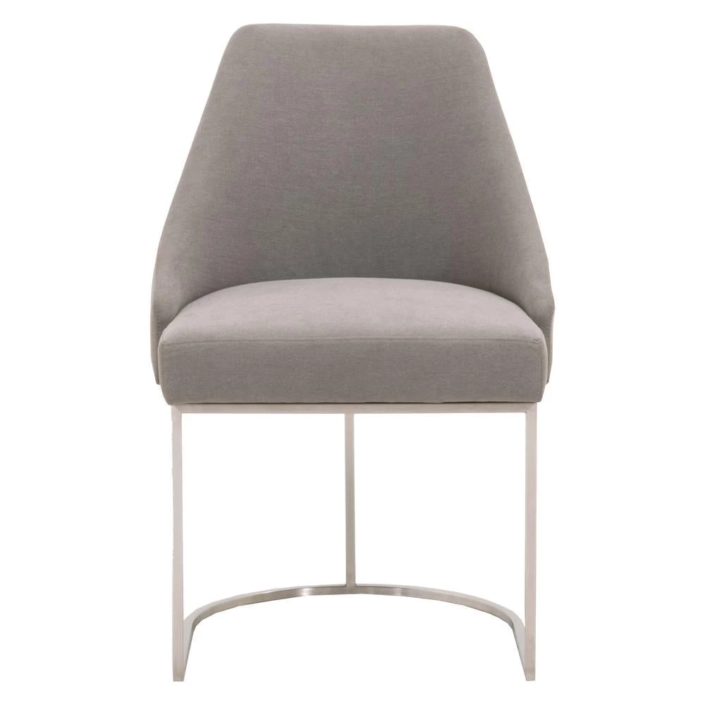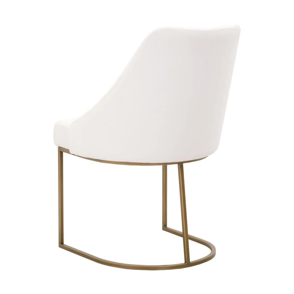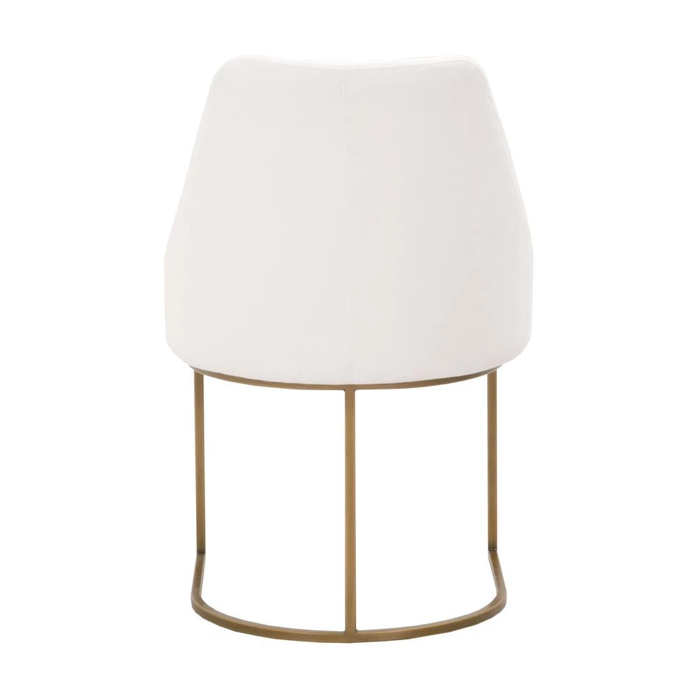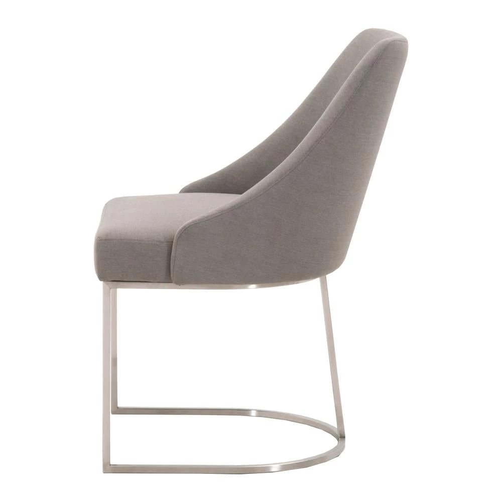This gorgeous dining chair pairs sophistication with modern elegance. The coastal velvet seat perfectly compliments the brushed gold decorative base. With a wide curved back and stain resistant fabric, this side chair is a comfortable and practical way to add transitional style to your dining room.