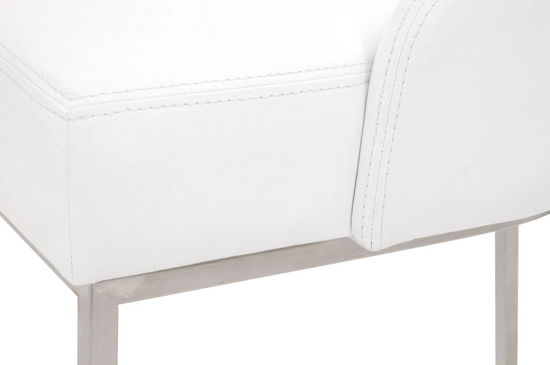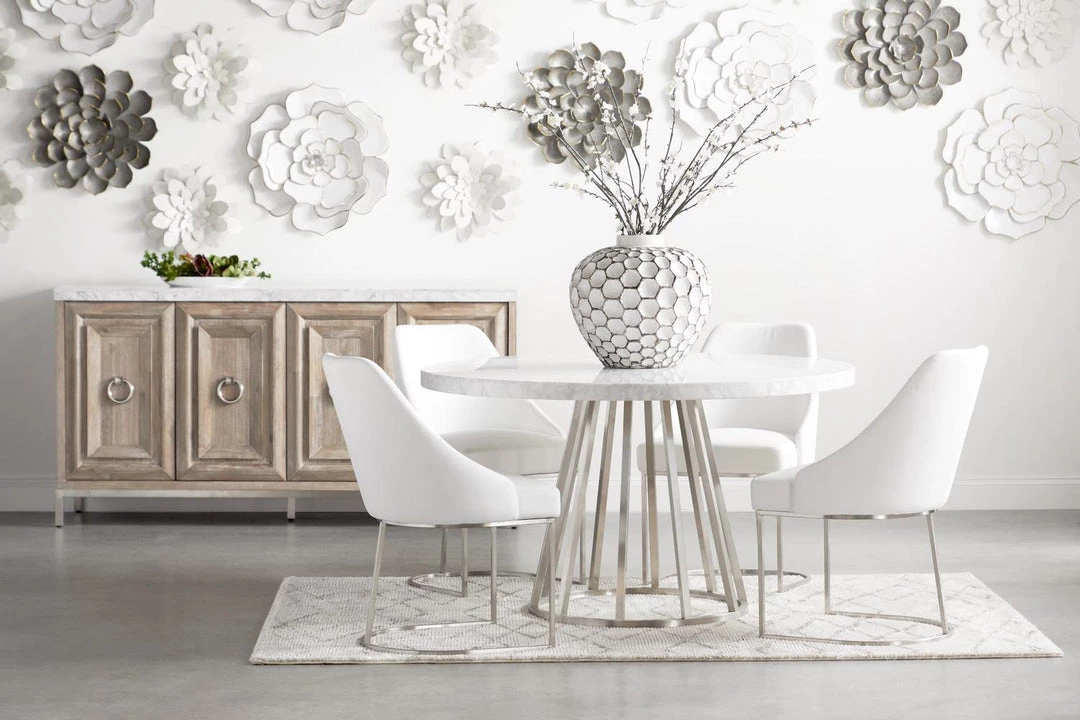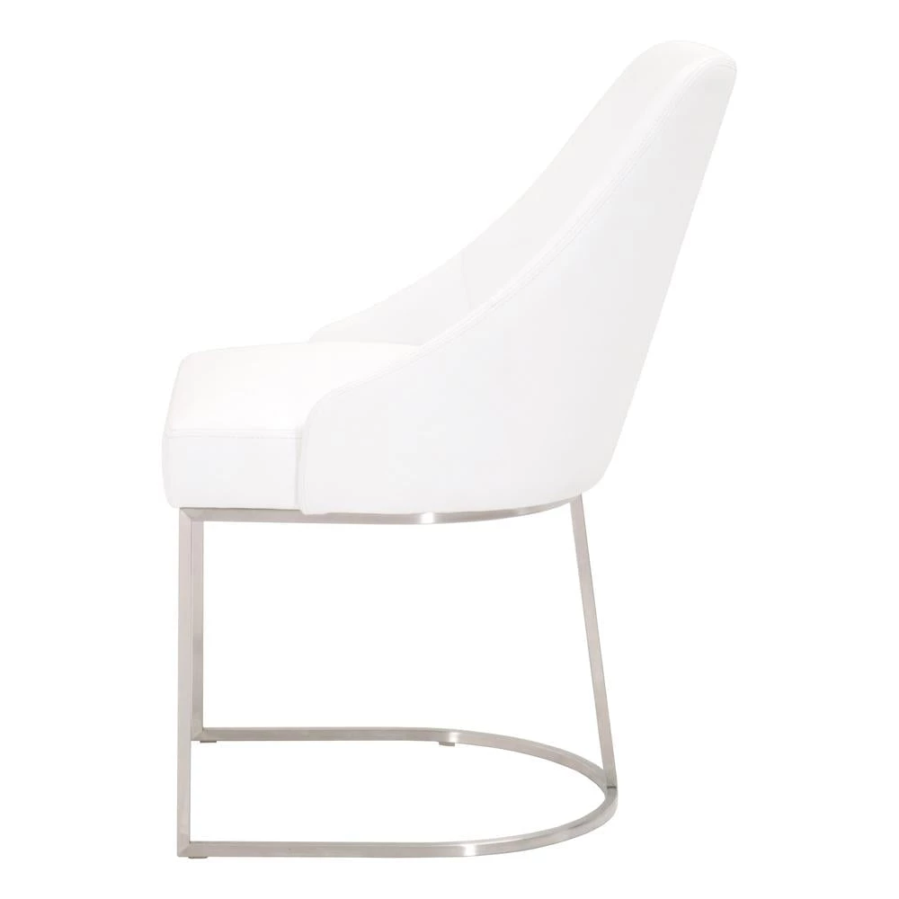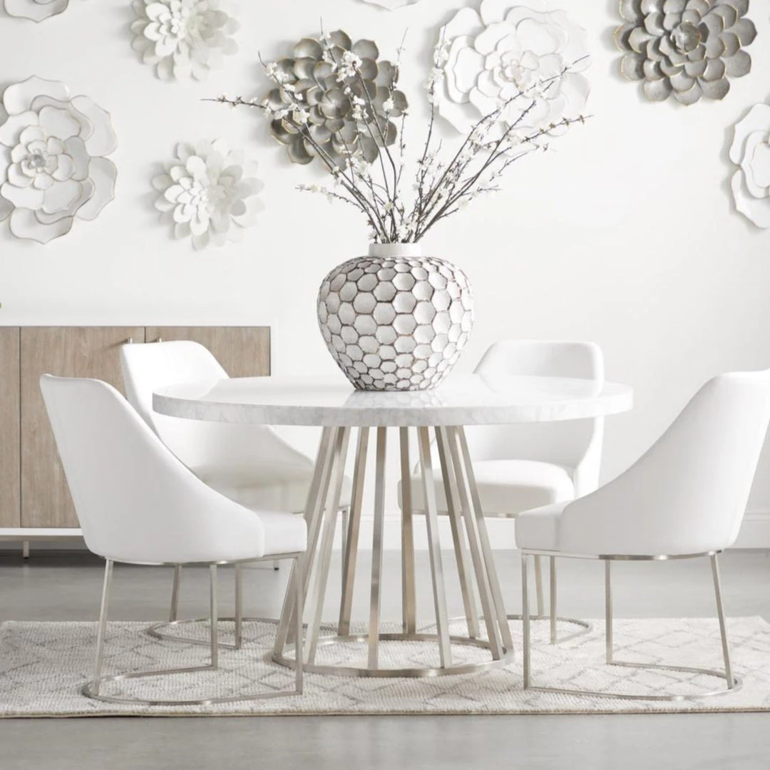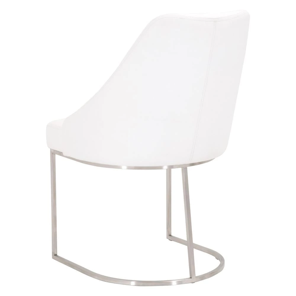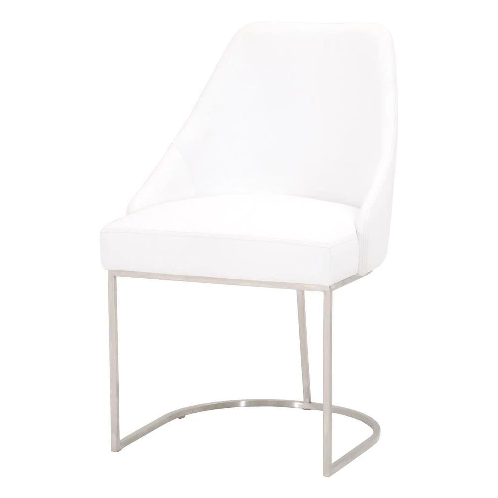 This gorgeous dining chair pairs sophistication with modern elegance. The coastal velvet seat perfectly compliments the brushed gold decorative base. With a wide curved back and stain resistant fabric, this side chair is a comfortable and practical way to add transitional style to your dining room.