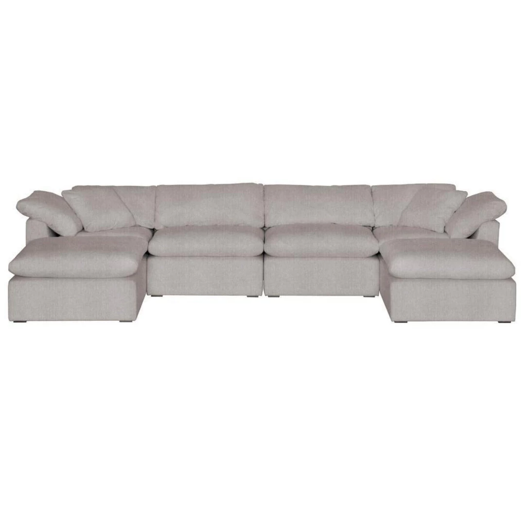 Add transitional style to your living room, family room, or den with this modular sofa in LiveSmart Peyton-Pearl/Slate fabric. Made from half down and half polyester, this sofa is extremely comfortable to curl up and read a book or watch your favorite show on. It features reversible seat and back cushions, as well as ties to prevent the cushions from moving. Constructed with 3.8″ coil sinuous springs and stain-resistant fabric, this chair is meant for durability and dependability.