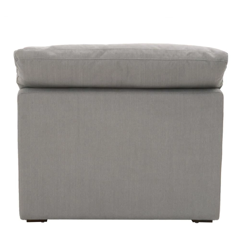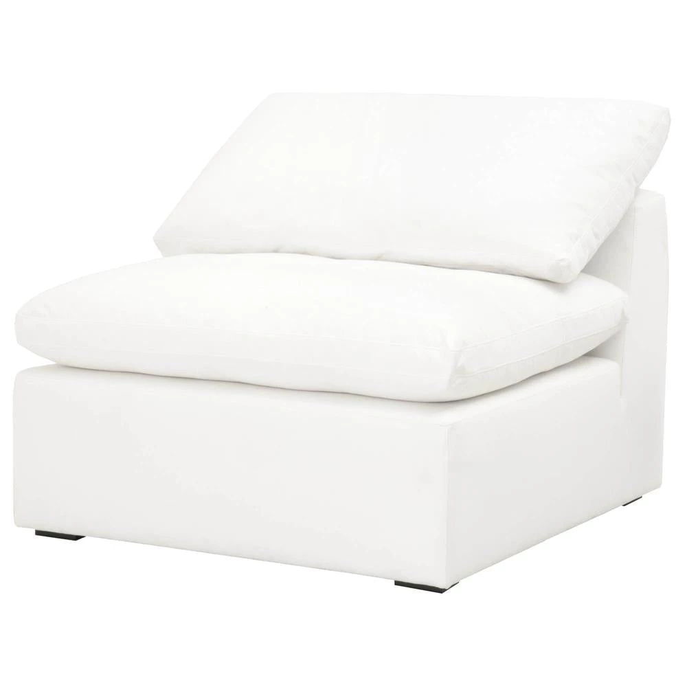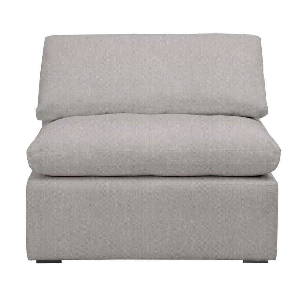 Add transitional style to your living room, family room, or den with this modular armless chair in Livesmart Peyton-Pearl fabric. With the seat cushion made of half down and half polyester, this chair is extremely comfortable to curl up and read a book or watch television on. It features reversible seat and back cushions, as well as ties to prevent the cushions from moving. Constructed with 3.8″ coil sinuous springs and stain resistant fabric, this chair is meant for durability and dependability. Pairs nicely with sectional sofas and works great as additional seating.