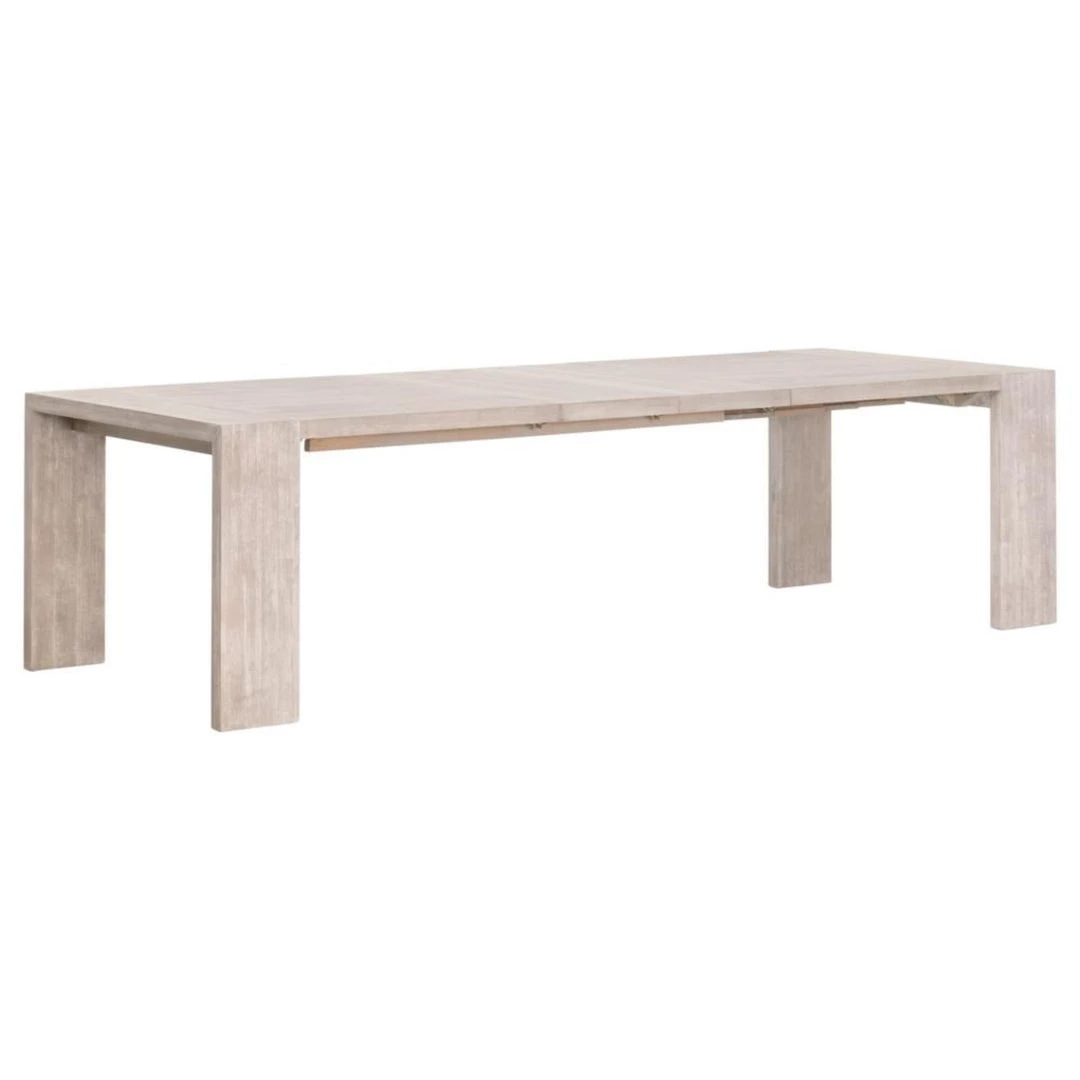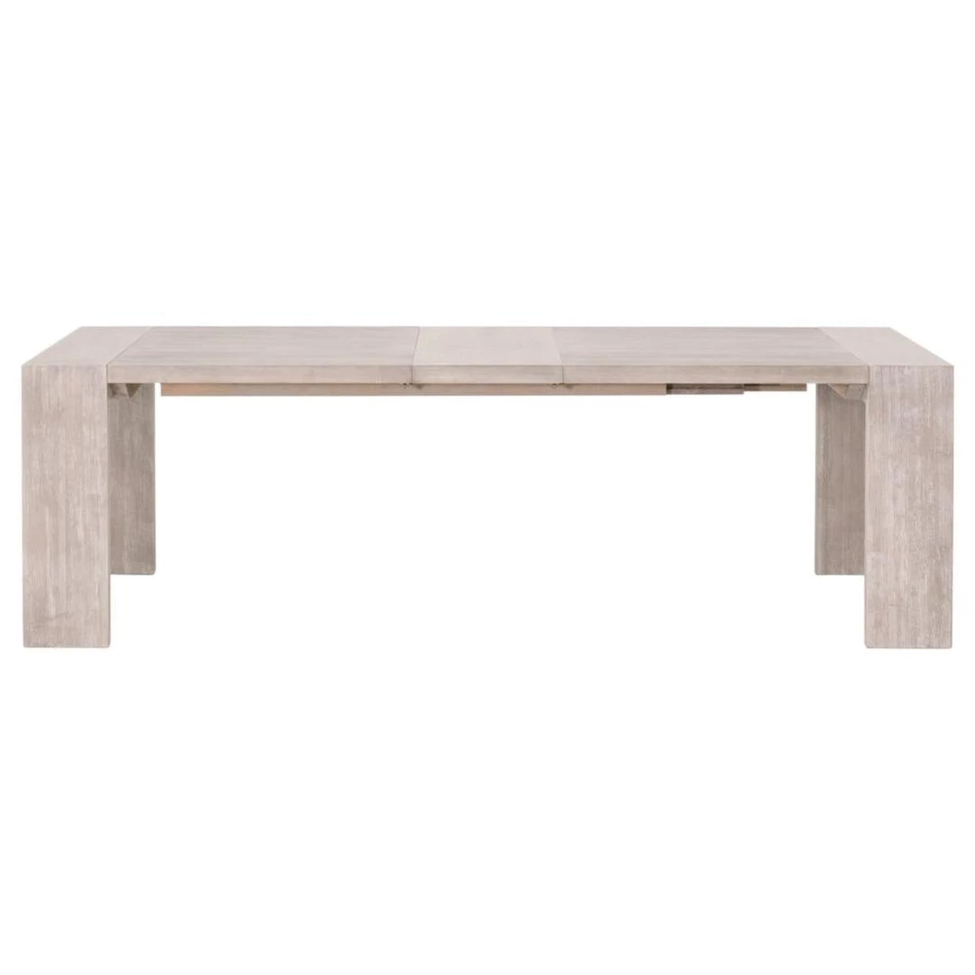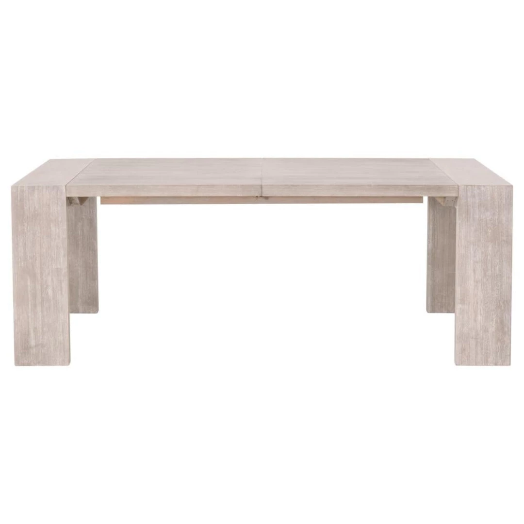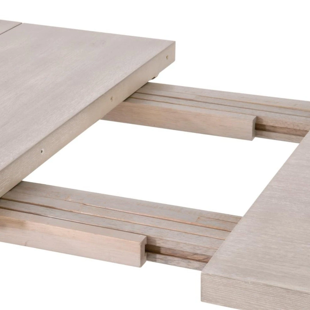 Simplicity meets modern and traditional designs with this extension dining table. Constructed with a sleek and simple silhouette, this wood table was thoughtfully crafted to create plenty of space to enjoy dining with your loved ones. The wide, squared table legs are molded to the tabletop to create a seamless look. This creates plenty of space for chairs to slide under the table on each side without worrying about bumping into a base. It is made of natural gray acacia wood and contains two removable leaves. Comfortably seats up to 8 people with both leaves inserted.