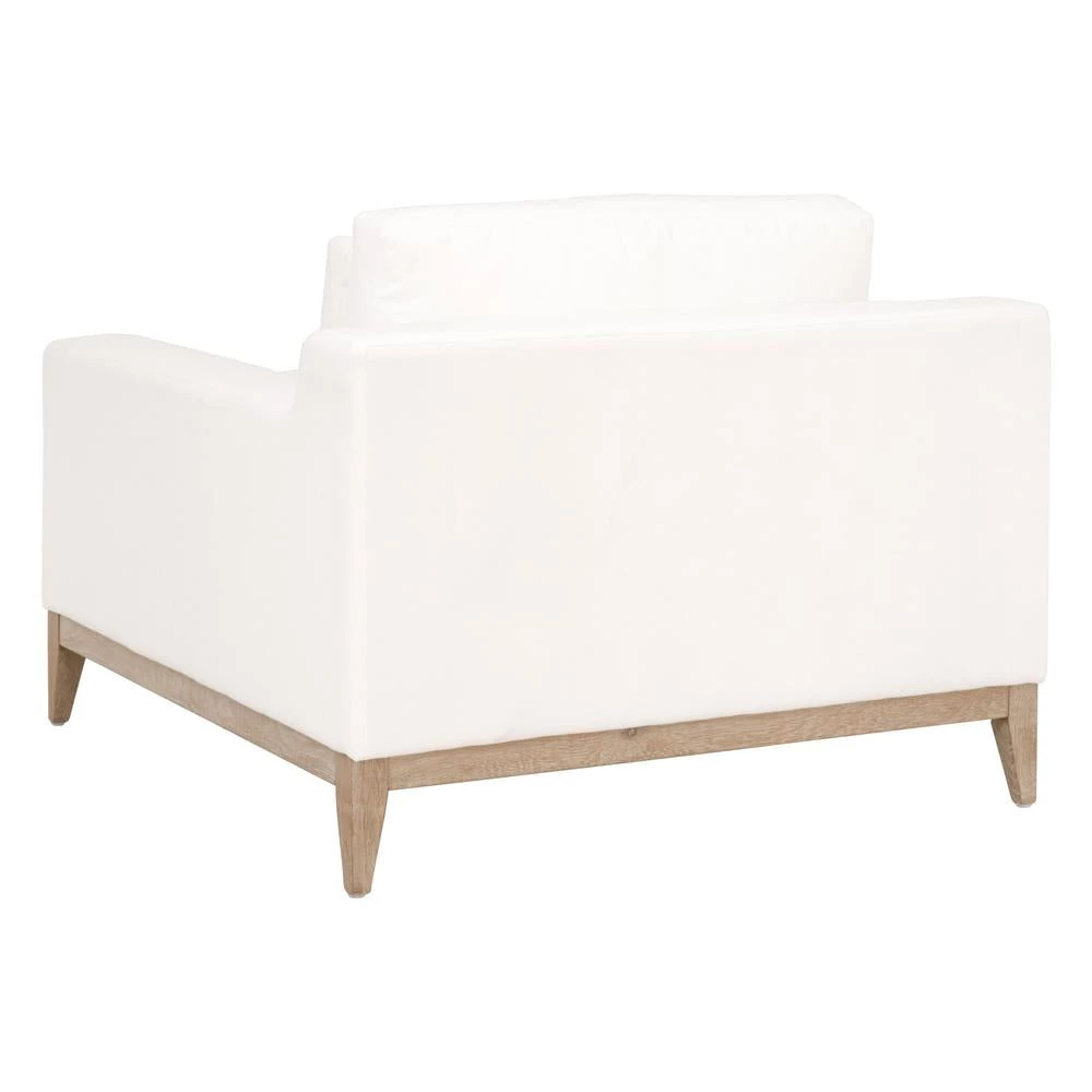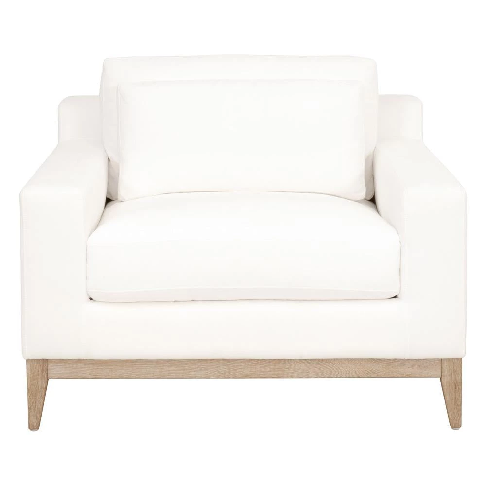 This sofa arm chair is a classic-looking piece that will remain a timeless staple in your living room. Its wide and plush design makes this chair a warm and comforting place to sit. It features thick seat and back cushions filled with a down and polyester blend and lumbar pillow filled with a Dacron feather blend. It is constructed with simple lines and details for a modern and sleek look. The chair is also upholstered with a stunningly beautiful white material and natural gray oak legs, which exudes a very clean and airy aesthetic. This material is thoughtfully designed with a high-performance and quality fabric that is easy to clean. Furnish your living space with this neutral and cozy sofa chair.