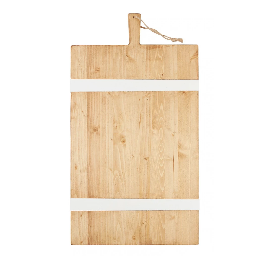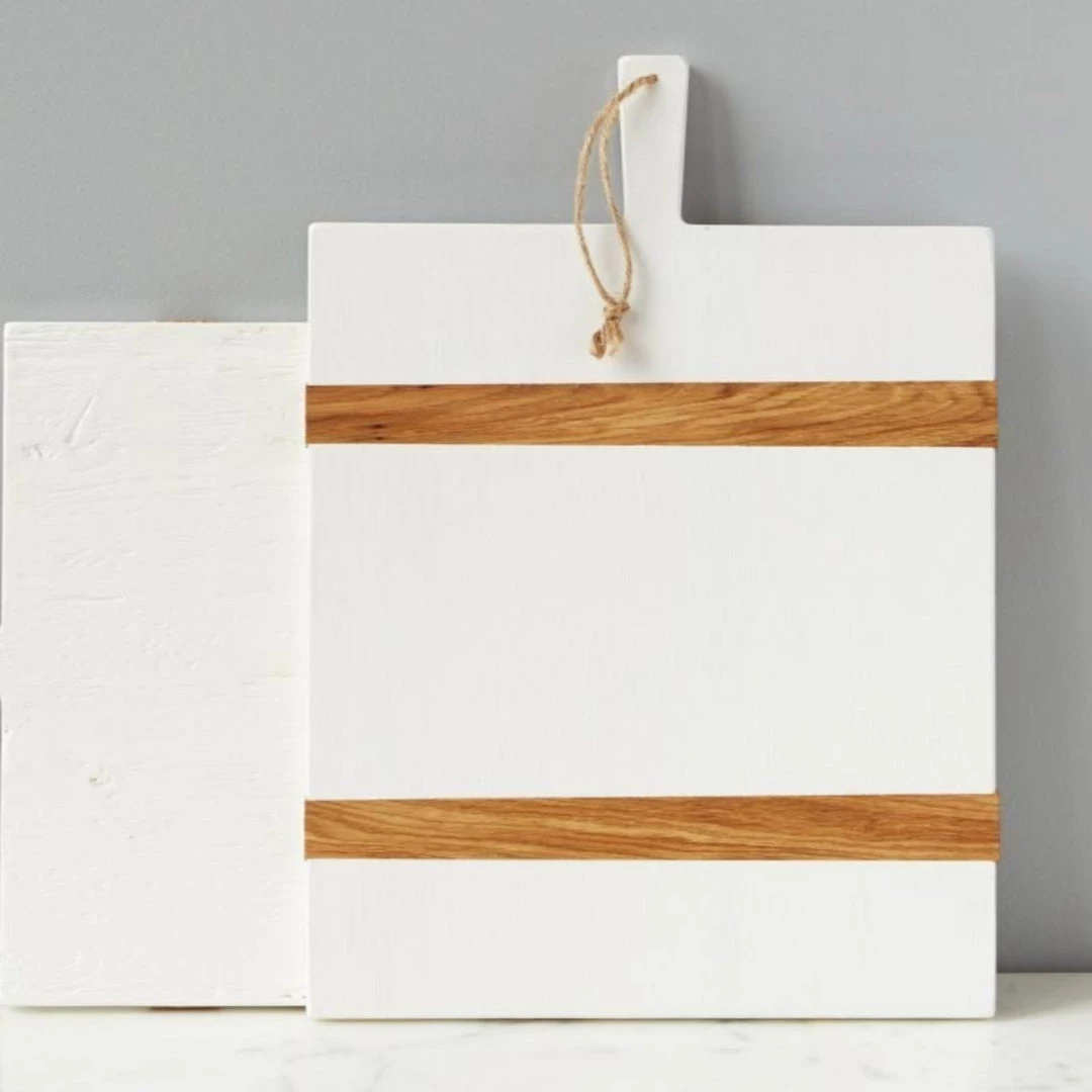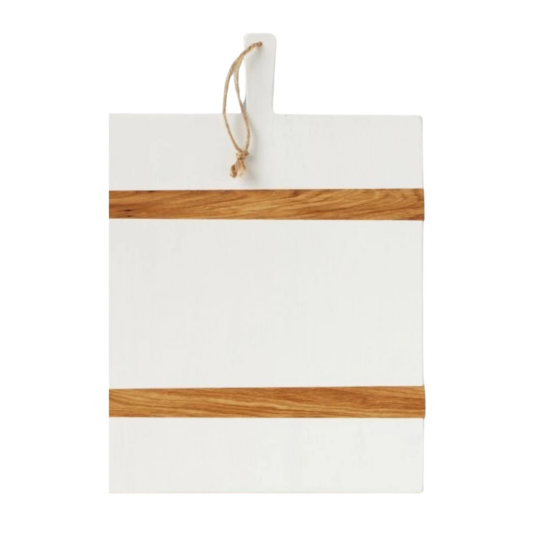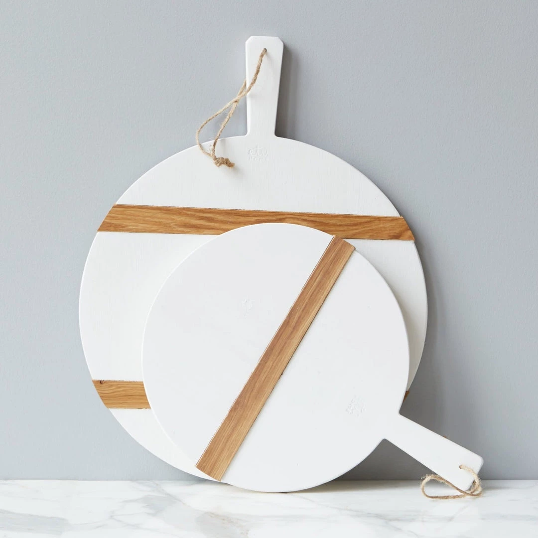 This oversized wood board is your new go-to for all serving, hosting, and decorative needs. For a modern spin, the serving board’s slats have been updated in a lively white wax, a sure conversation starter. To ensure durability and timelessness, the wood platter is distinguished by two perfectly engineered strips of oak placed at ideal points to avoid the wood from warping.