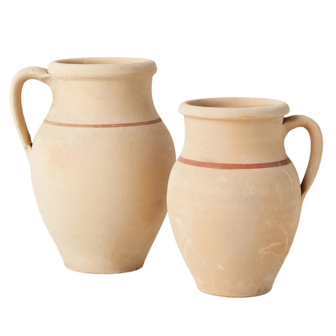 Collected from across Eastern Europe, specifically Greece, Bulgaria, and Turkey, these terra-cotta jugs have been bringing people together, creating memories, and inspiring joyful homes for years. Dating back to the 1900s, these one-of-a-kind vessels were found in abandoned factories and come in several shapes and sizes. While bearing marks age, each piece was hand-selected by our Creative Director and remains faithful to our high-quality standards.
