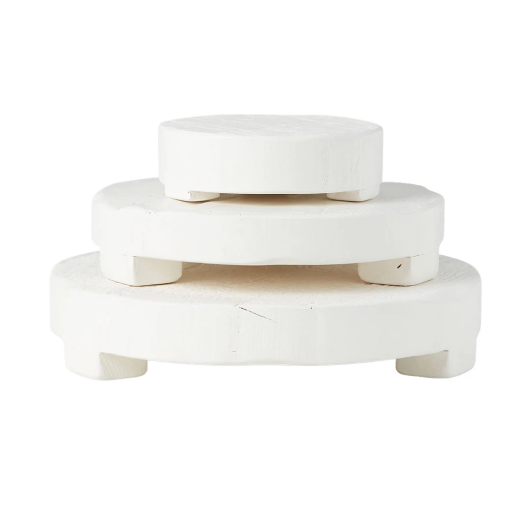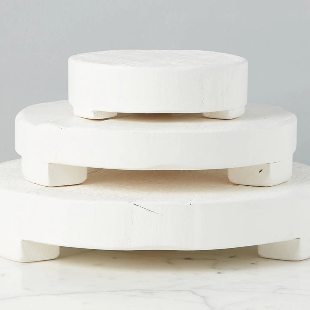 Handcrafted from reclaimed wood, the round wooden trivet, is a must-have decorative accent for any tabletop. The round wooden board’s white coloring is just a bonus, the riser can also be utilized as a hot pad and can be paired with hot or cold dishes straight from the oven or fridge. Indulge in a trivet set by mixing and matching shapes or sizes to make a true statement in any kitchen.