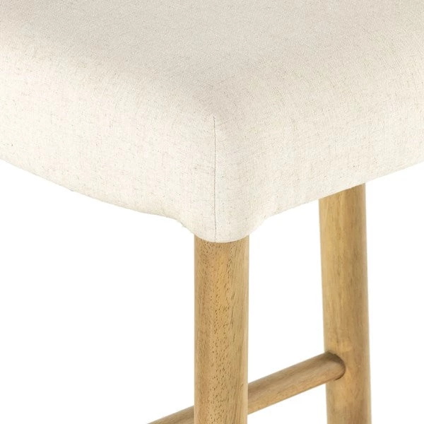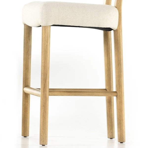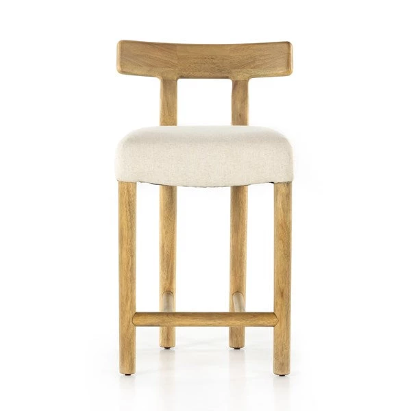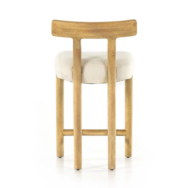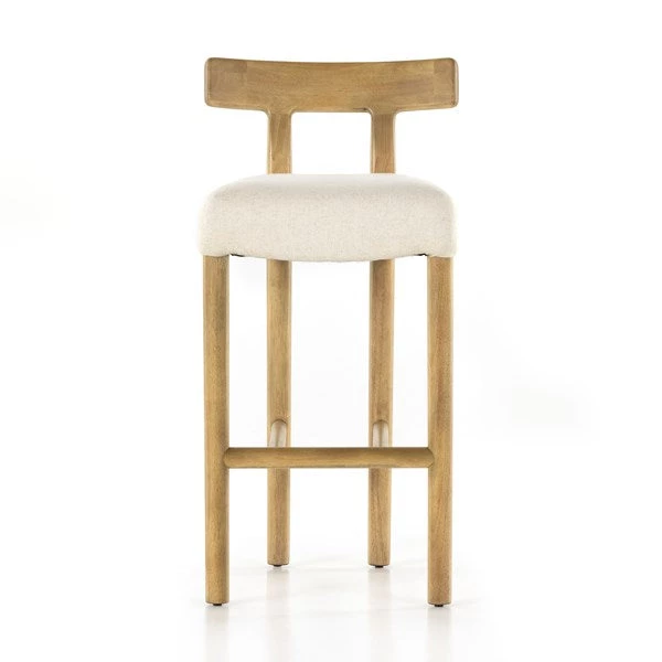 Made from solid burnished parawood, rounded edges lend a look of subtle softness to refresh the traditional T-back bar stool, with a fully upholstered seat for total comfort.