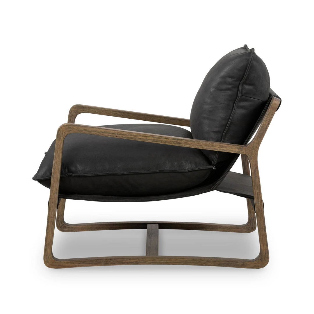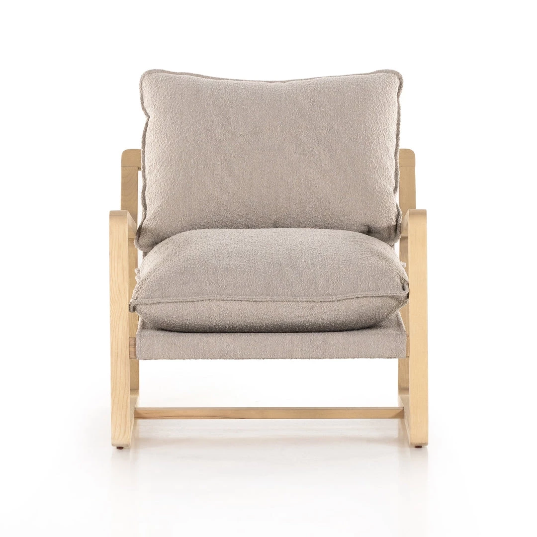 The perfect place to curl up with a good book. A hand-shaped oak frame supports deep, low-style seating covered in soft, neutral-colored cotton.