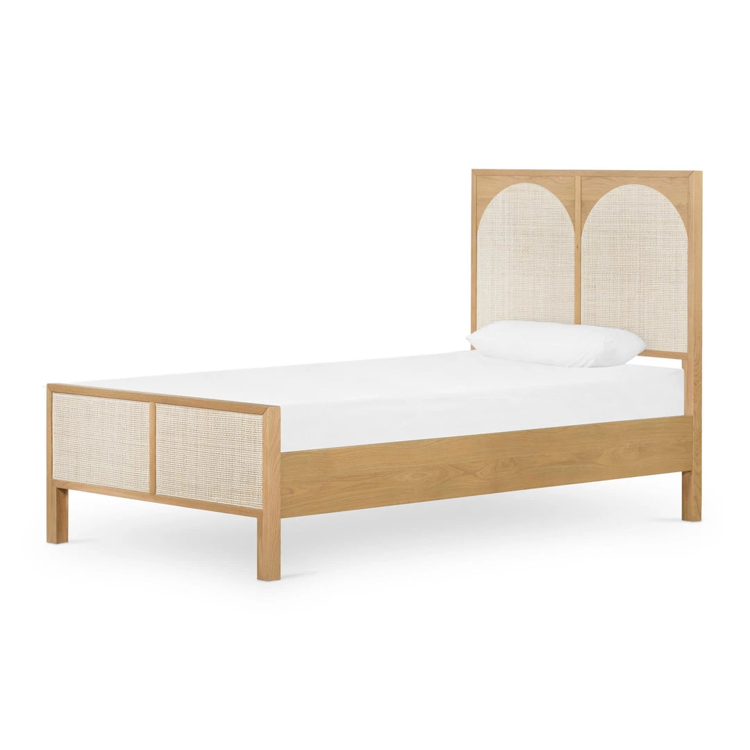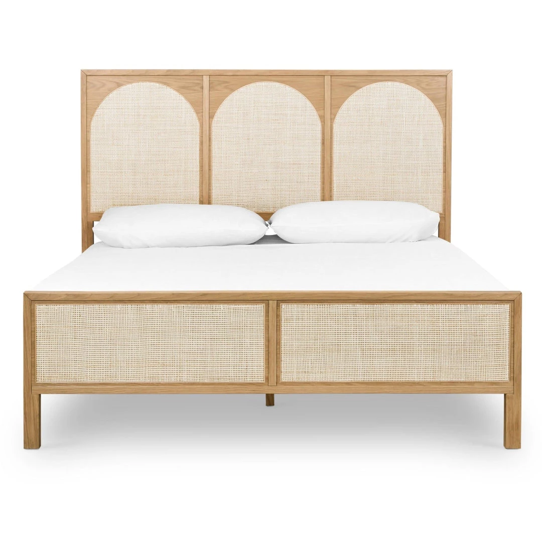 Au naturale. A light oak bed frame features wood-backed cane arches and panel footboard detailing, for a soft, neutral look with lasting modernity.
