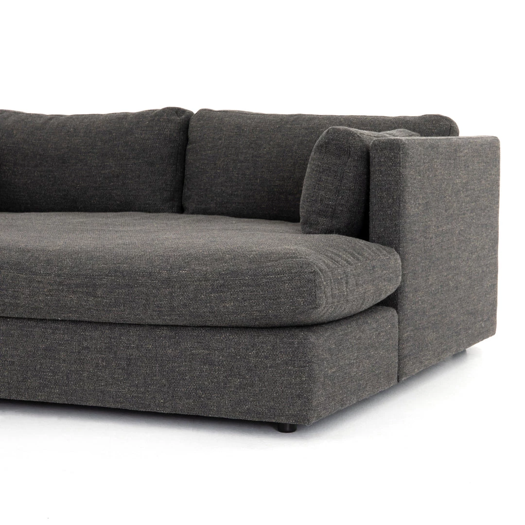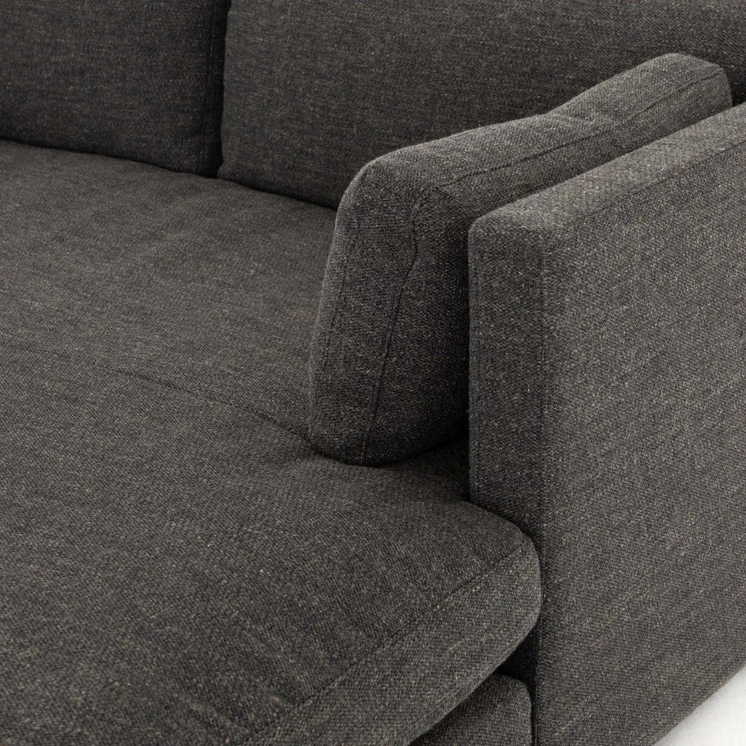 Equal parts stylish and functional. Plush, pillow-top seating upholstered in a grey performance-grade fabric exclusive to Four Hands, invitingly wide and just as comfy. Perfect for movie nights.
