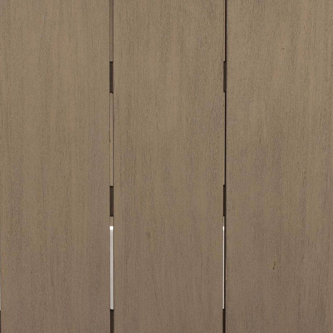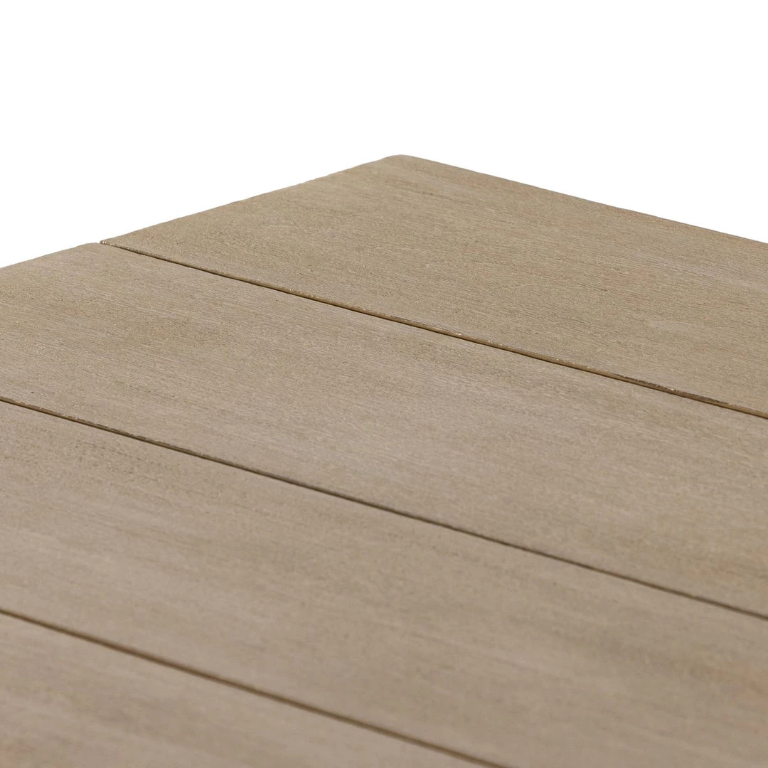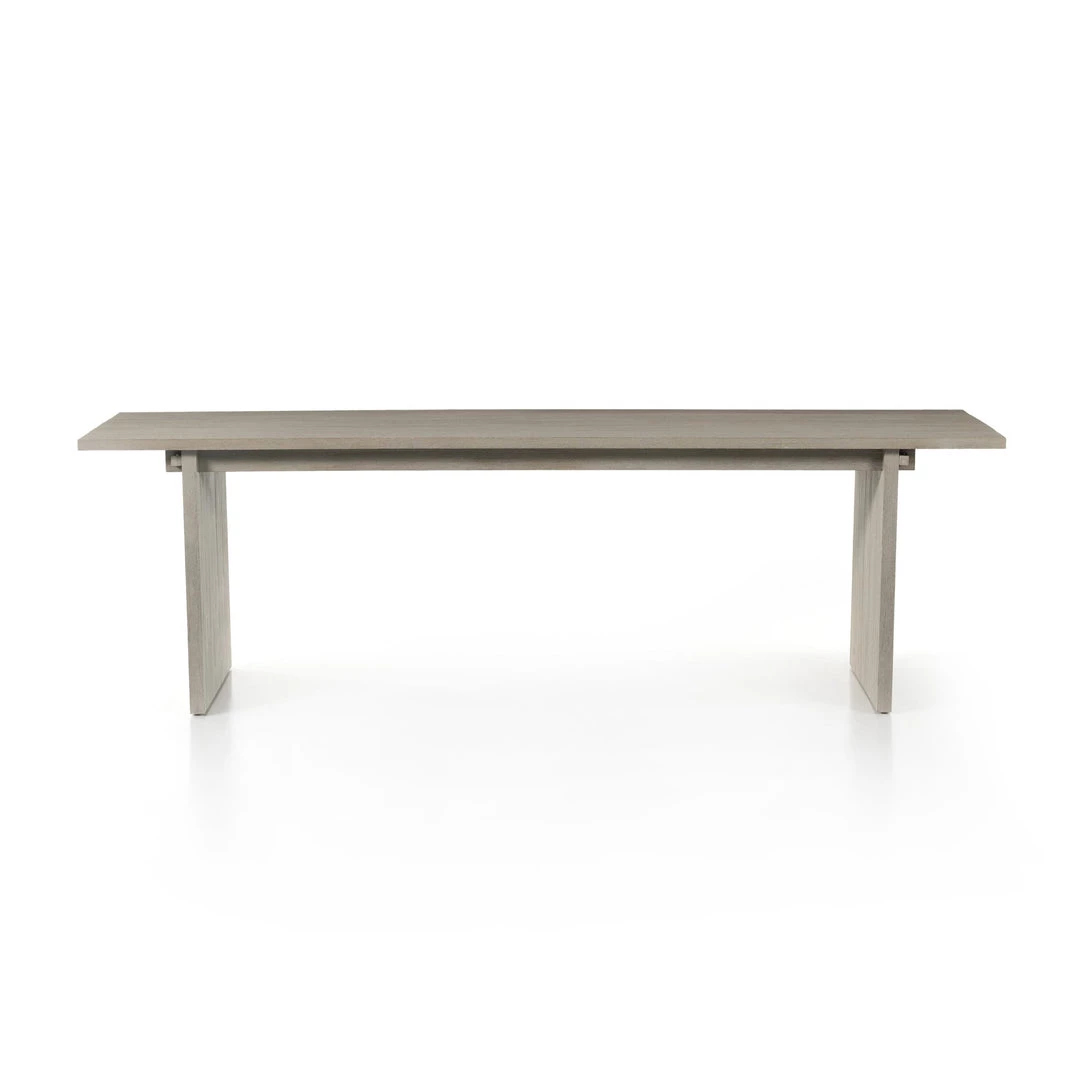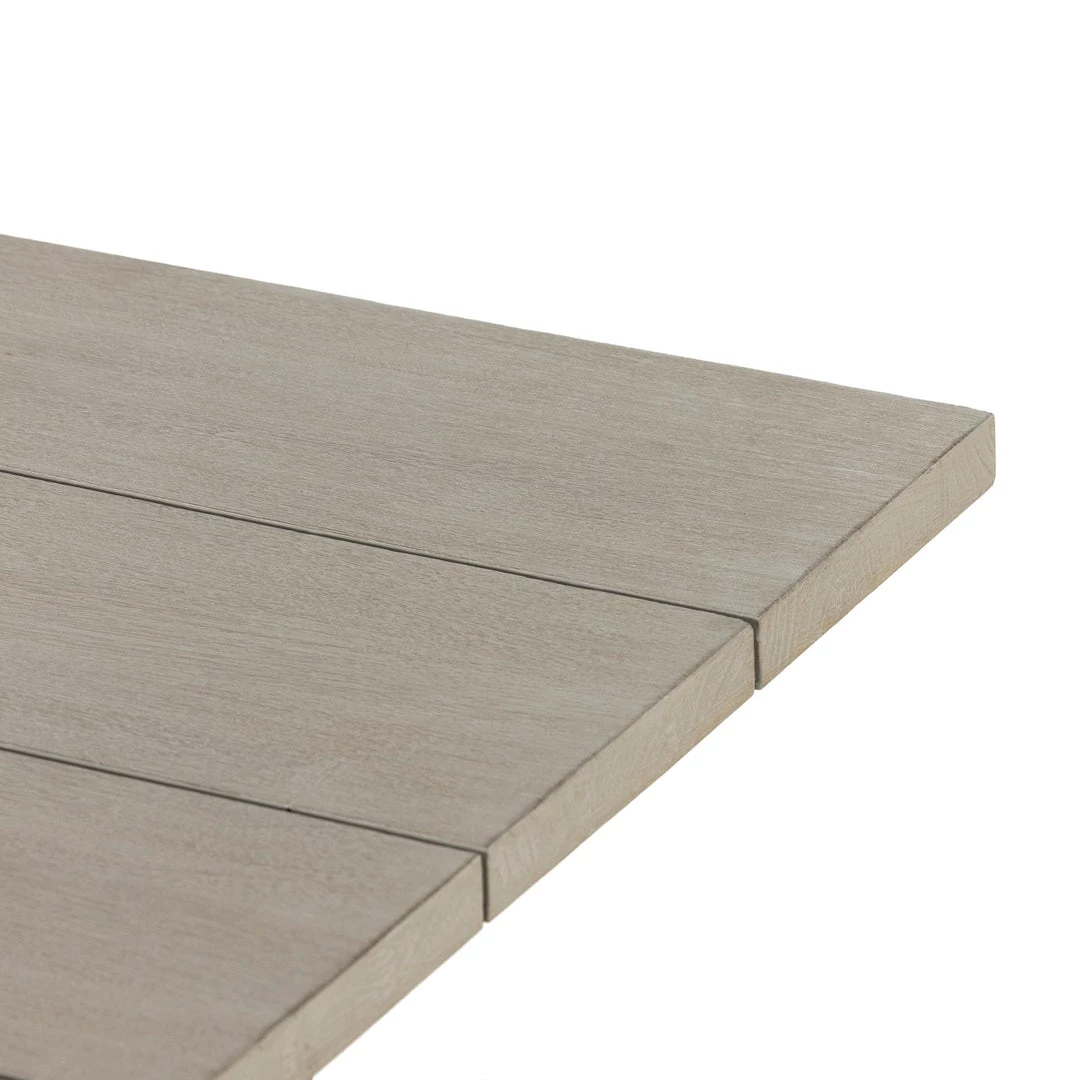 A sleek and large-scale setting for entertaining al fresco. Crafted of wide planks of solid teak with mortise and tenon joinery and detailing for a benchmade look and feel. Cover or store indoors during inclement weather and when not in use. Seats 10 comfortably.