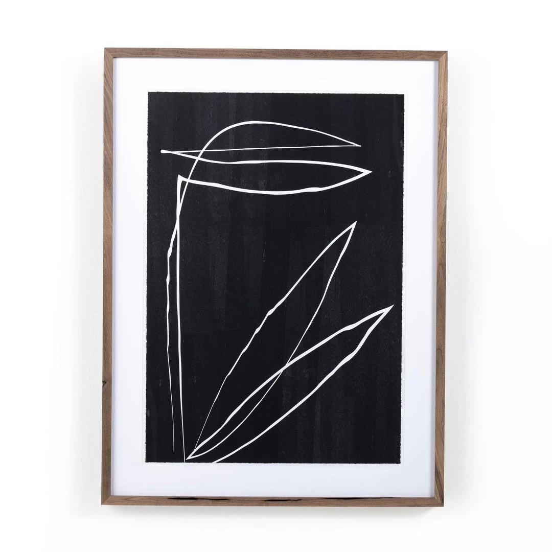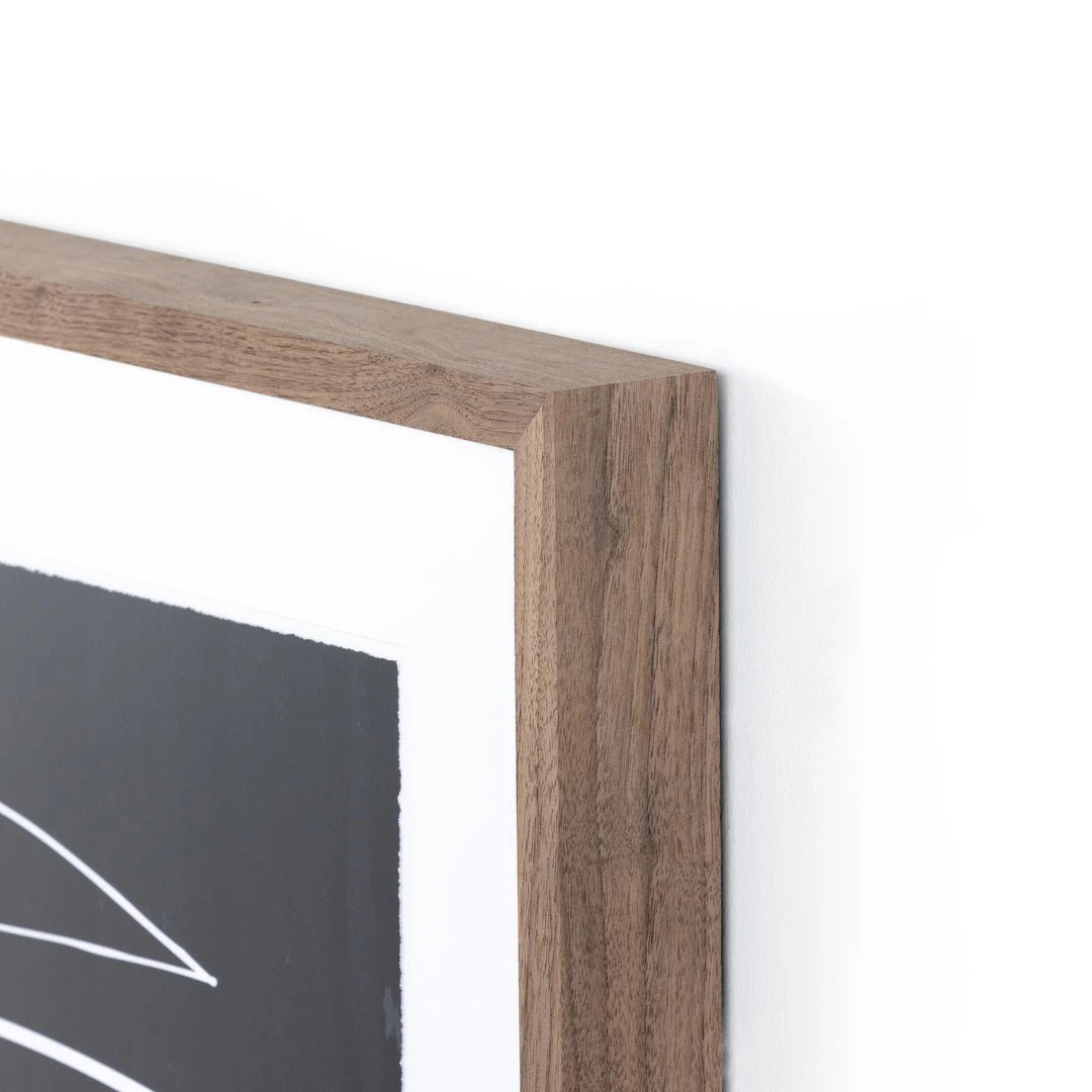 New Zealand-based artist Roseanne Kenny looks to the abstract and linear to shape her bold-but-minimalist pieces, starting with a pencil sketch then recreating each in digital form. Framed within rustic walnut. Handmade in Austin, Texas.