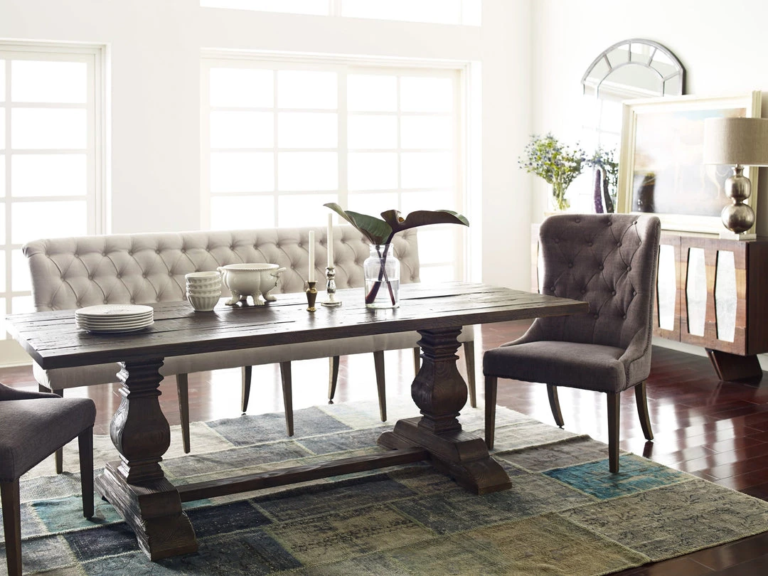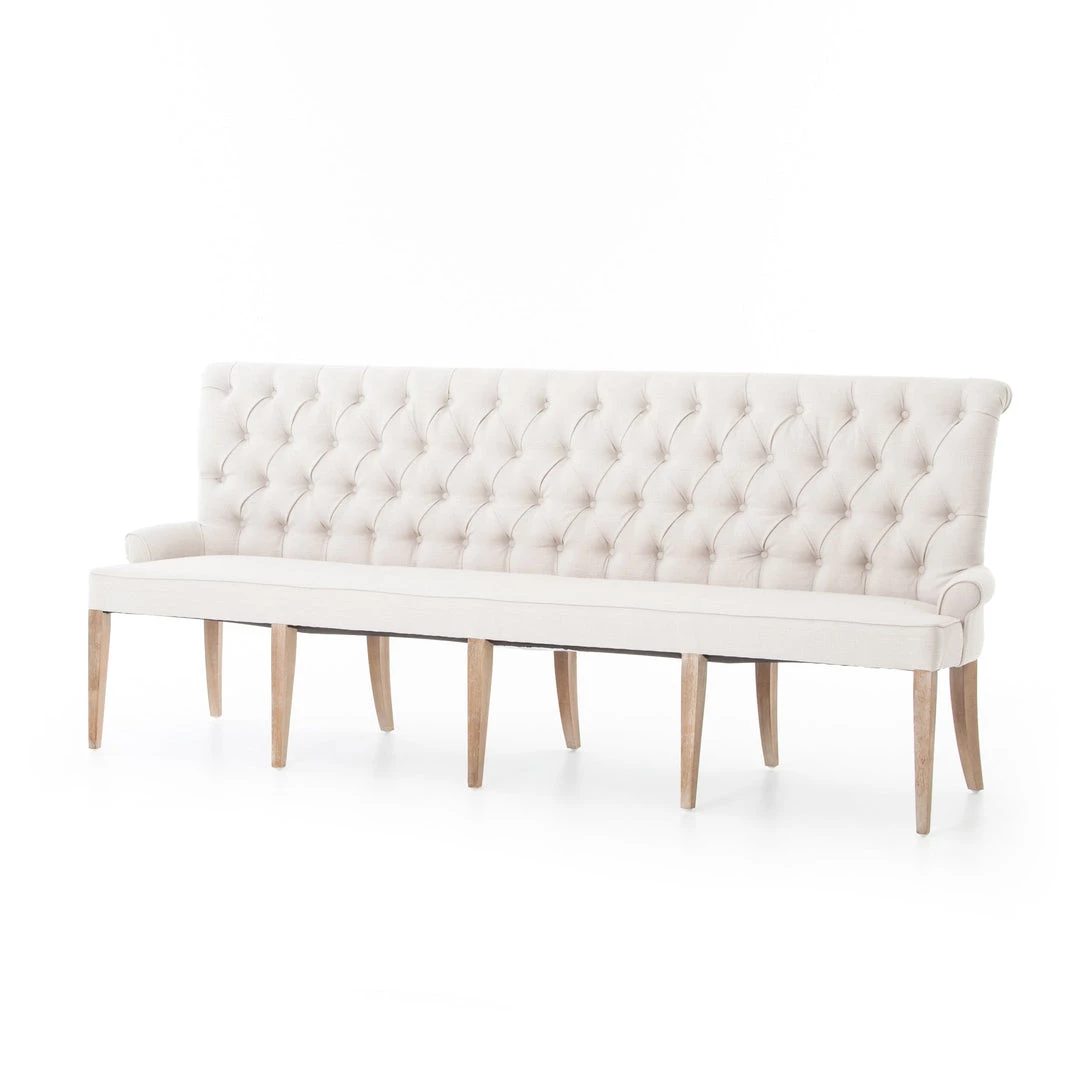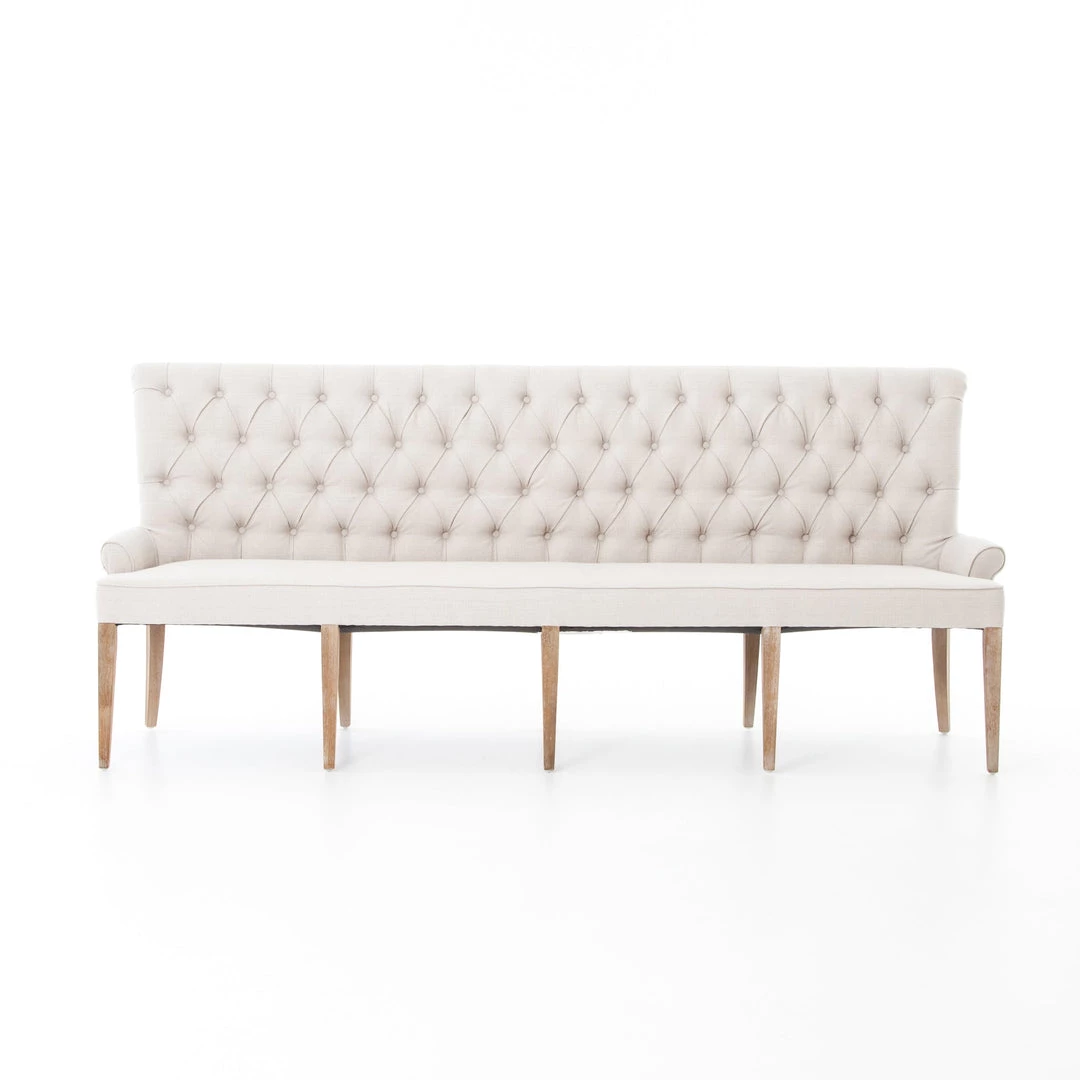 Traditionally present. Combining deep hand tufts with soft curves and splayed legs keep this banquette feeling contemporary in a variety of different settings.