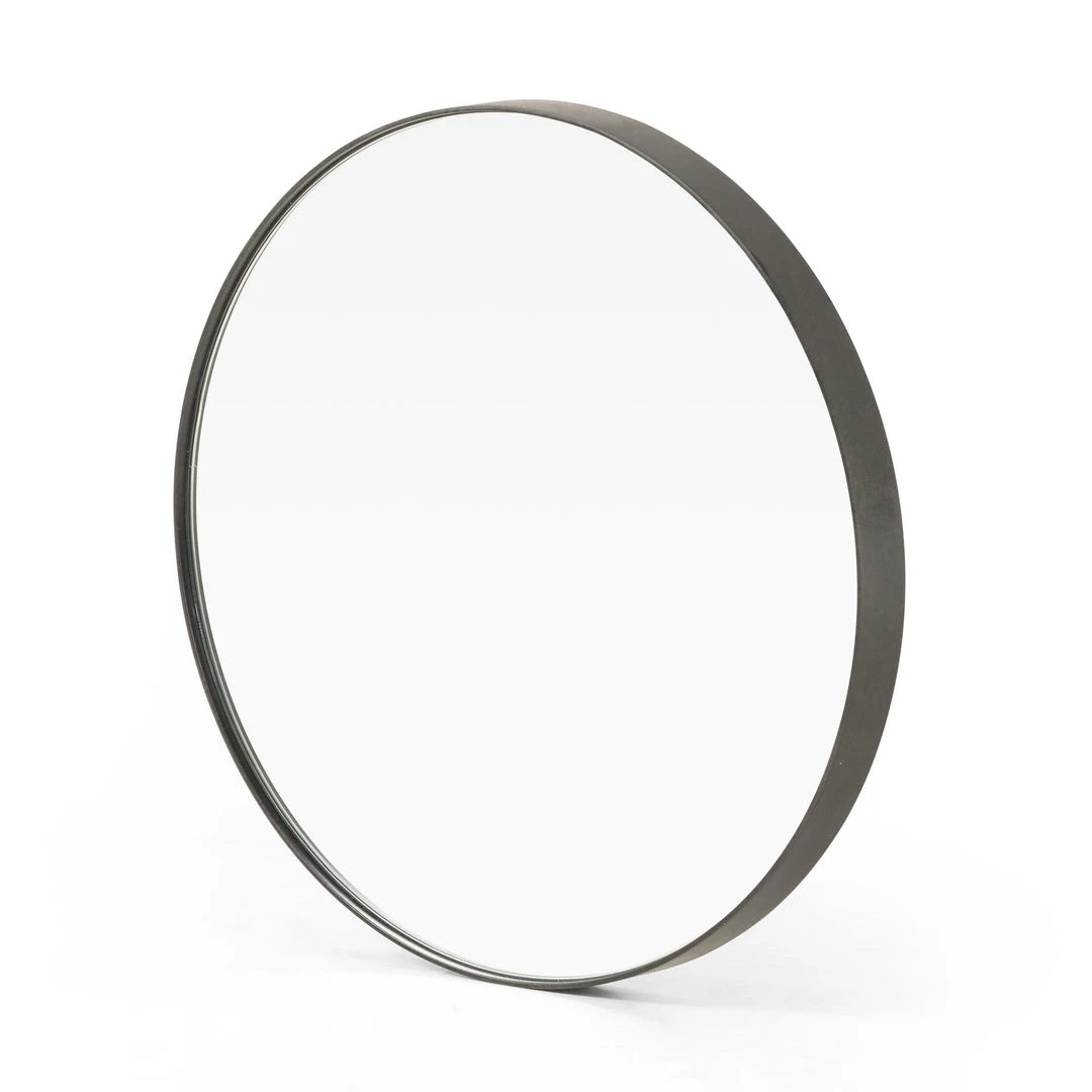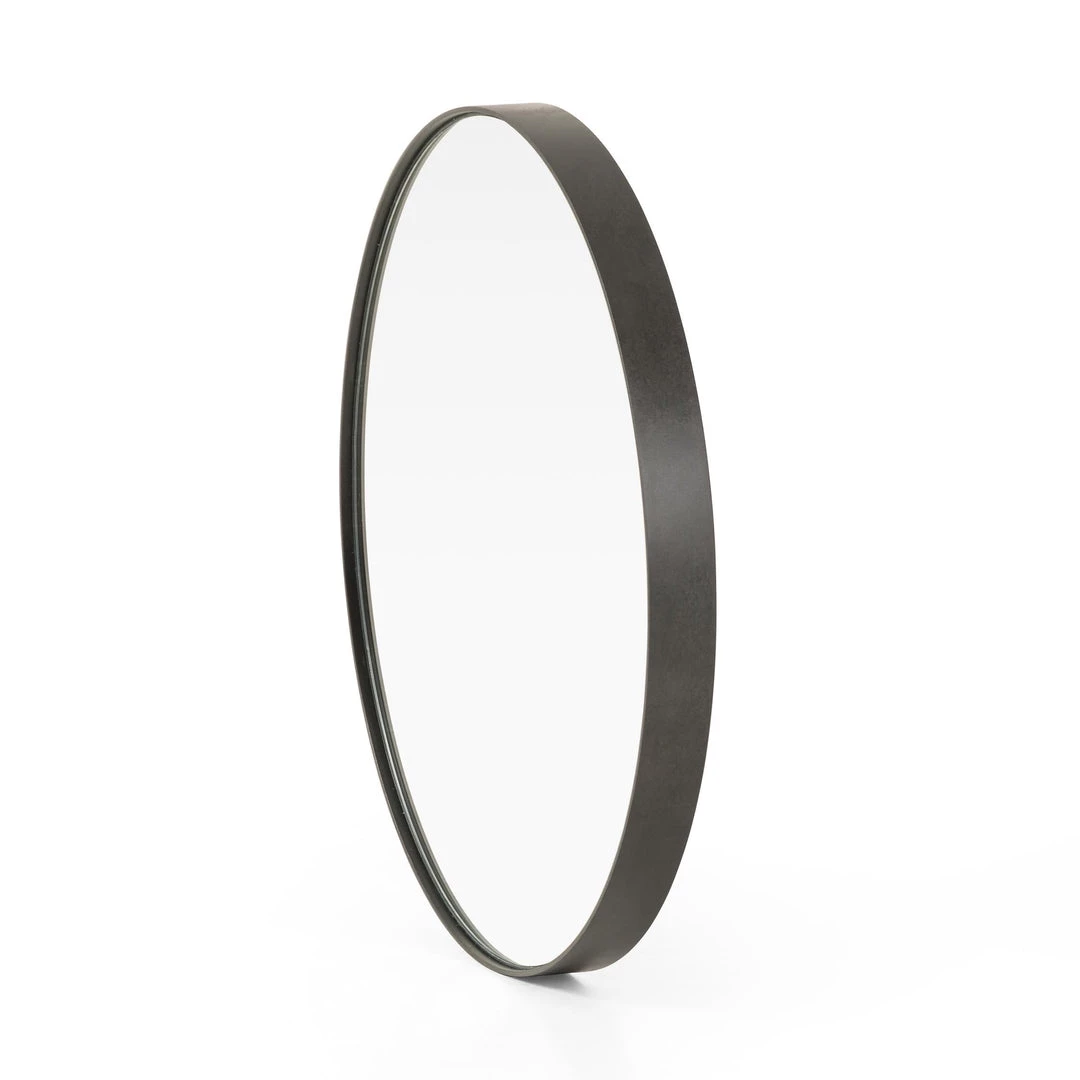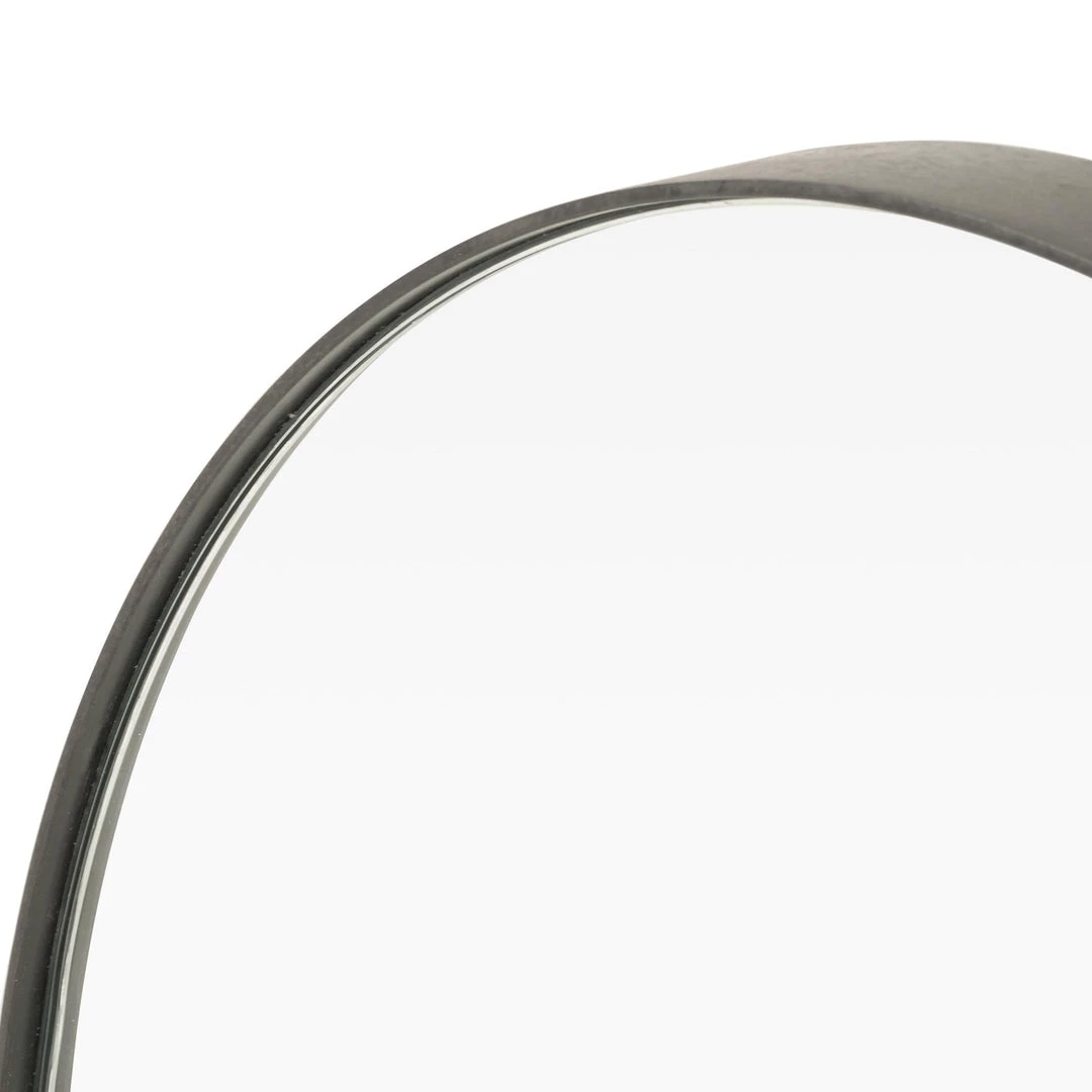 Rounded iron framing takes on a classic black tone to let clean, mirrored glass speak for itself.