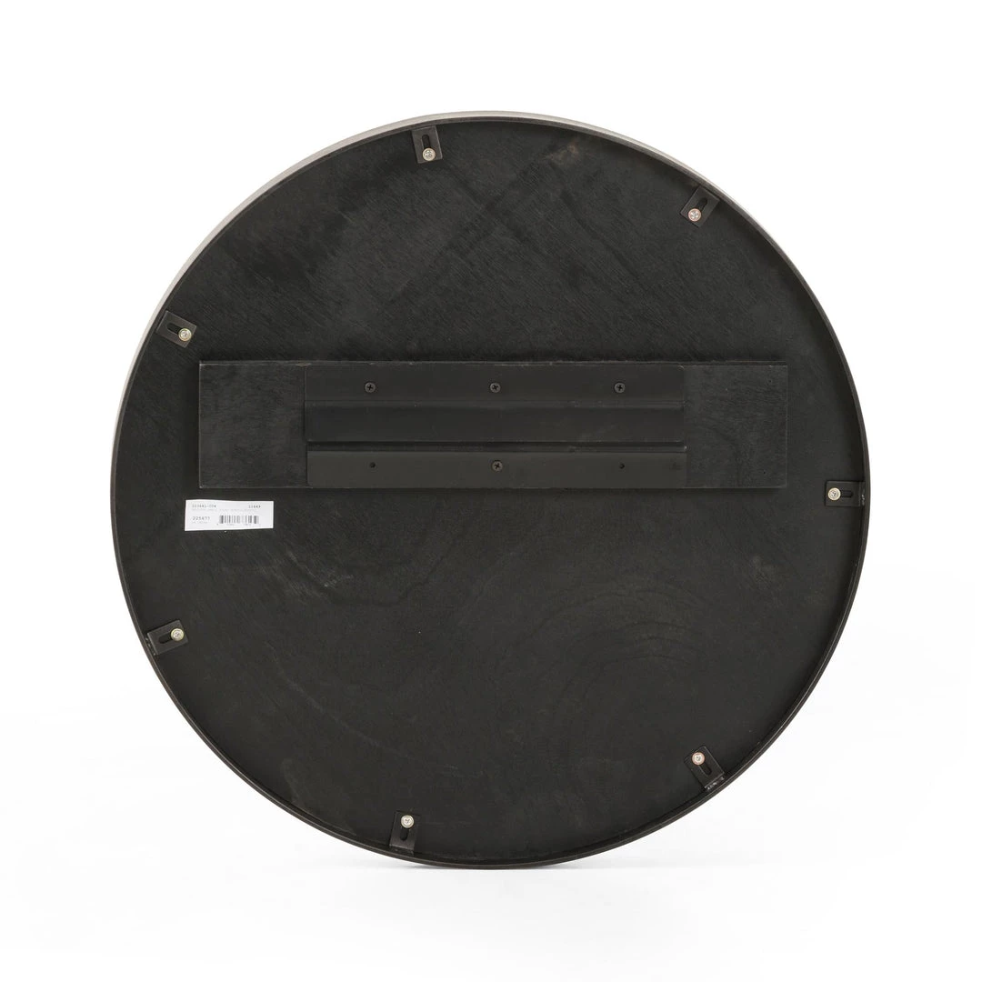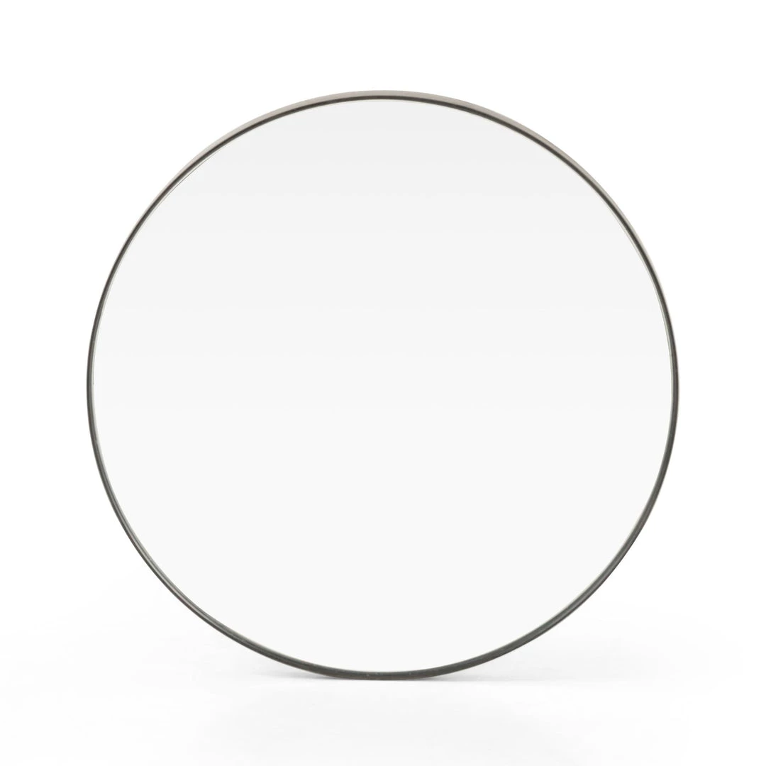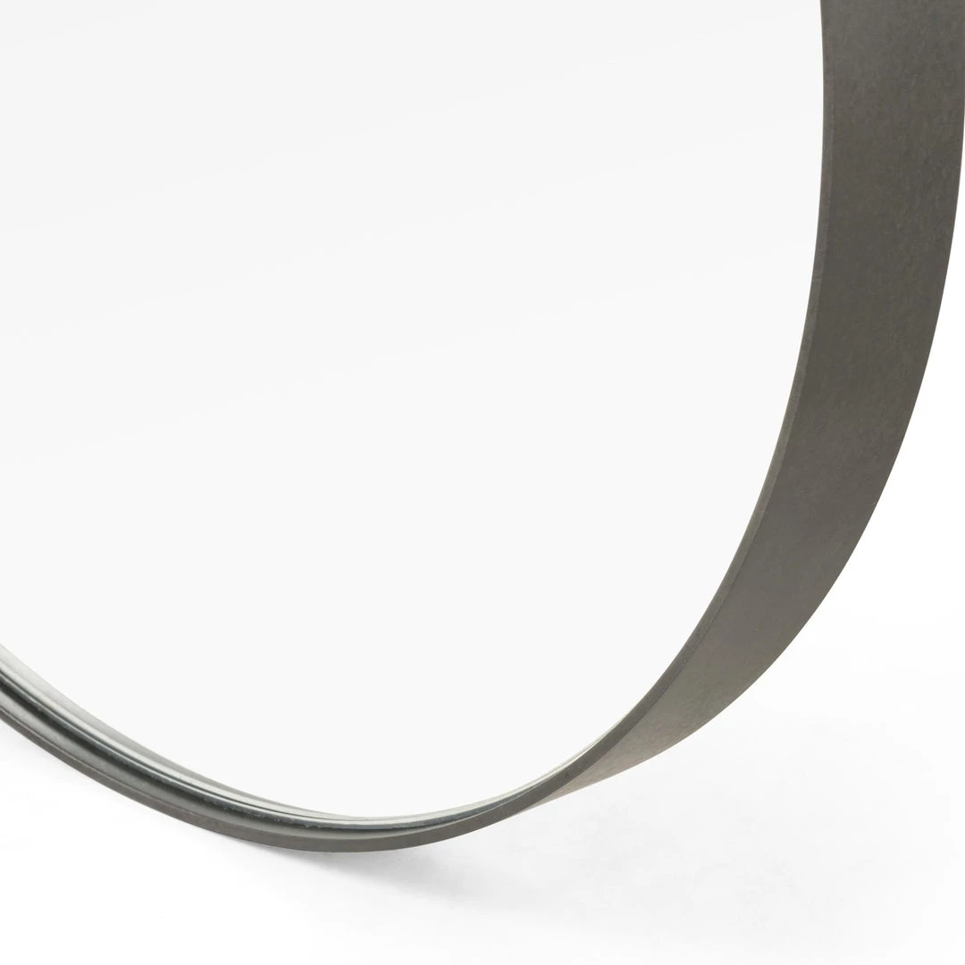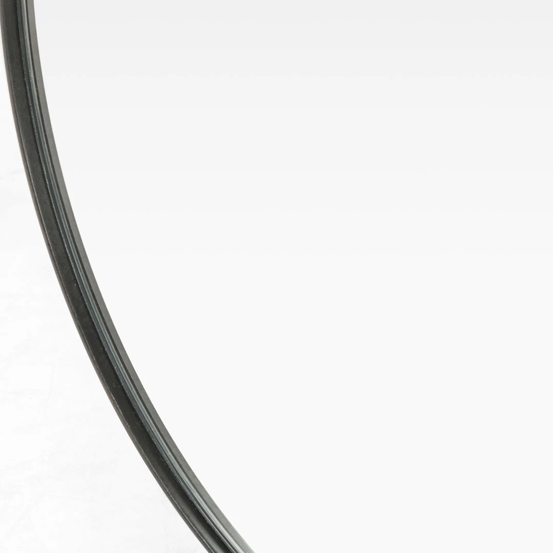 Rounded iron framing takes on a classic black tone to let clean, mirrored glass speak for itself.