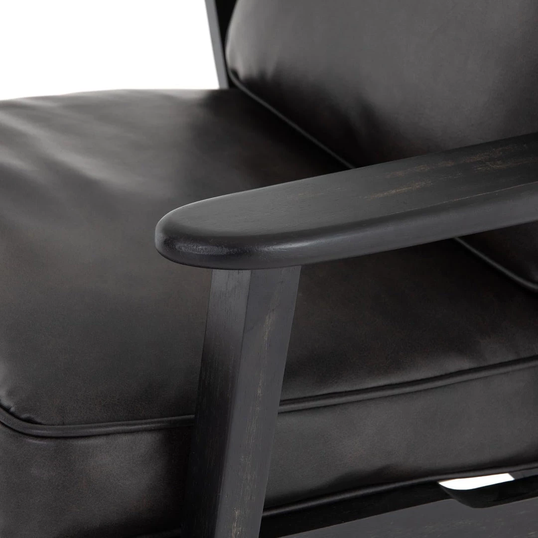 An elevated take on the classic Adirondack, with distressed black top-grain leather and wire-brushed black oak for effortless cool.