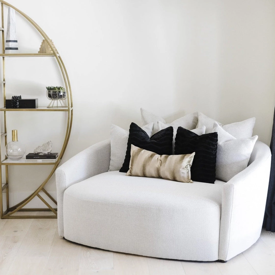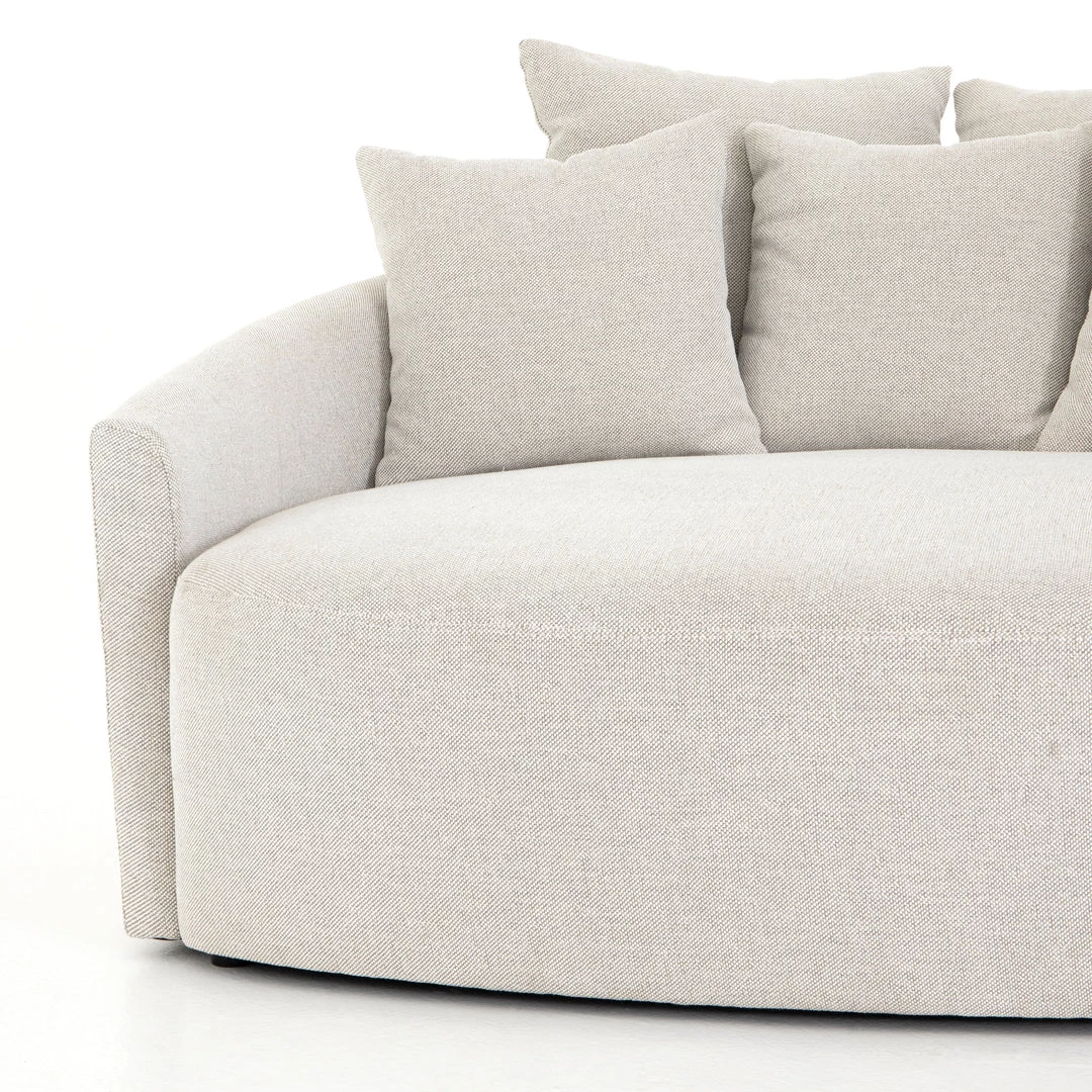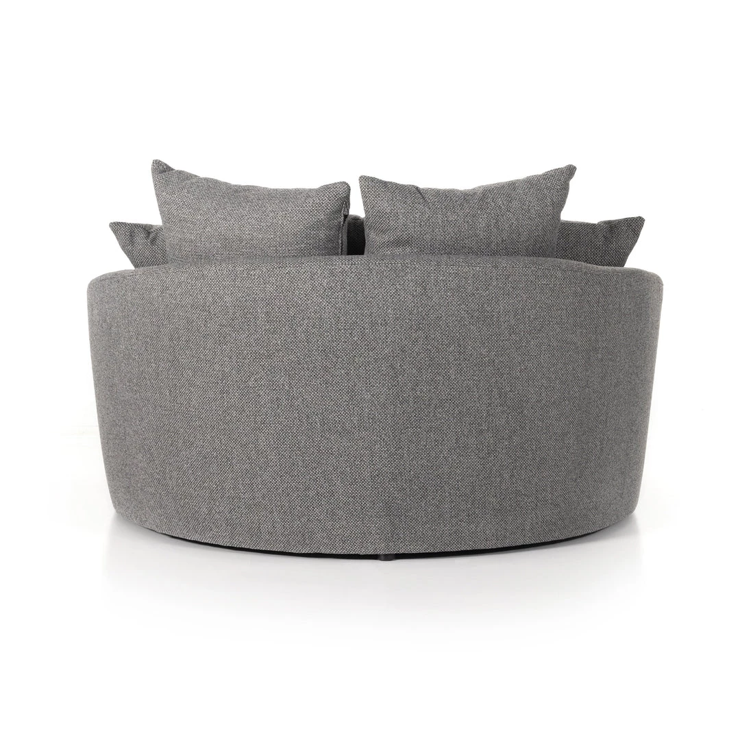 Roomy style. Charcoal upholstery covers a dramatic U shape for a spacious, sink-in sit. Throw pillows present an added touch of comfort to this sensibly styled media lounger, perfect for movie nights.