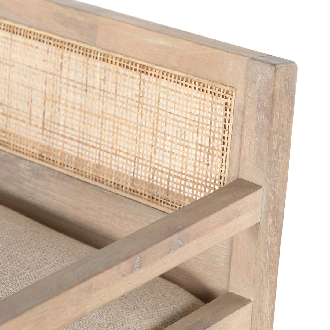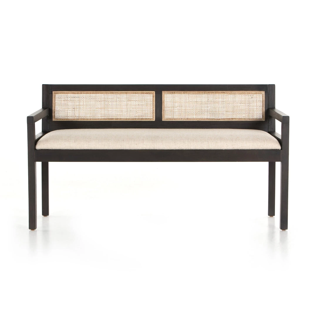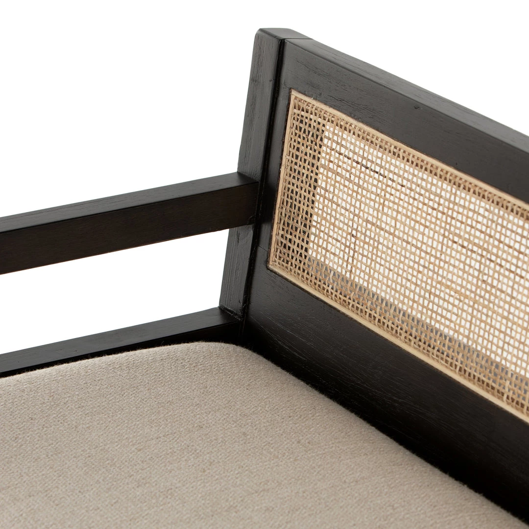 Mid century-spirited while beautifully on trend. Black-washed mango framing features basket-woven cane inlays for fresh texture, while Four Hands-exclusive performance fabric brings modern sensibility to the entryway, living area, bedroom, and beyond.