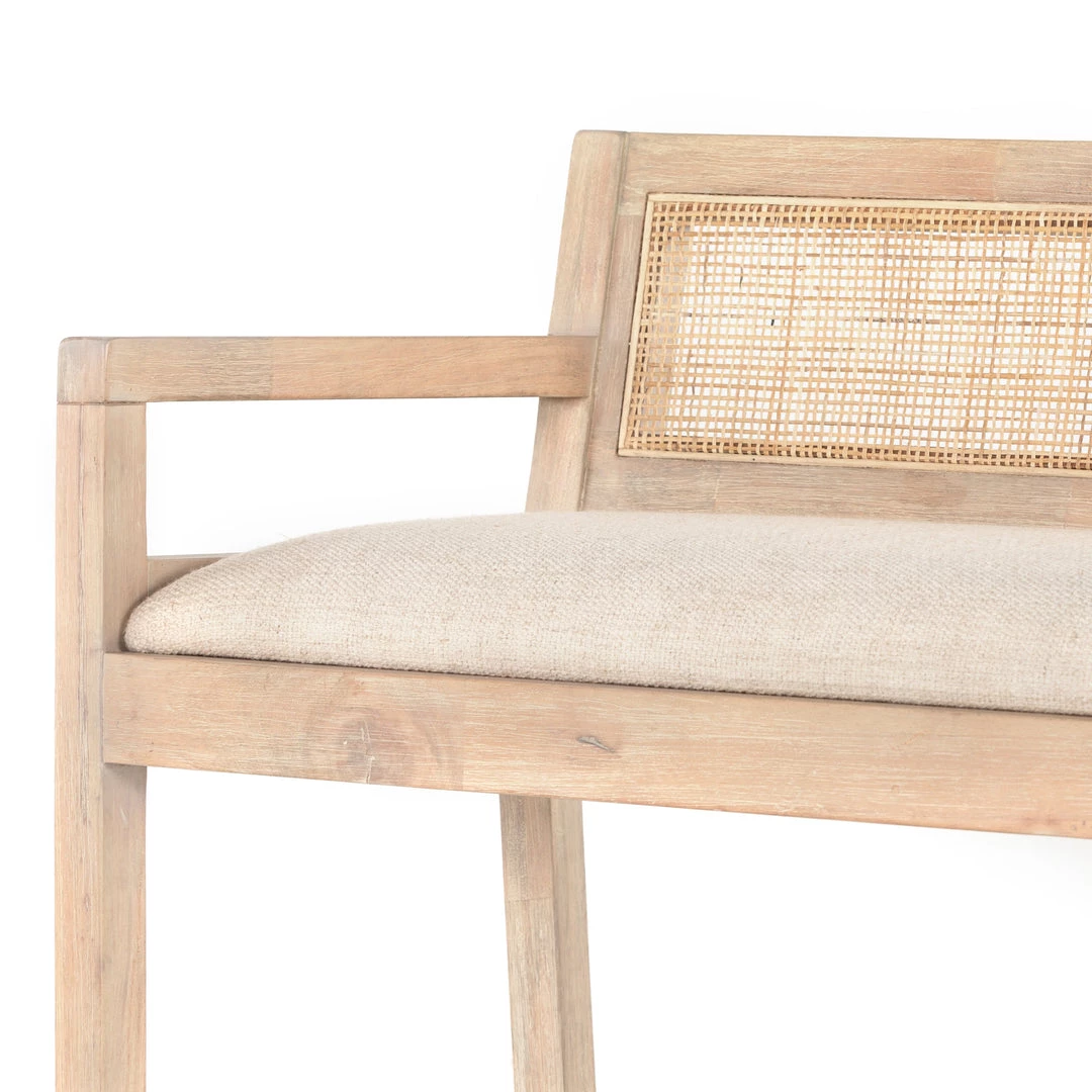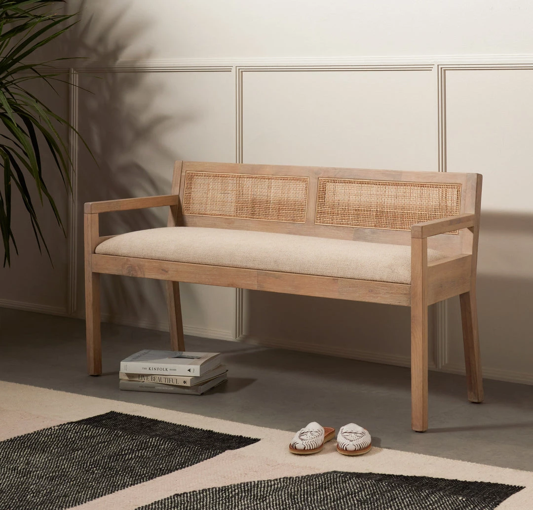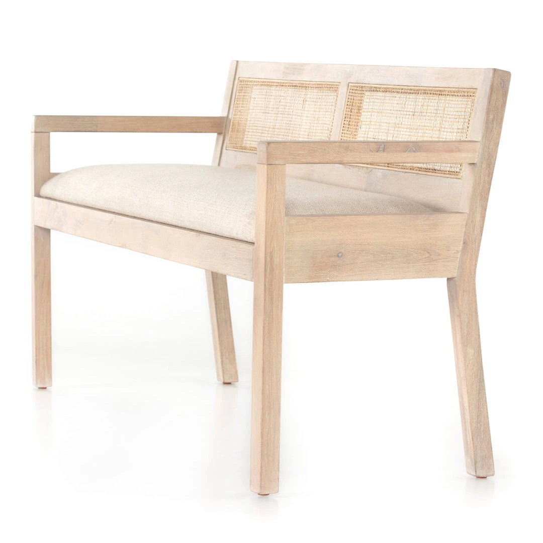 Mid century-spirited while beautifully on trend. Black-washed mango framing features basket-woven cane inlays for fresh texture, while Four Hands-exclusive performance fabric brings modern sensibility to the entryway, living area, bedroom, and beyond.