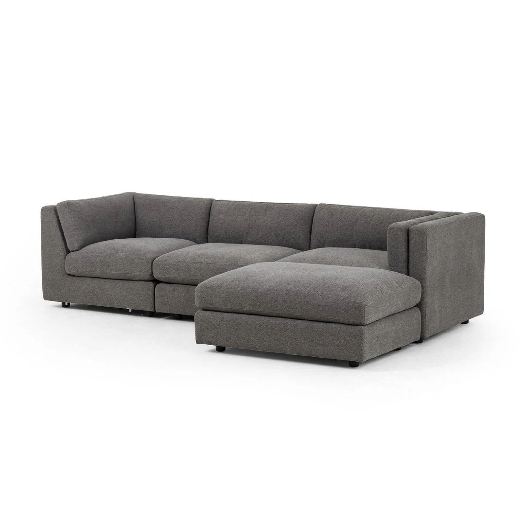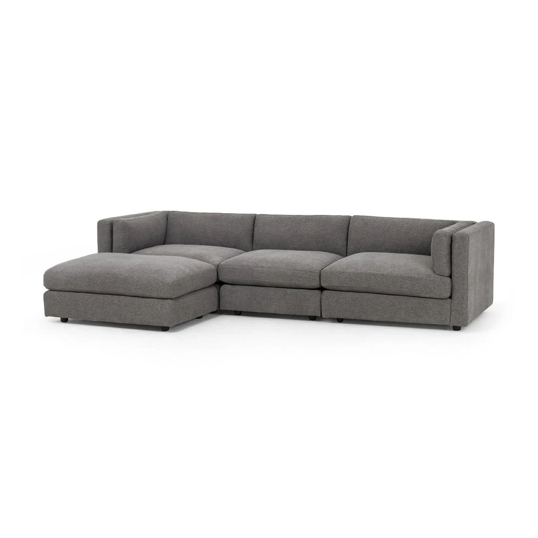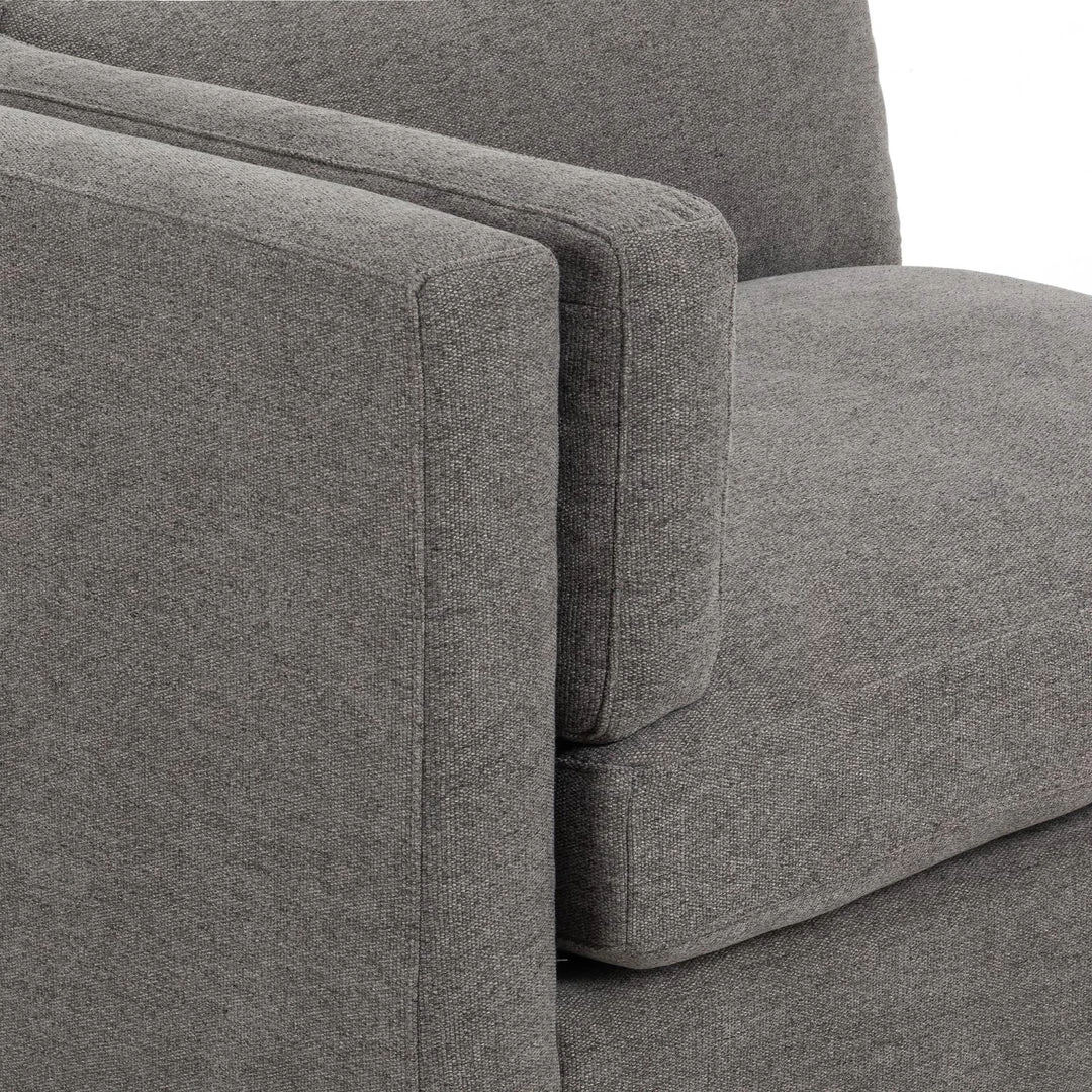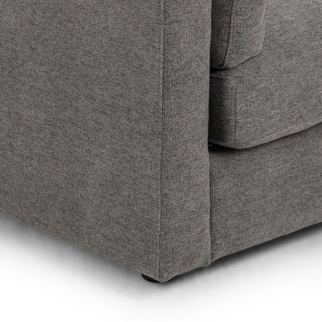 Casual comfort, made for modern lounging. A beautifully versatile ash-colored covering lends a textural touch and invitingly neutral tone to a three-piece sectional with accompanying ottoman seating, while an angular tuxedo shape spurs a clean look with movement.