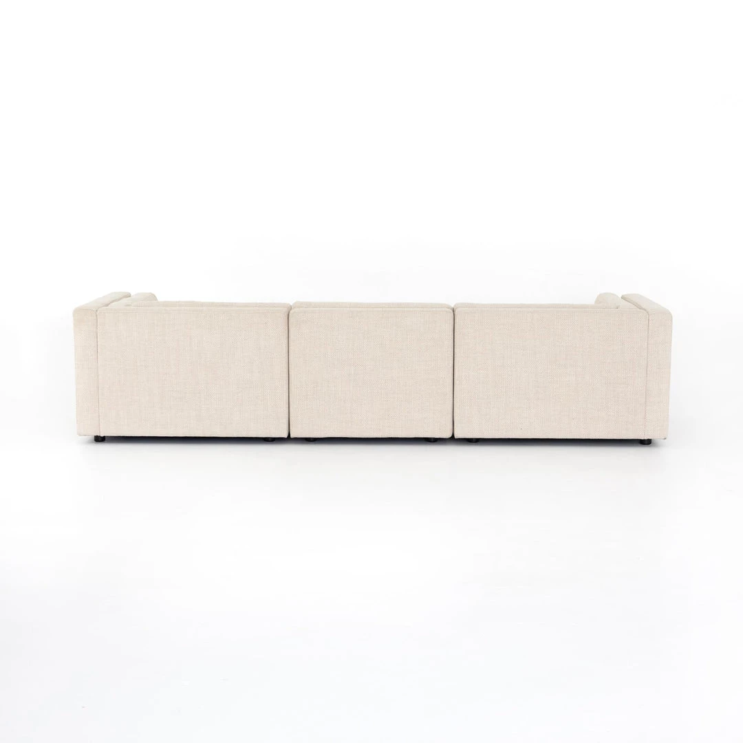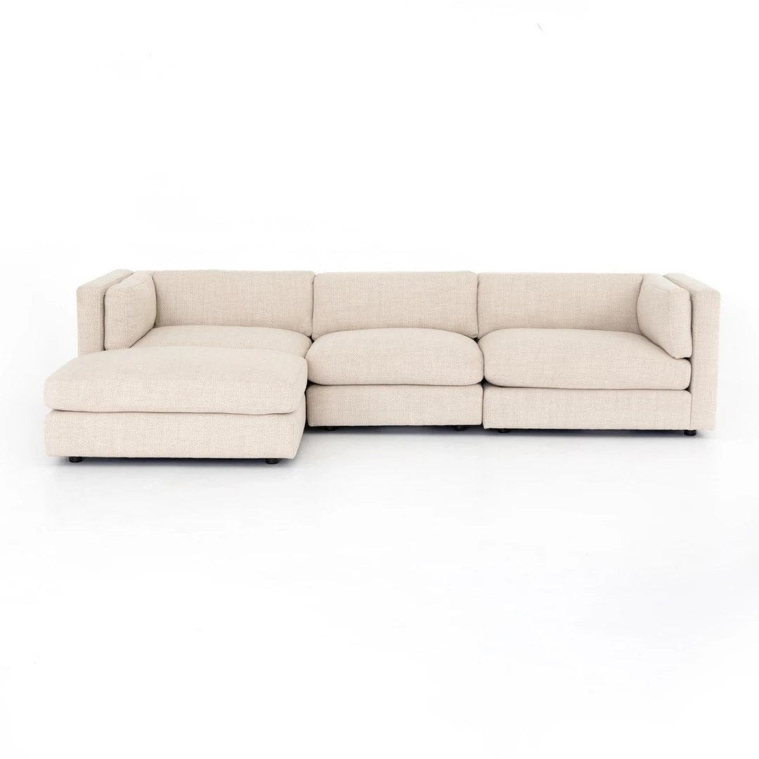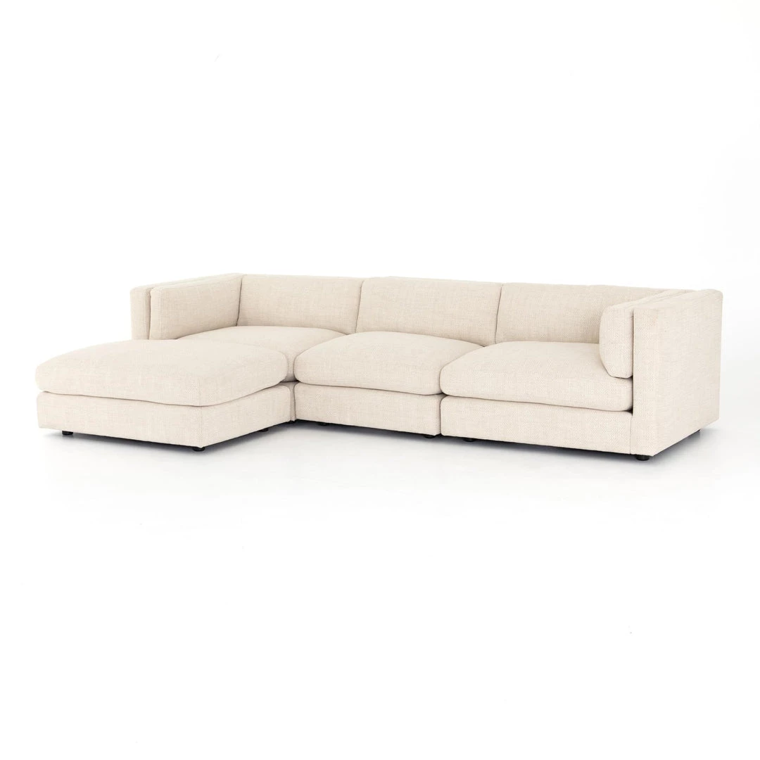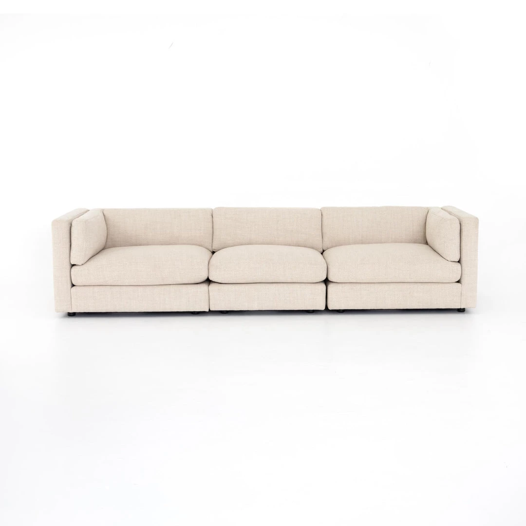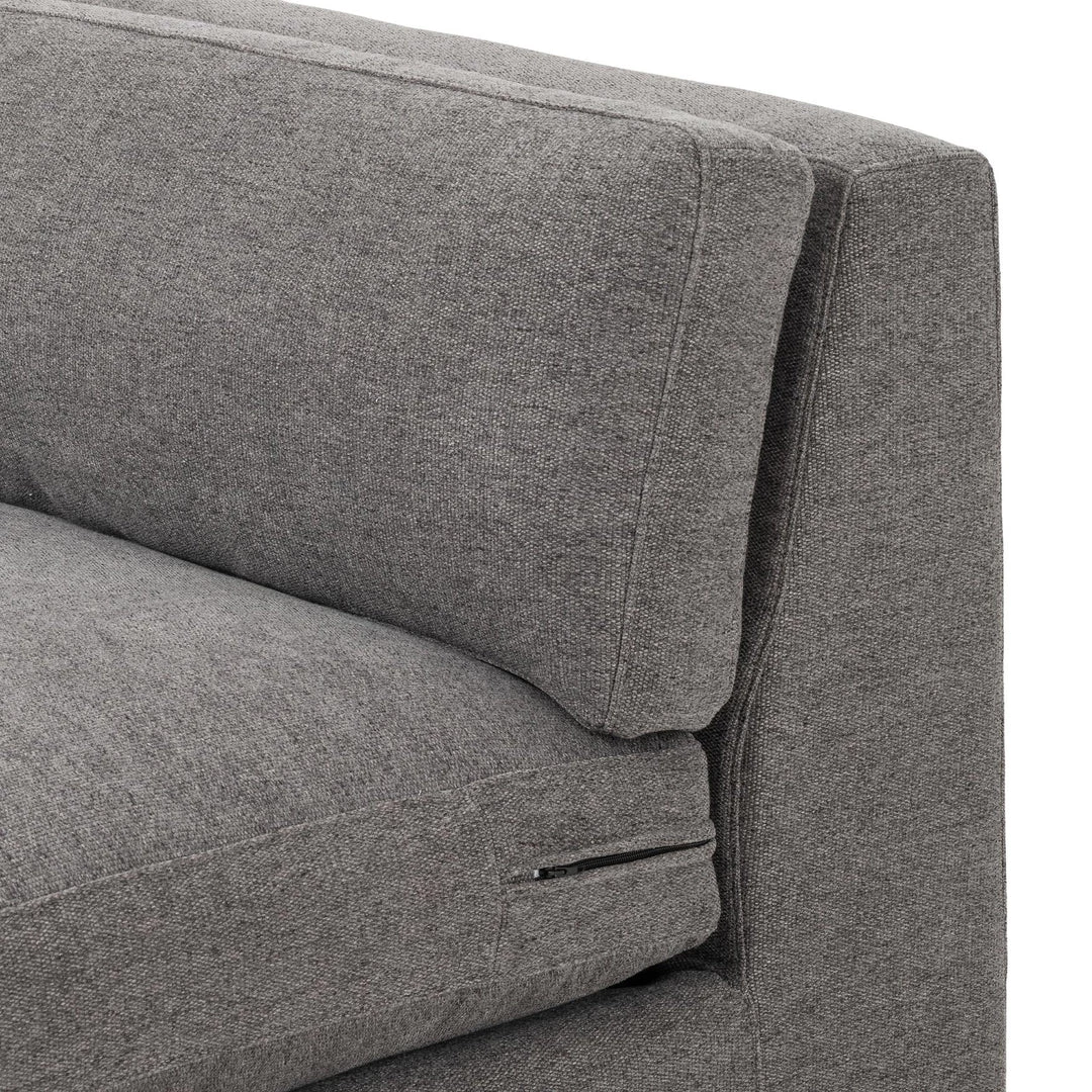 Casual comfort, made for modern lounging. A beautifully versatile ash-colored covering lends a textural touch and invitingly neutral tone to a three-piece sectional with accompanying ottoman seating, while an angular tuxedo shape spurs a clean look with movement.