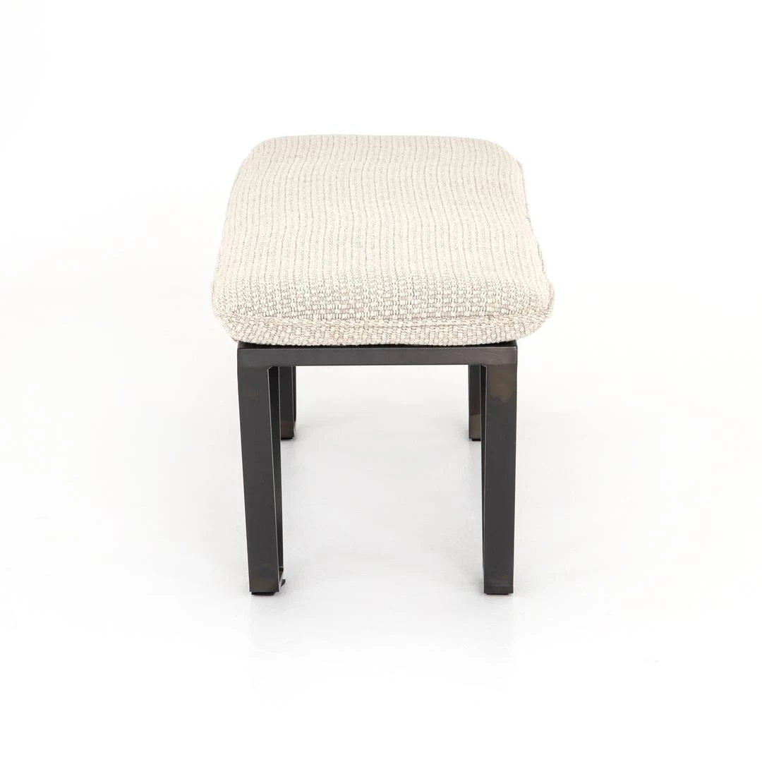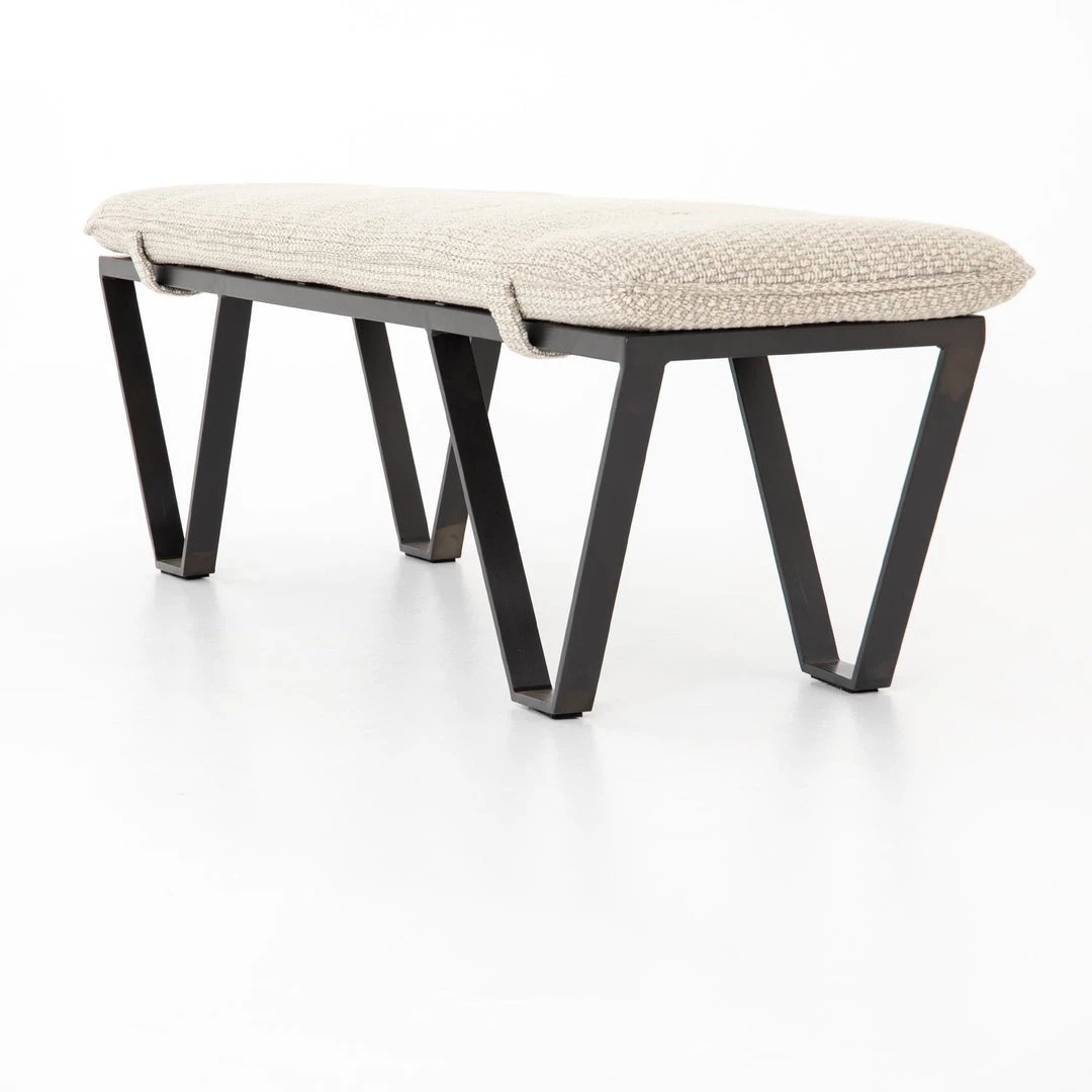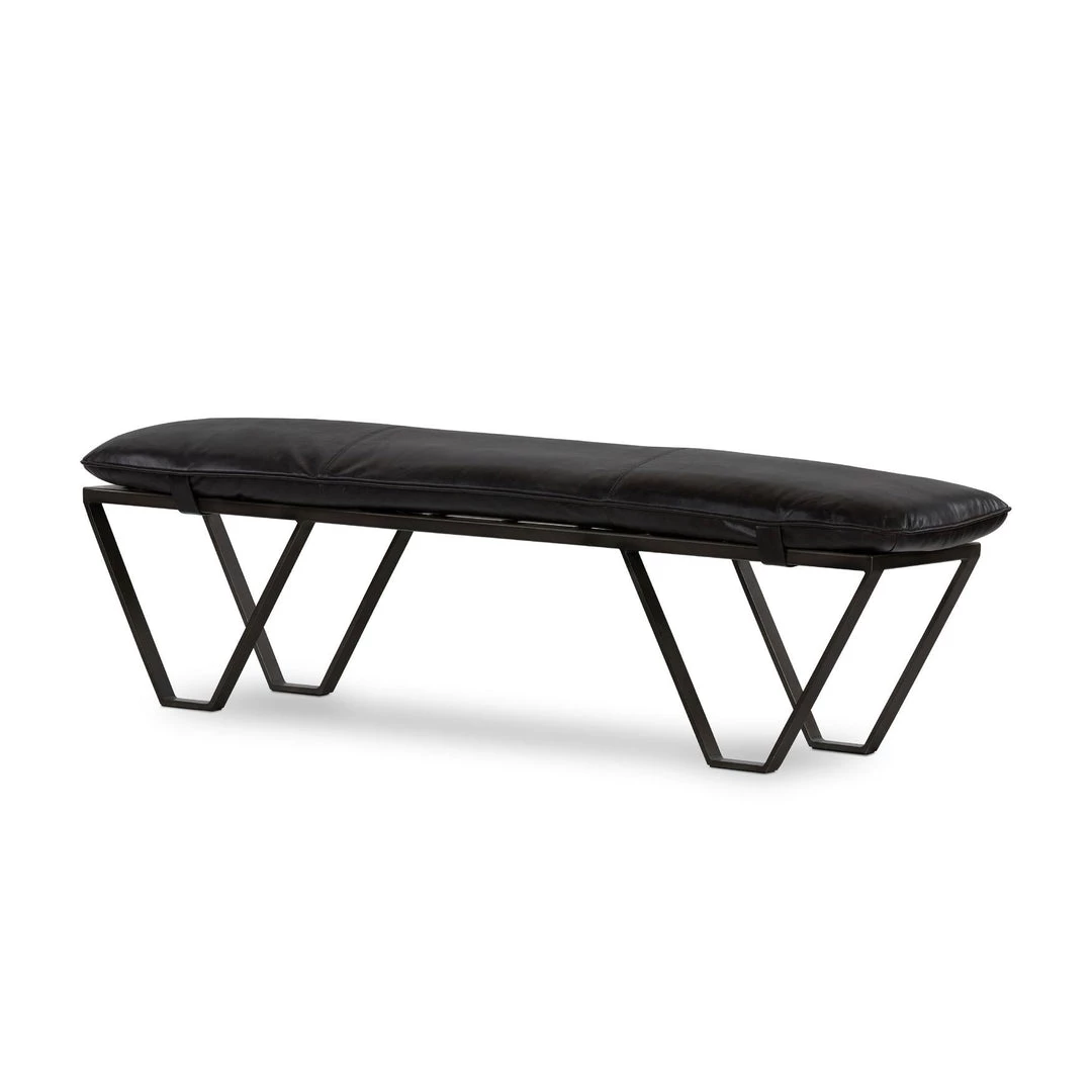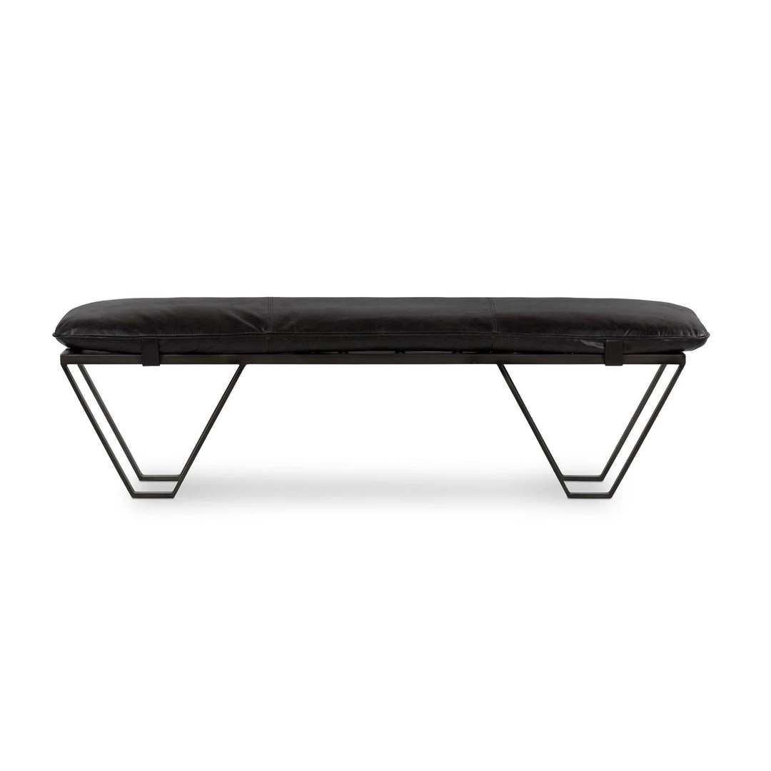 The time-honored bench, reinvented. With fresh, clever shaping, angular gunmetal-finished iron supports spare-yet-comfortable top-grain leather cushioning in a rich cognac.