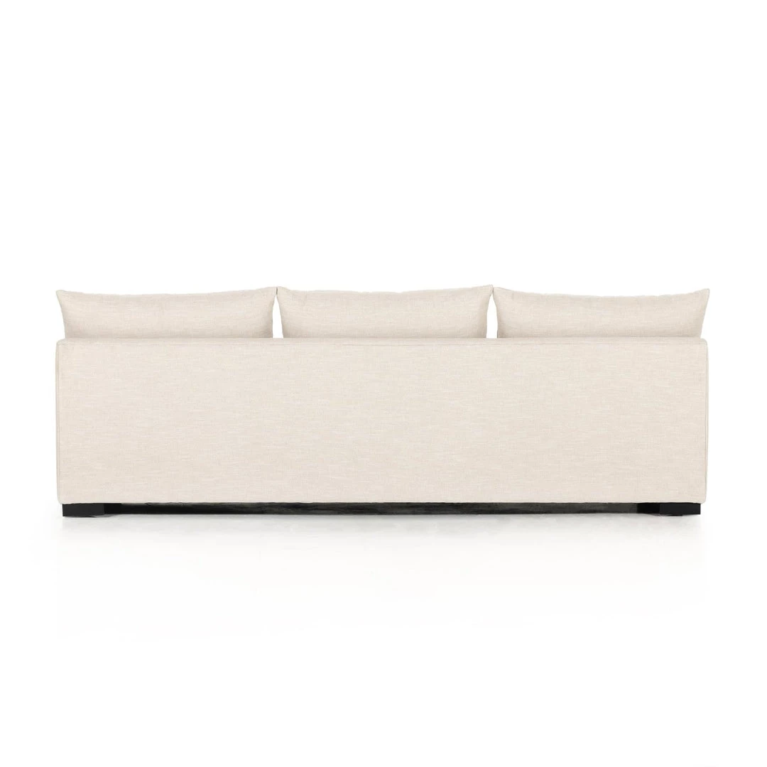 Welcome to the modern lounging essential. An armless three-seater sofa is upholstered in high-performance fabric. Armless sofa to matching sectional.