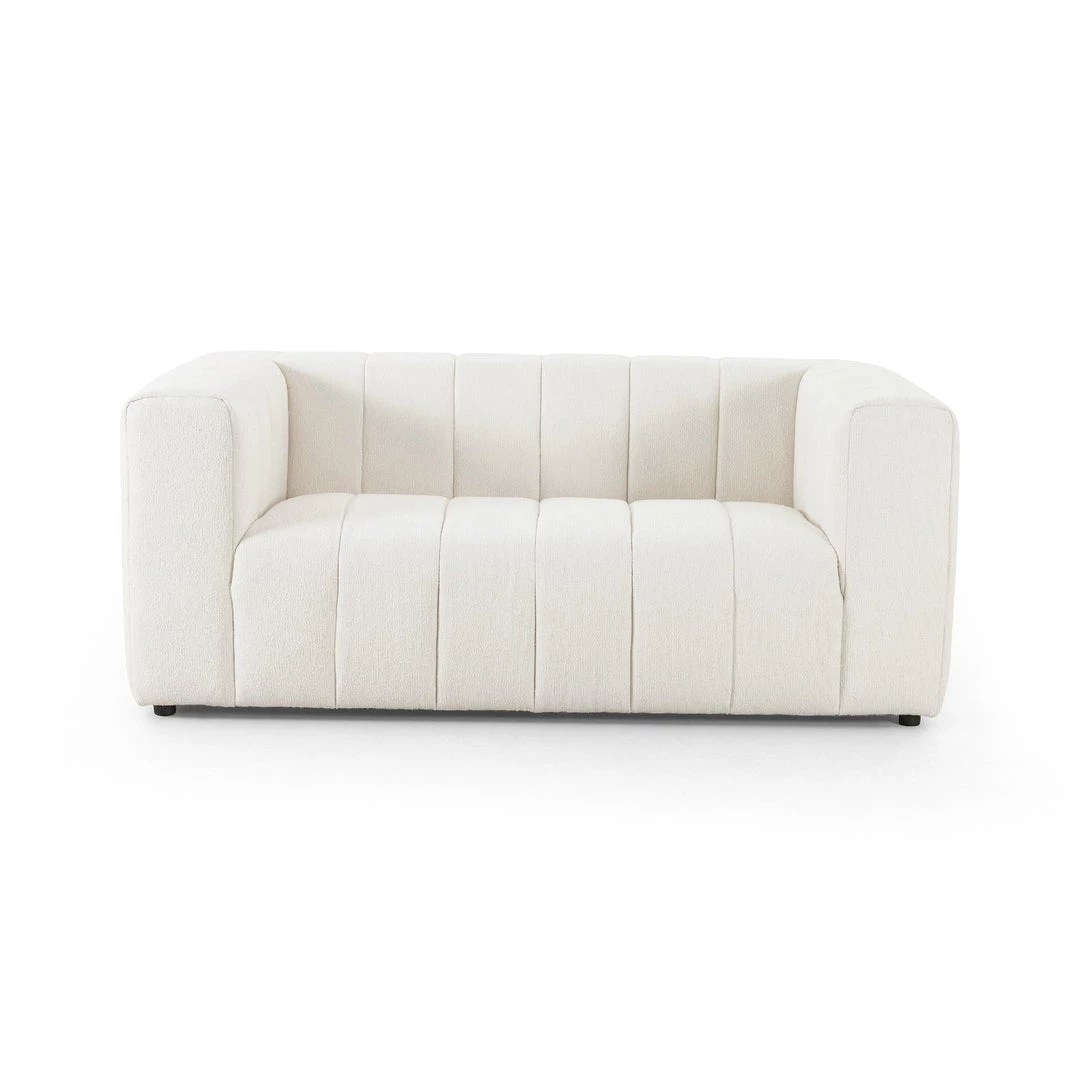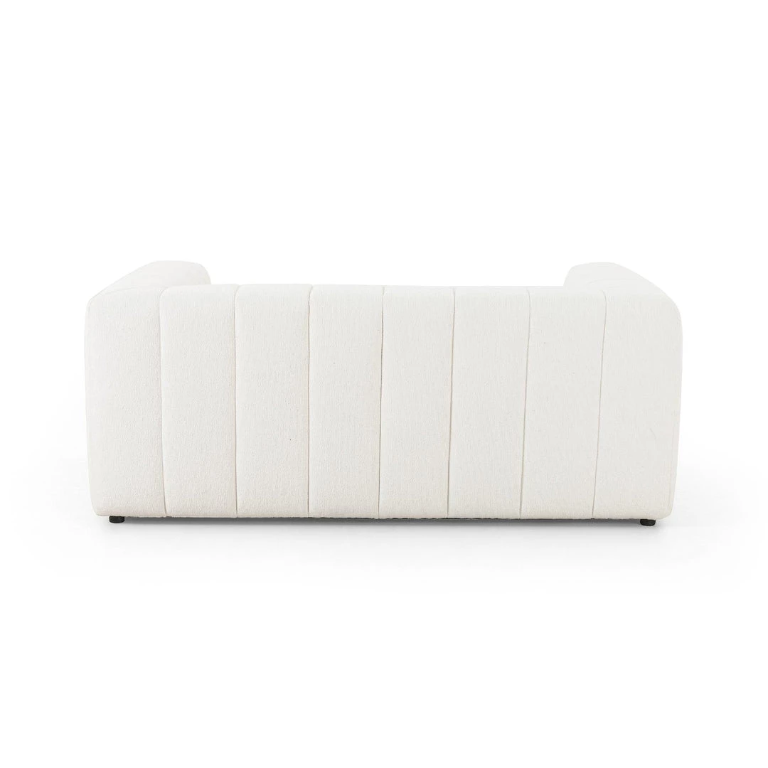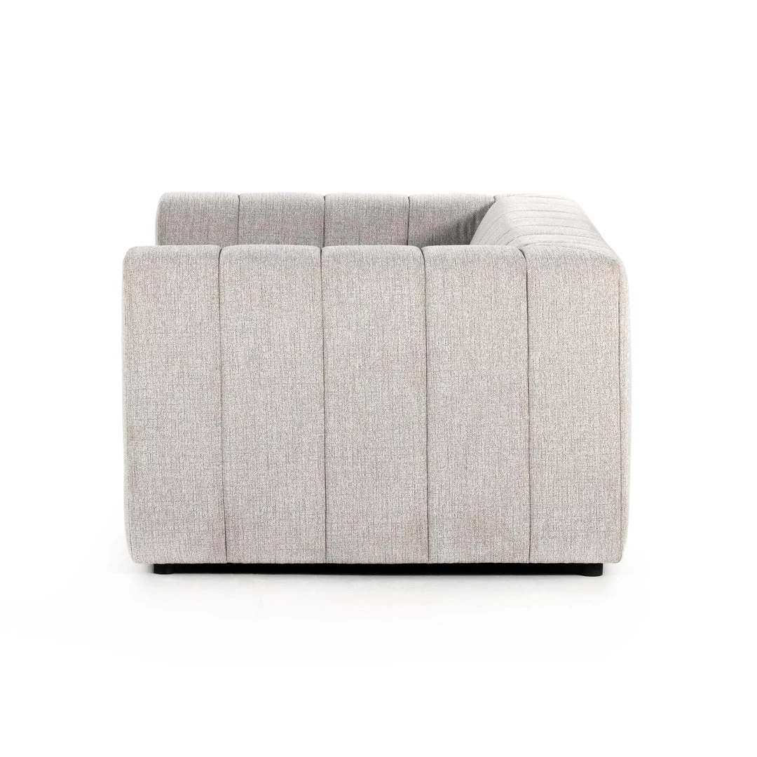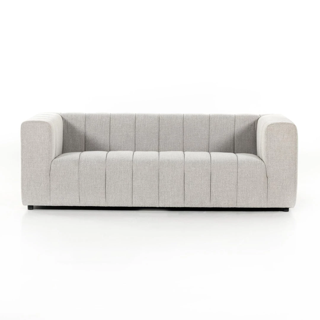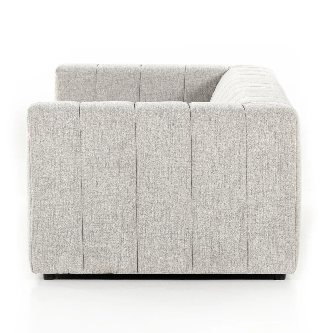 Wide, vertical channeling and low styling speak to the modish Italian influence of this sofa. Upholstered in a pristinely tailored high-performance fabric that feels like a blend of linen and boucle.