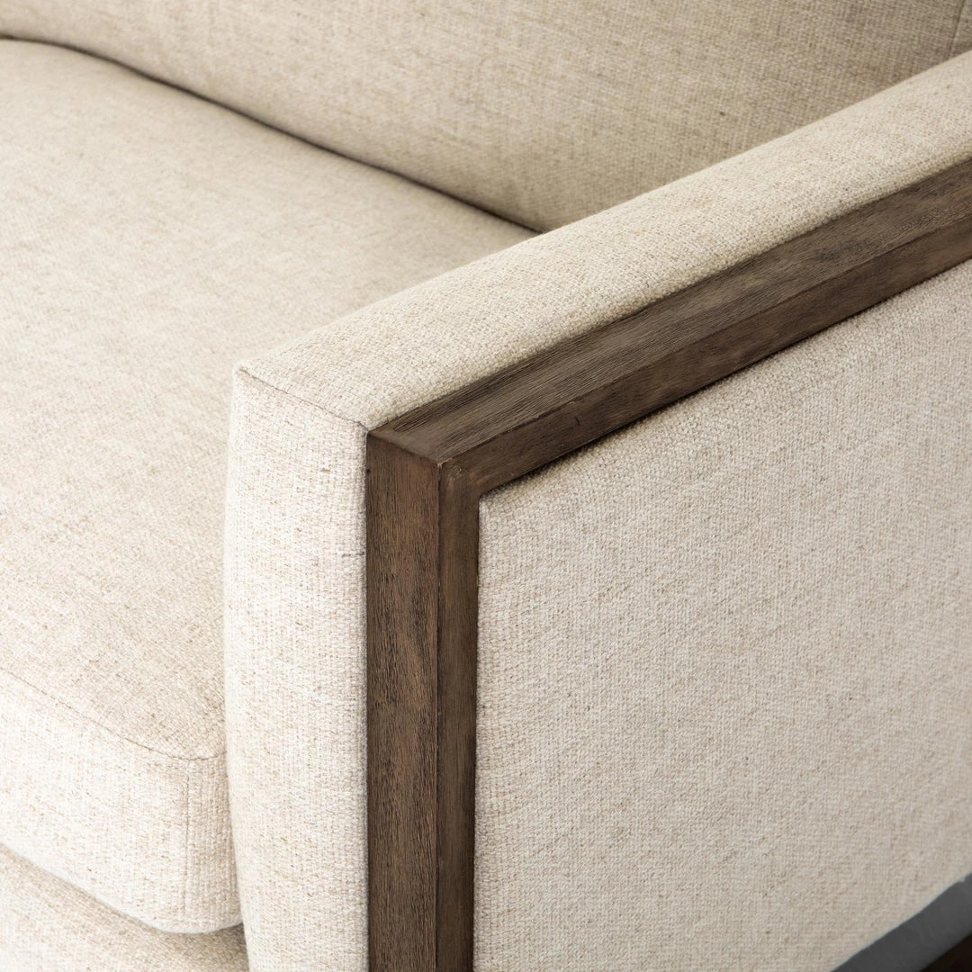 Crisp, clean comfort. Cream-colored upholstery of performance grade cradles within an exposed parawood frame, for detail-driven contrast.