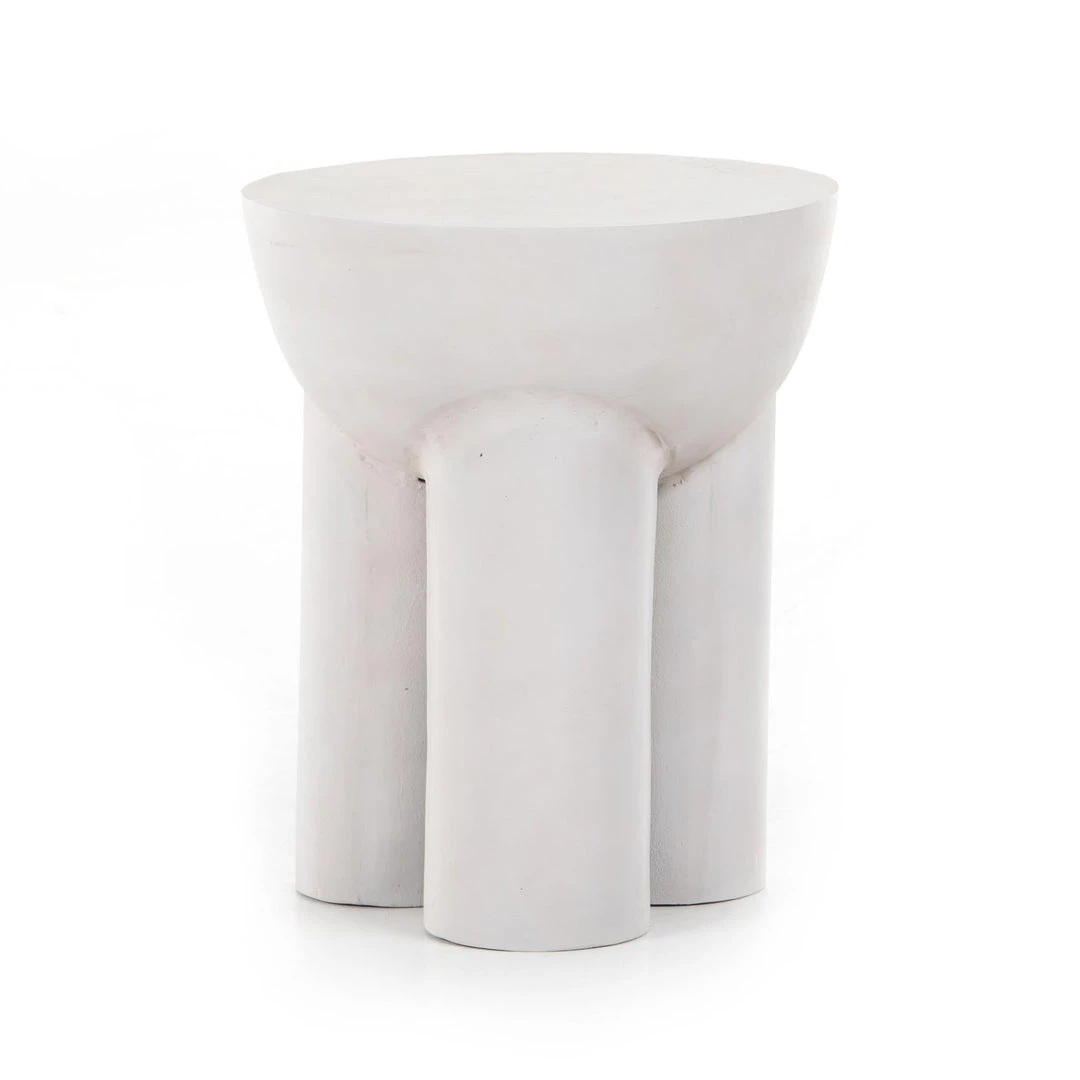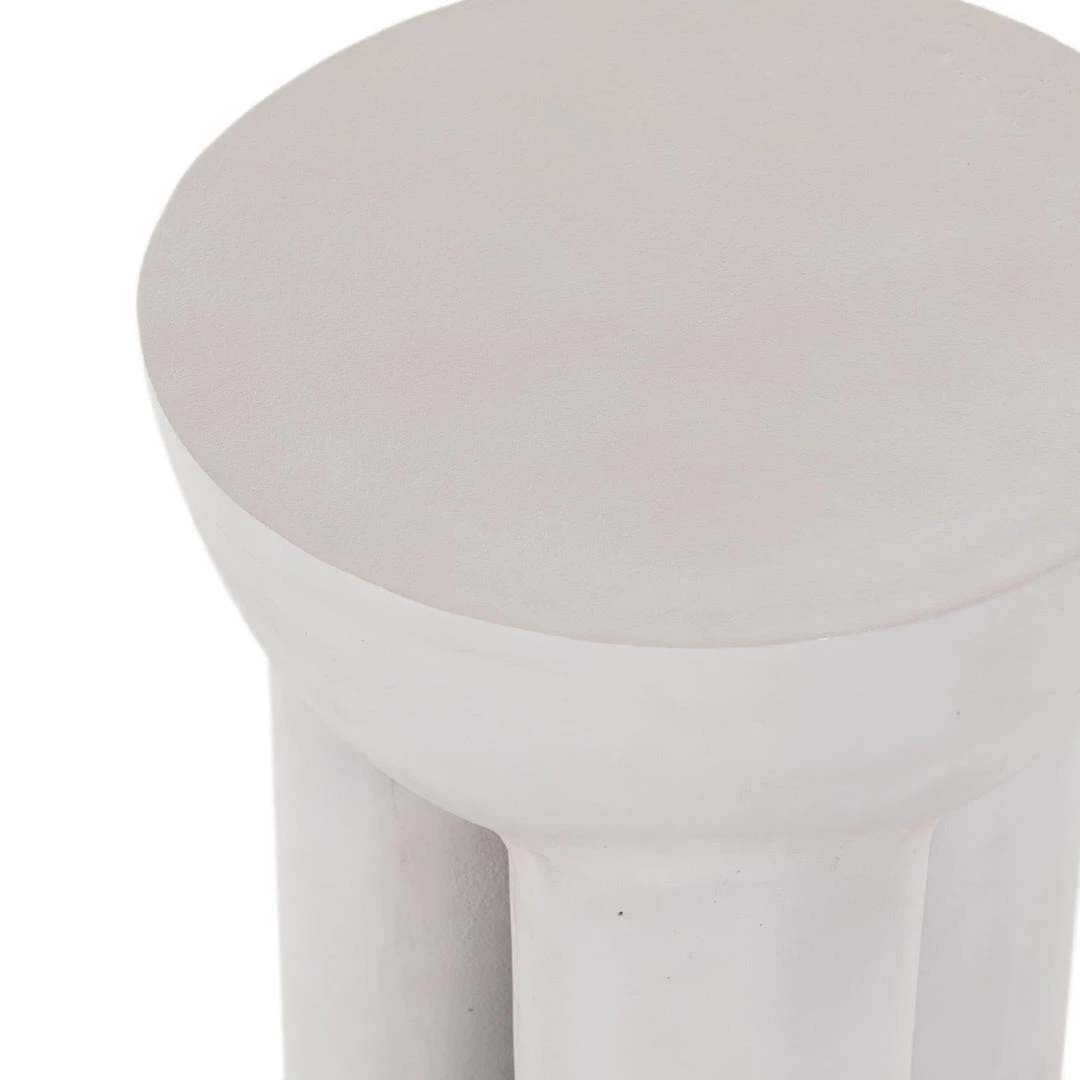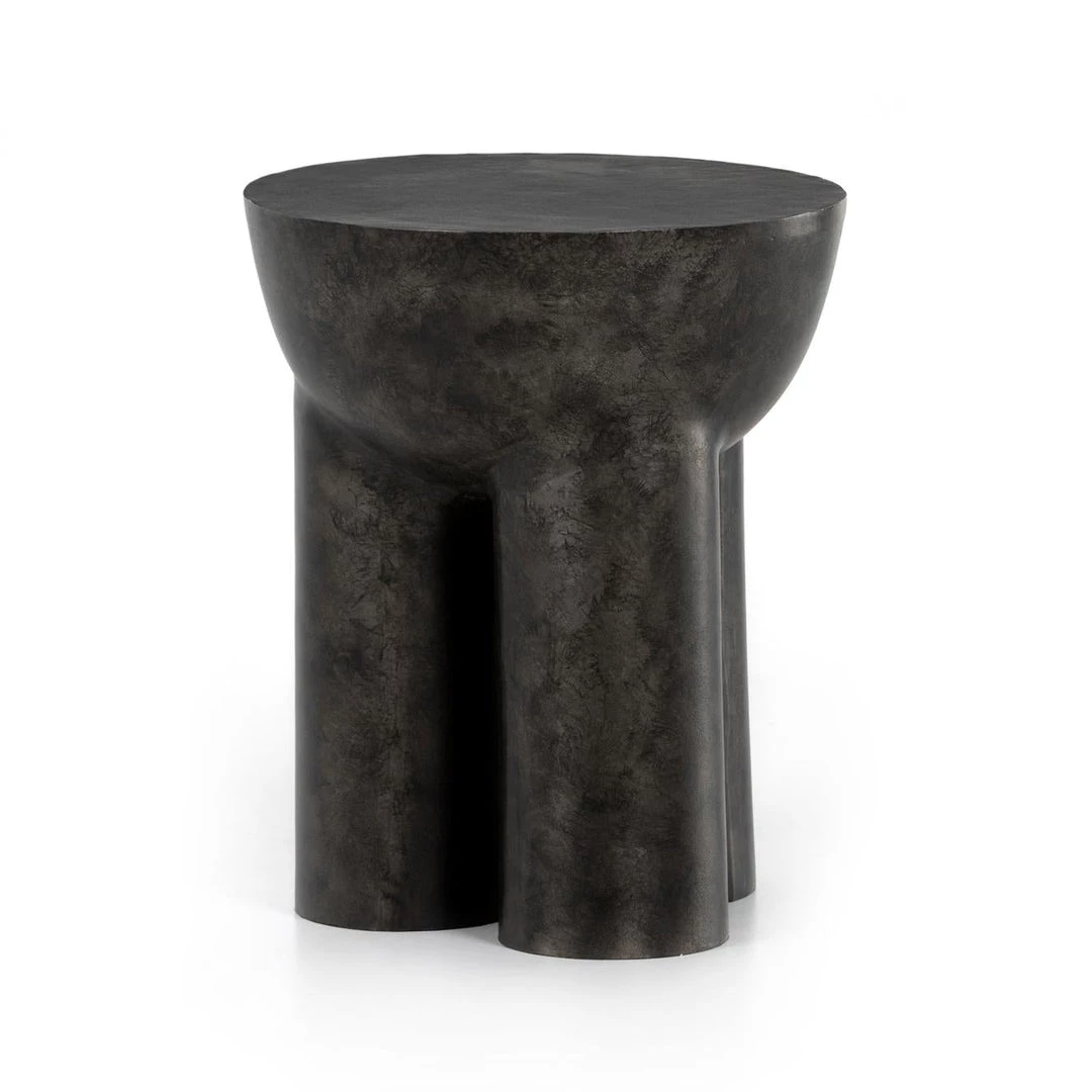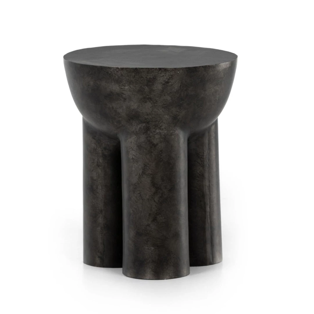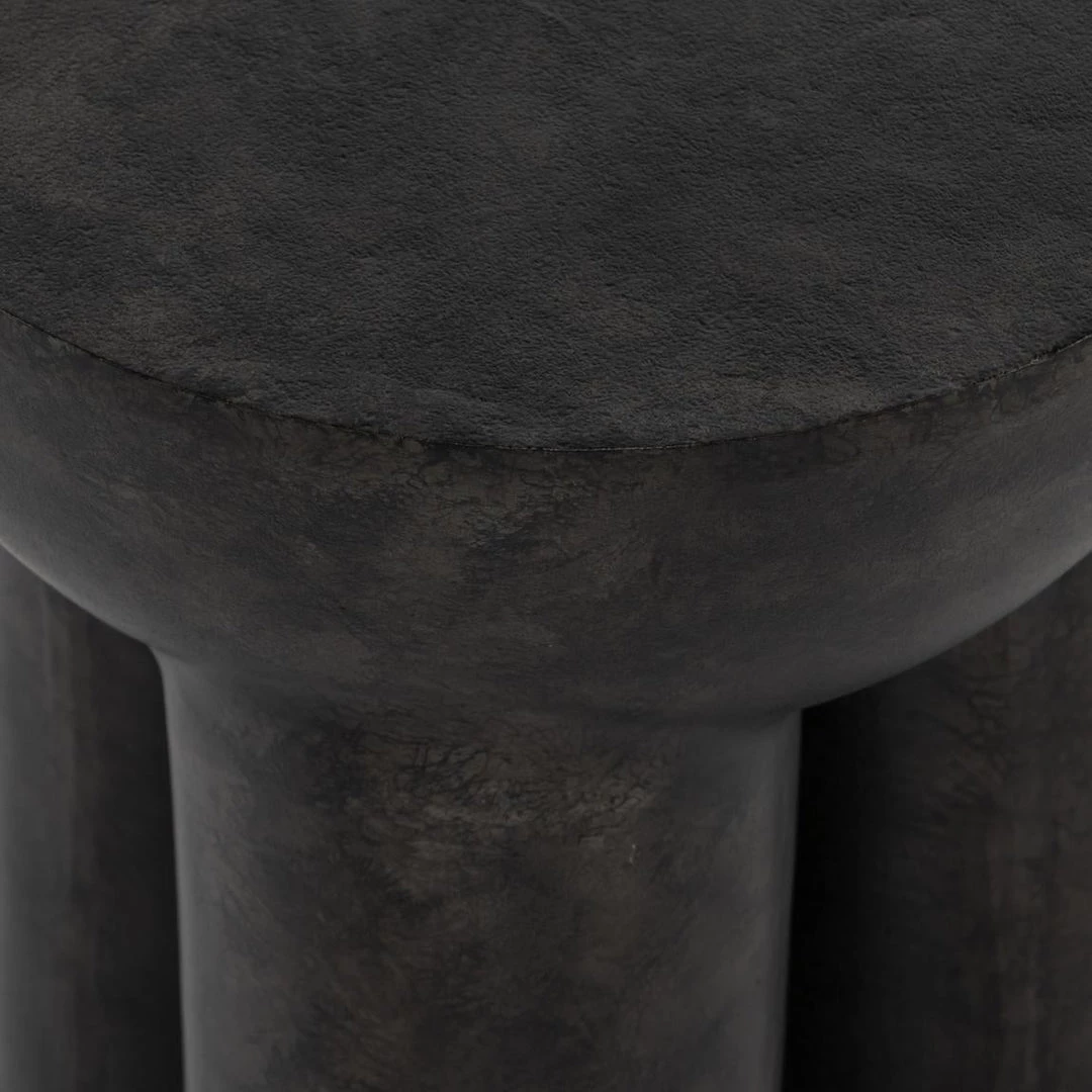 Made from raw black cast aluminum, a chunky cylinder base supports a drum-style tabletop with naturally beautiful high/low hues.