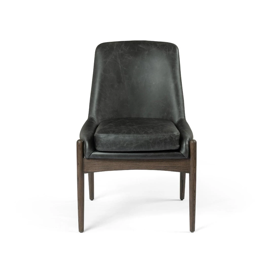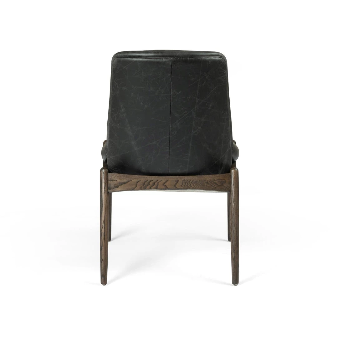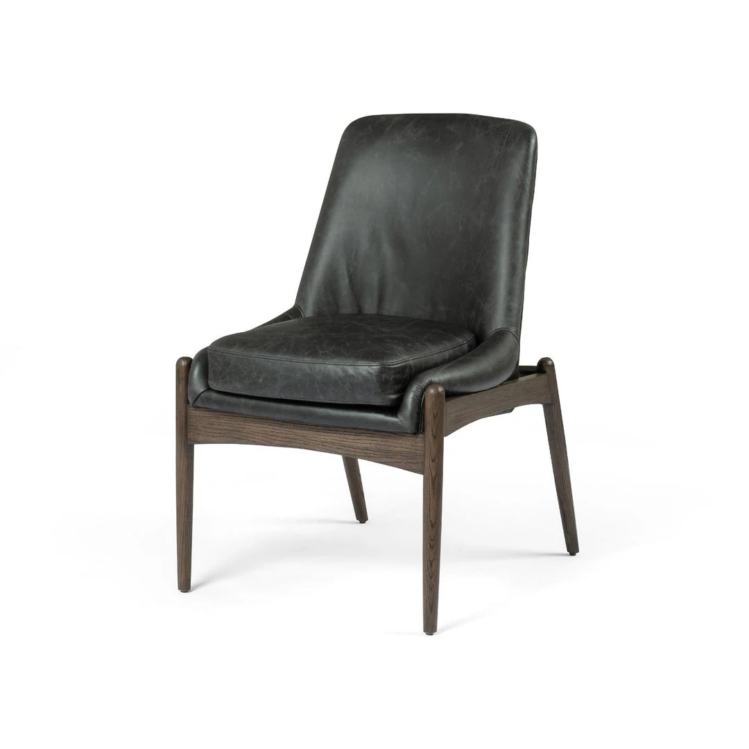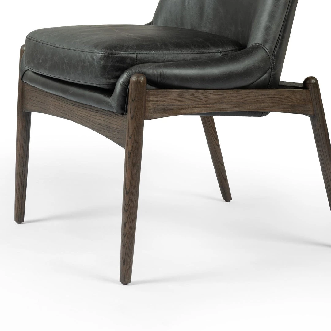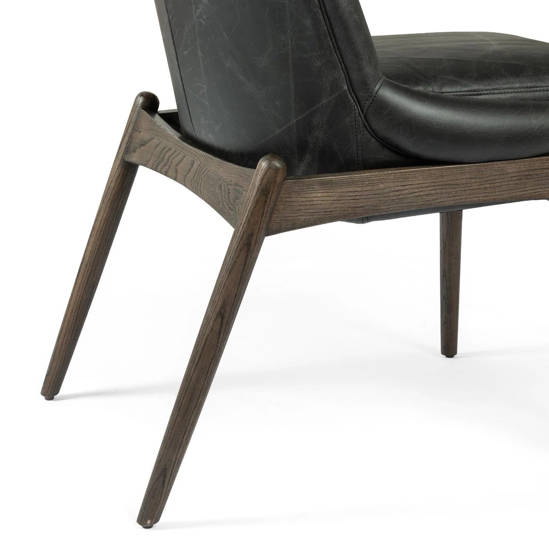 Sleek armless styling and a cushy seat meet mid-century vibes with modern sophistication. Sculpted framing adds an architectural feel to rich top-grain leather in a mossy sage.