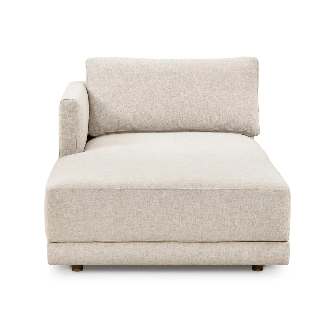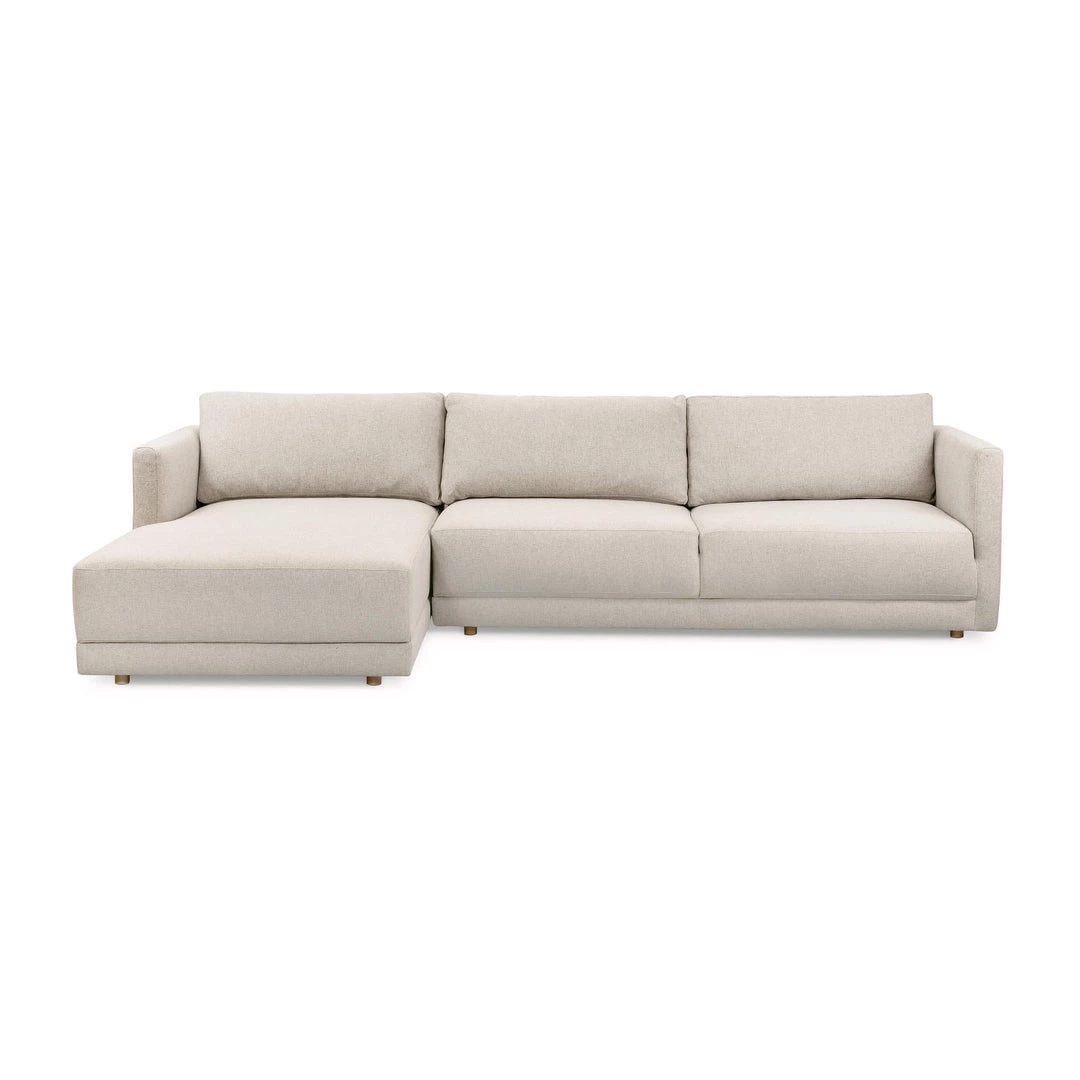 Clean lines for a classically transitional look. An oak frame and invitingly neutral upholstery forms exaggerated seat proportions for a chic look with elevated comfort. Right arm facing chaise to matching two-piece sectional.