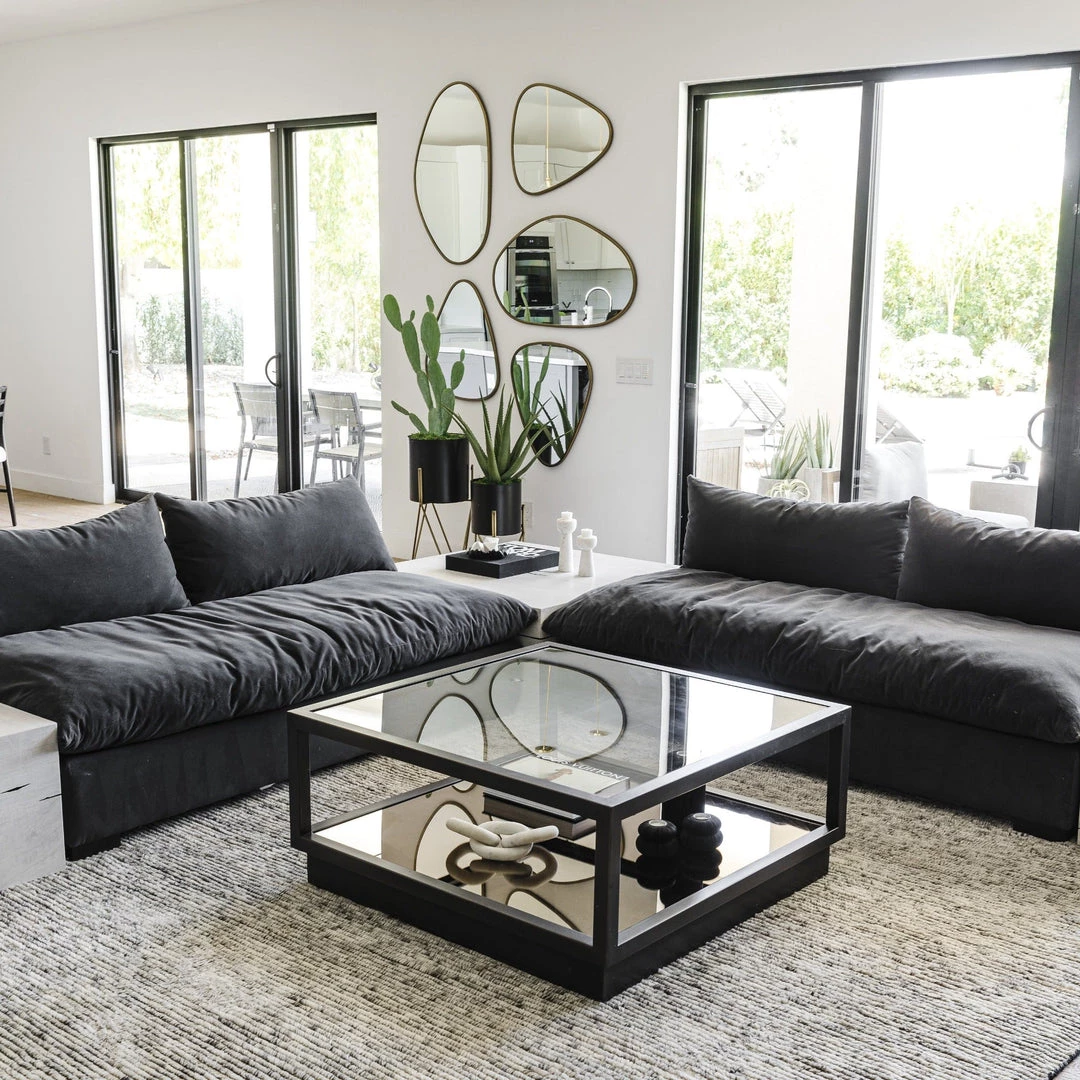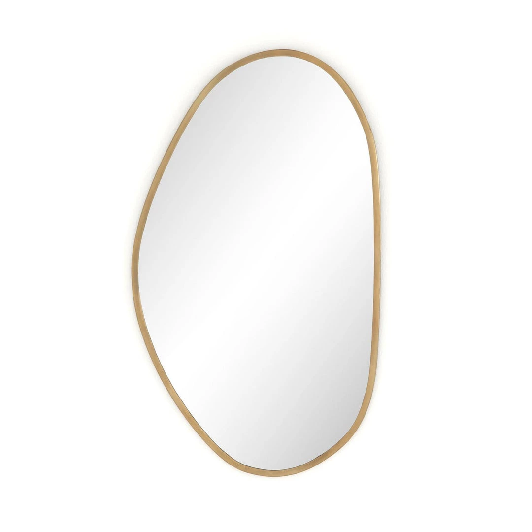 Reminiscent of mid-century Italian styling, antique brass-finished iron curves for a unique, asymmetric look that breaks the mold.